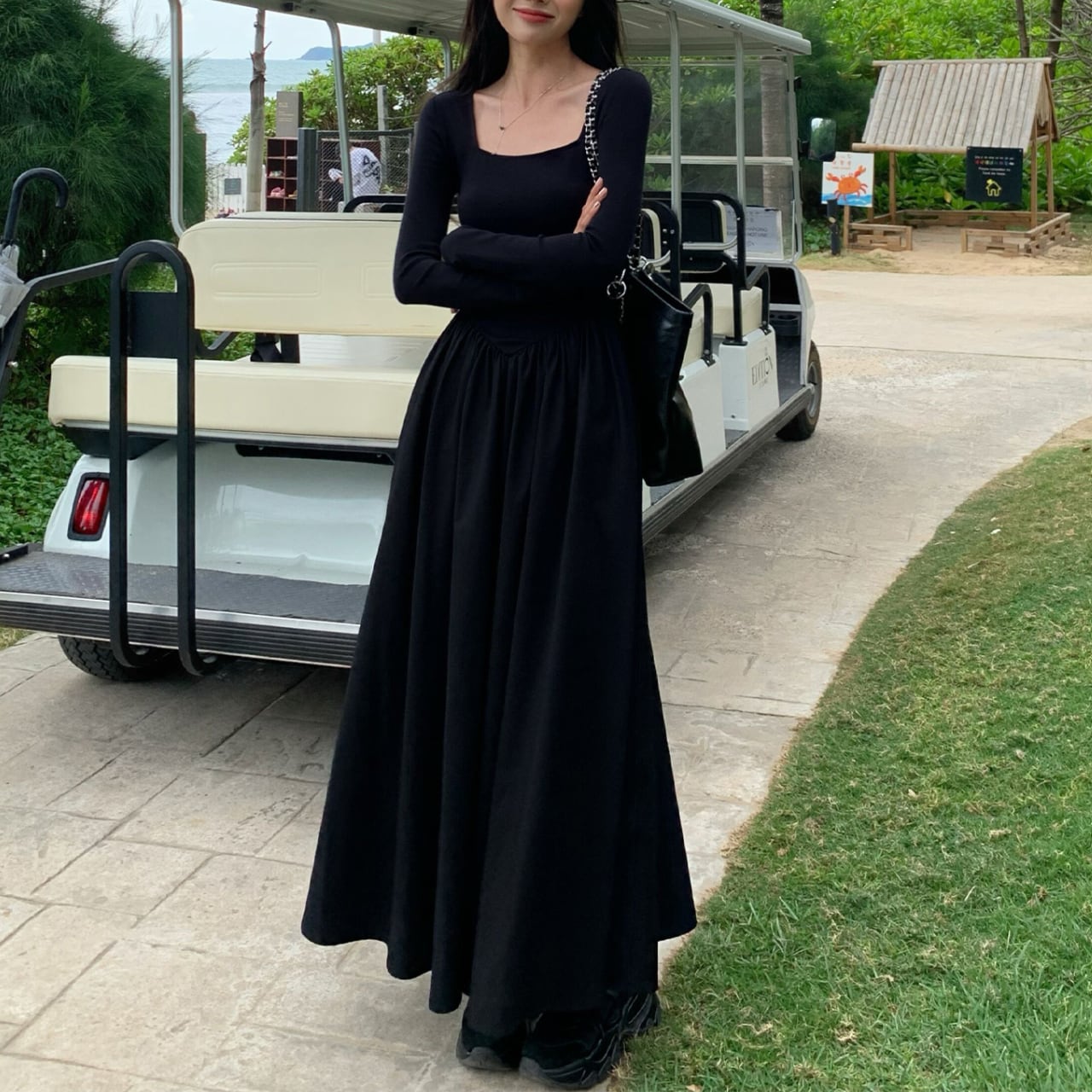 #ロングワンピース #スクエアネック #デイリー服 #夜遊び