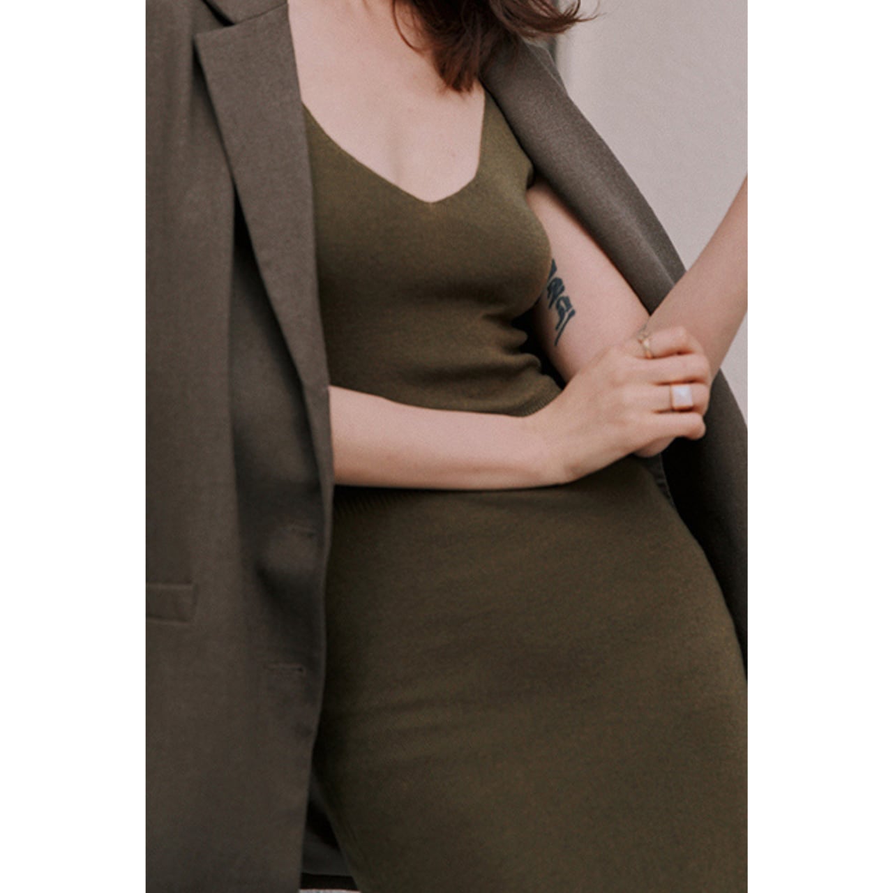 バックデザインがポイントのニットワンピース。大きく開いたバックデザインが魅力で、シルエットも女性らしく大人っぽく着こなせるシンプルなアイテムです。ジャケットやシャツなど羽織って着回すとコーディネートの幅が広がります。