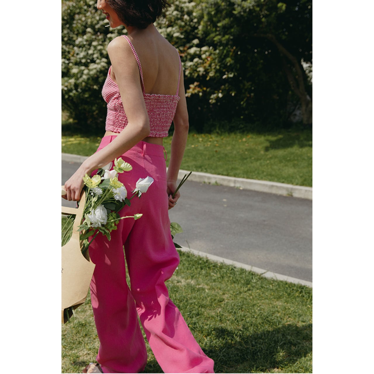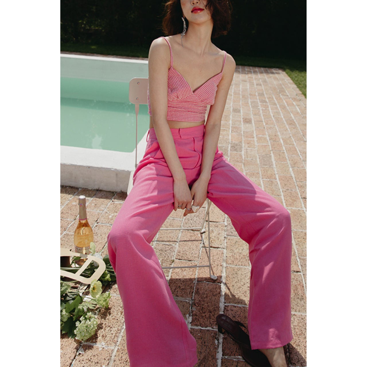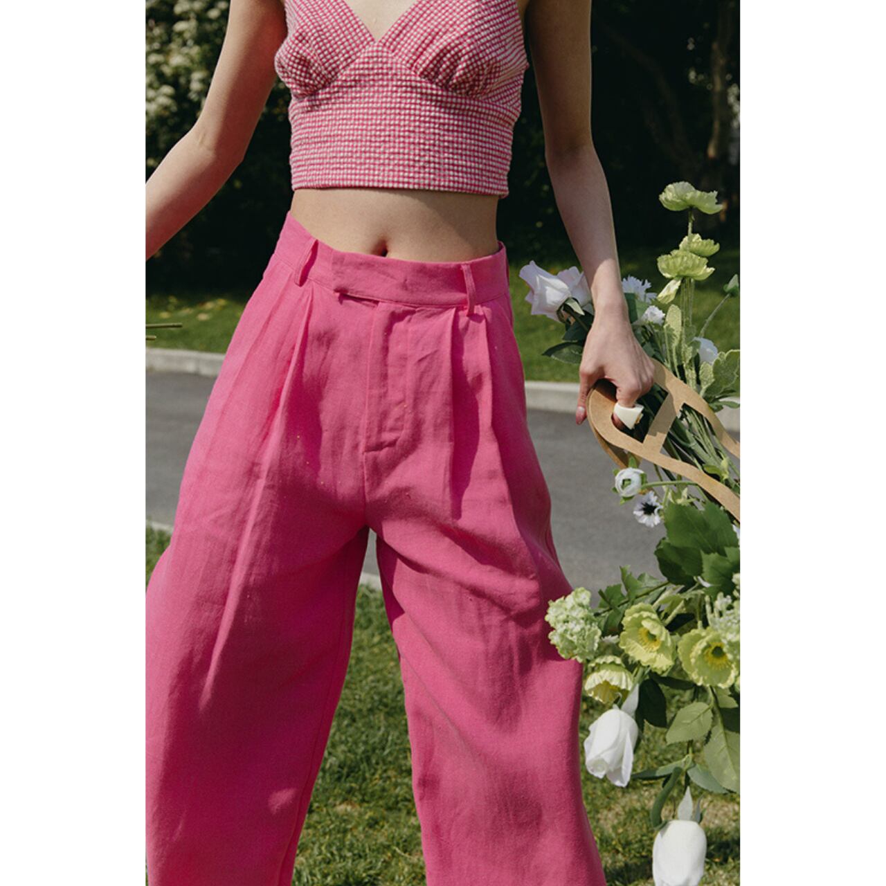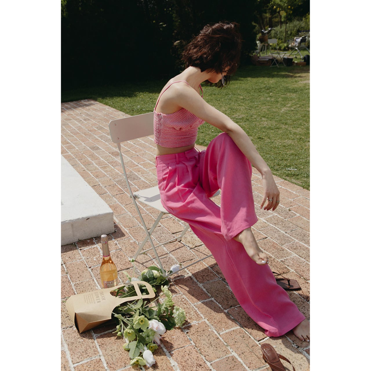 涼しげなピンク色が魅力のリネンパンツ。リネン素材を使用しており、軽やかで通気性も抜群です。ピンクの色味は女性らしさを引き立て、どんなトップスとも相性が良いため、コーディネートの幅も広がります。カジュアルながらも上品な雰囲気を演出し、様々なシーンで活躍してくれることでしょう。