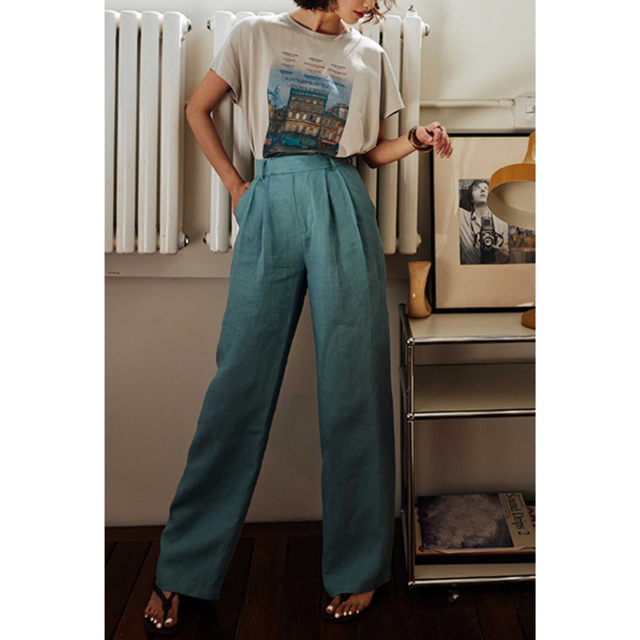 シンプルなデザインが魅力のリネンタックパンツ。リネン素材ならではのさらりとした風合いが、夏らしい涼しげな印象を与えます。ウエストのタックデザインが程よい抜け感を演出し、スタイリッシュな印象に仕上げてくれます。カジュアルなトップスとの相性も◎なので、様々なシーンで活躍すること間違いなしです。