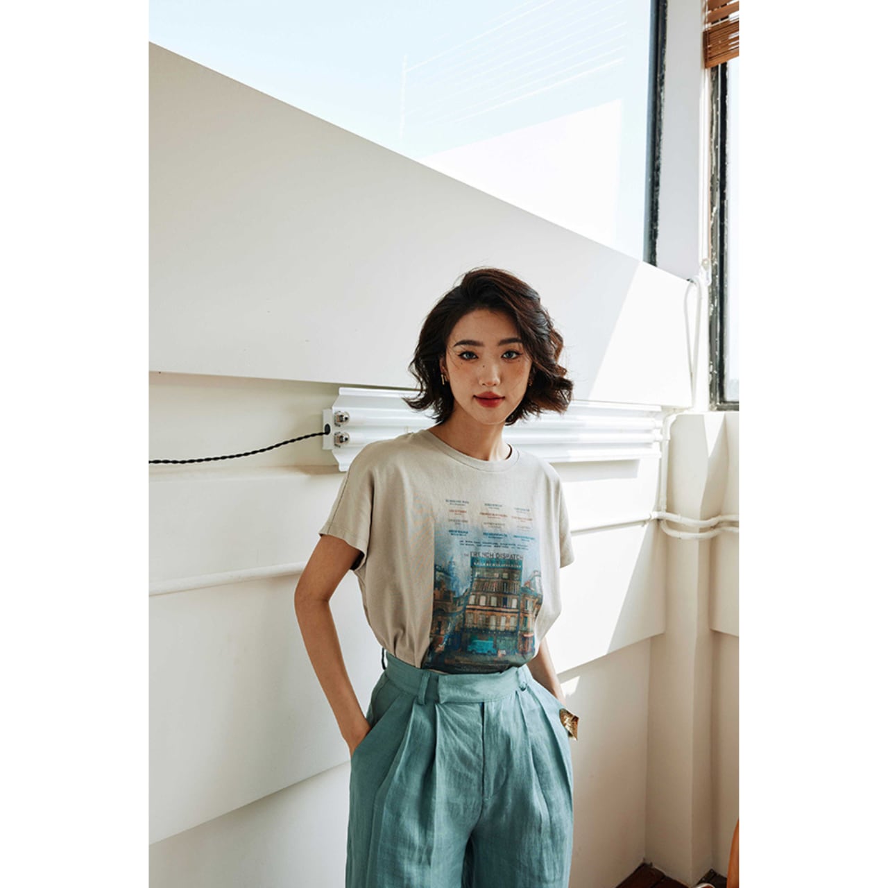 背中のデザインが特徴のTシャツ。パンツやスカートなど様々なボトムスと合わしてカジュアルなコーディネートや、ちょっとしたデイリーにもぴったりです。
