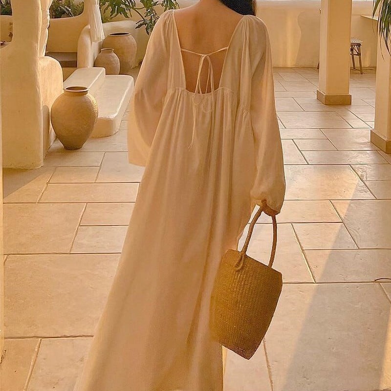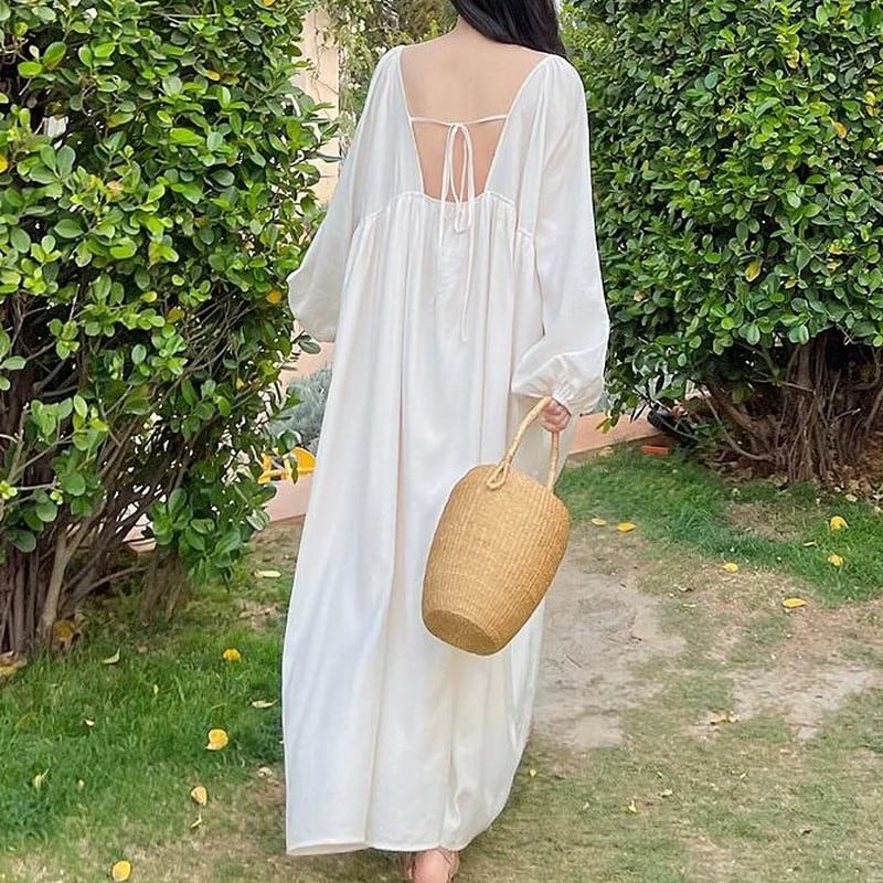 #ロングワンピース #バックオープン #背中開き #ssホワイトワンピース #ssワンピース #ssリゾートスタイル #淡い系 #レビュー