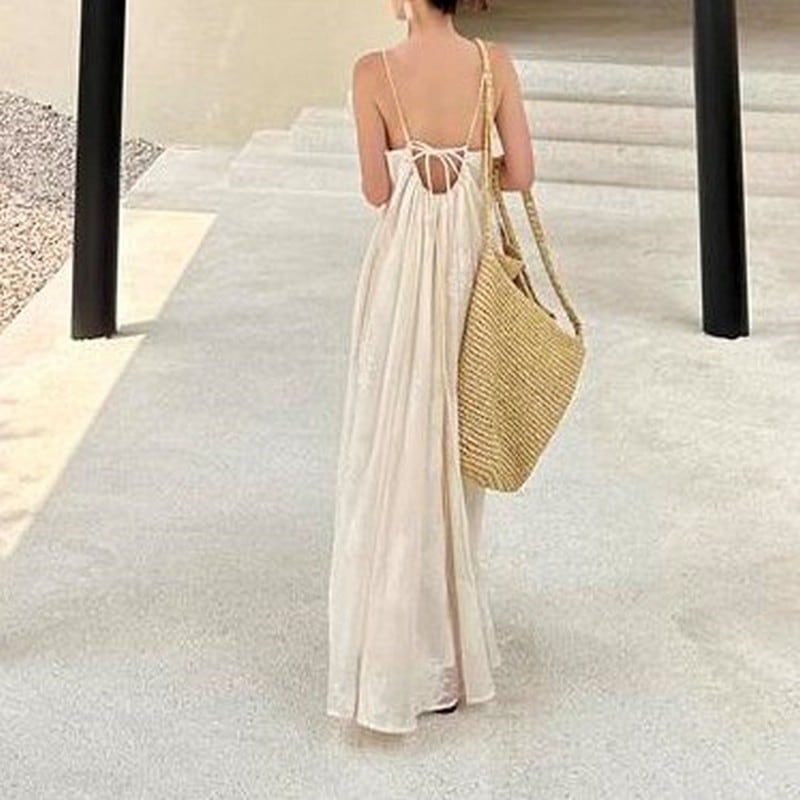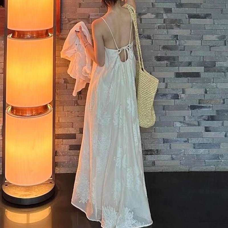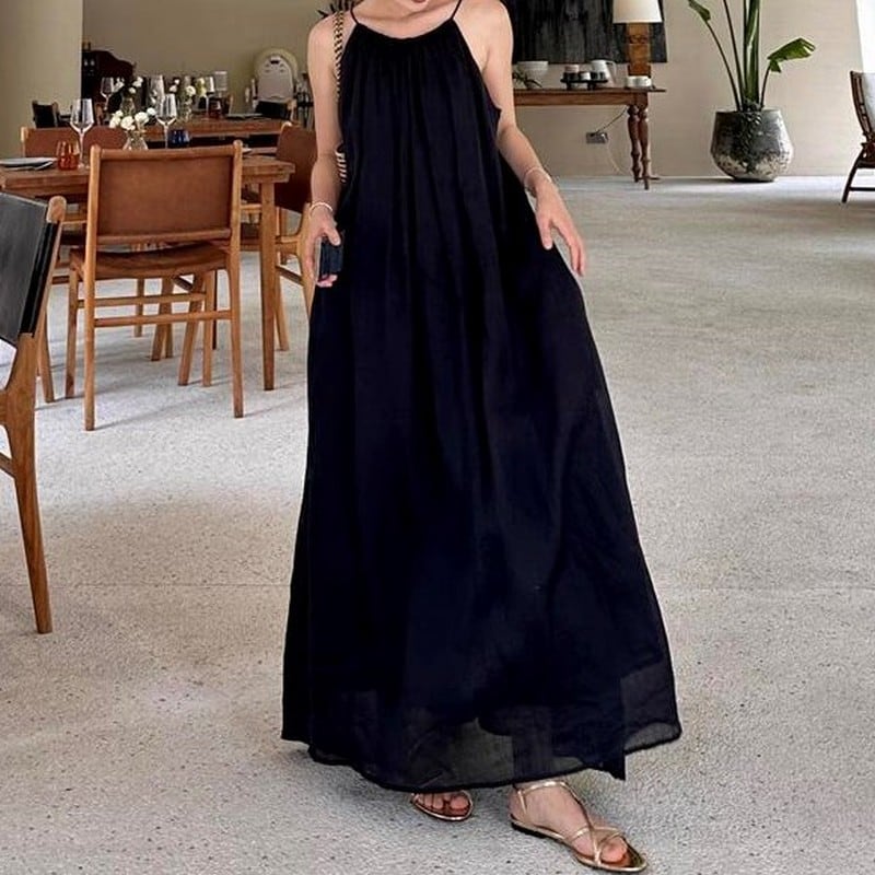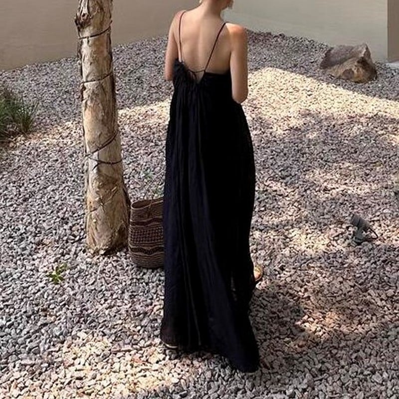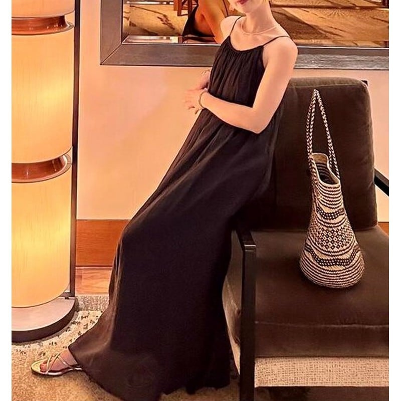#ロングワンピース #キャミソールワンピース #ホルターネック #バックオープン #背中開き #ssワンピース #ssブラックワンピース #ssリゾートスタイル #レビュー