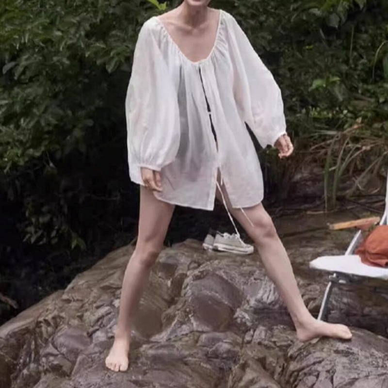 背中の開き具合がセクシーなアクセントになって、さりげない大人の魅力を引き立てる一枚。シンプルなデザインなので、様々なコーディネートにも合わせやすく、ビーチやプールサイドでのリゾートシーンにも最適です。