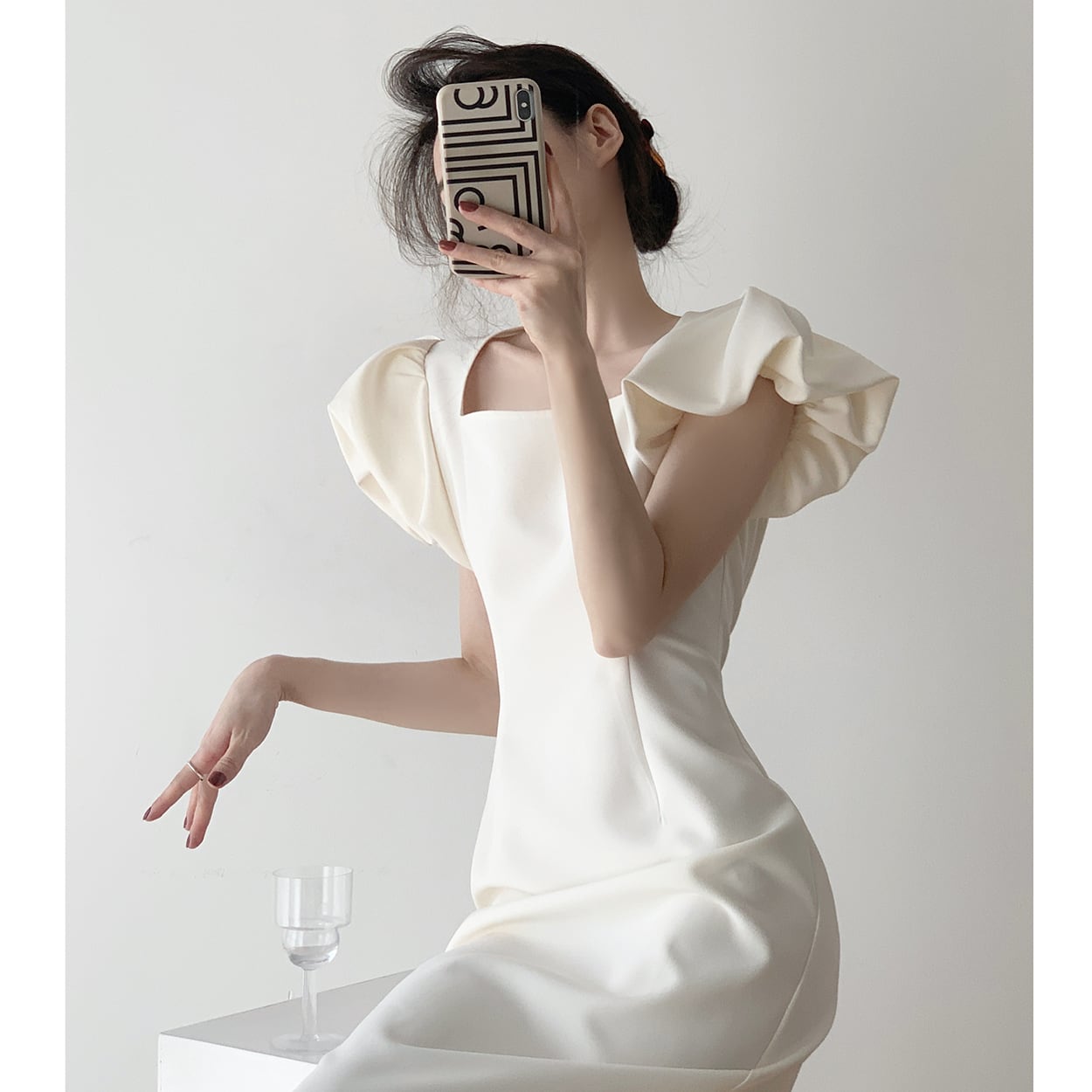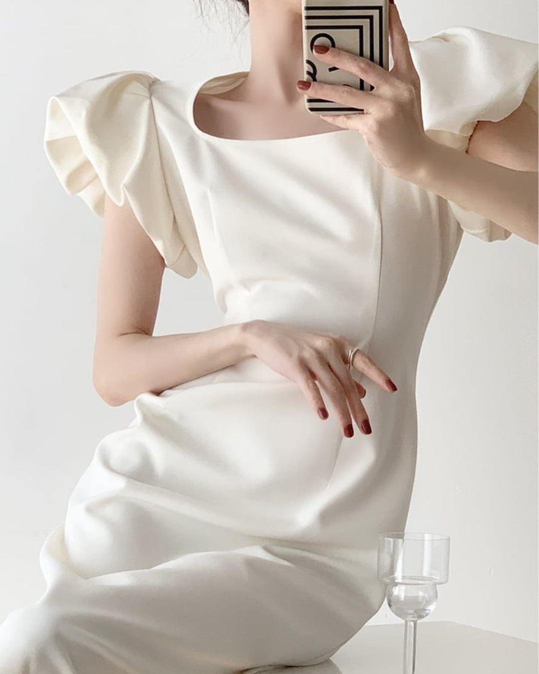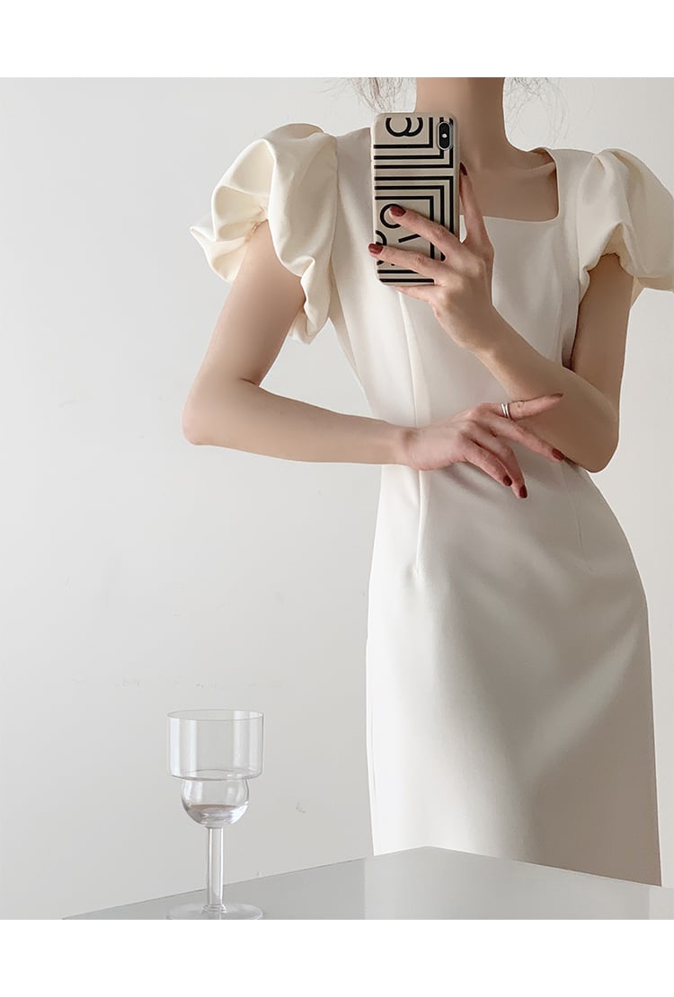 華やかなシルエットが魅力のパフショートスリーブドレス。上品な膝丈とフレアスカートが女性らしさを引き立て、パーティーやイベント、デートなど、特別な日にぴったりの一着です。