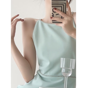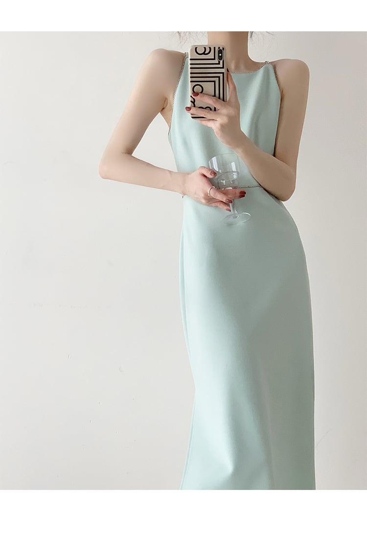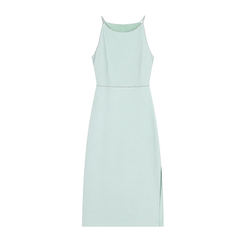 チェーンデザインがポイントのドレス。ボディラインを美しく包み込むシルエットと、スリットデザインが大人っぽさを演出。華やかなパーティーシーンからデートまで、幅広いシーンで活躍すること間違いなしの一着です。