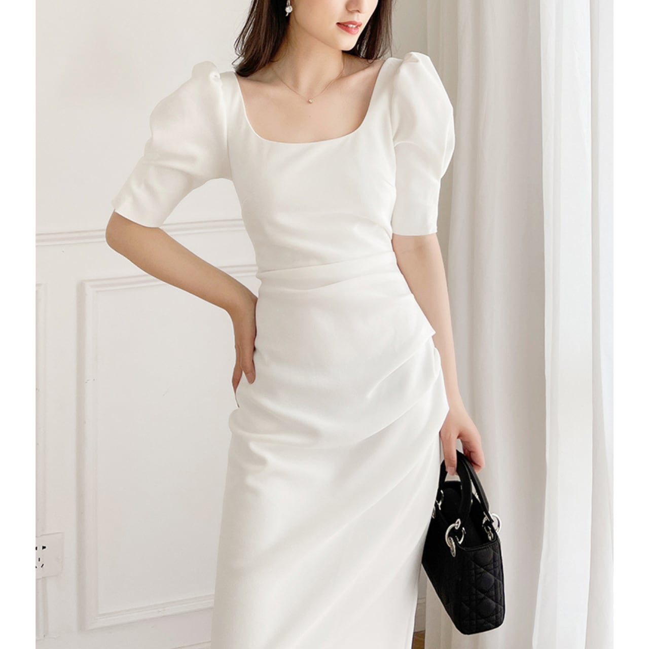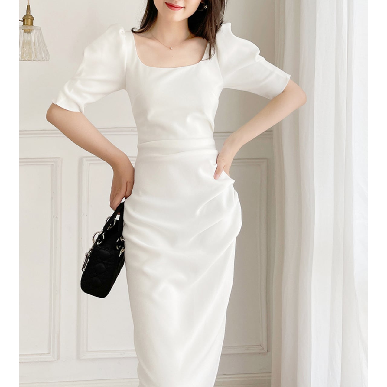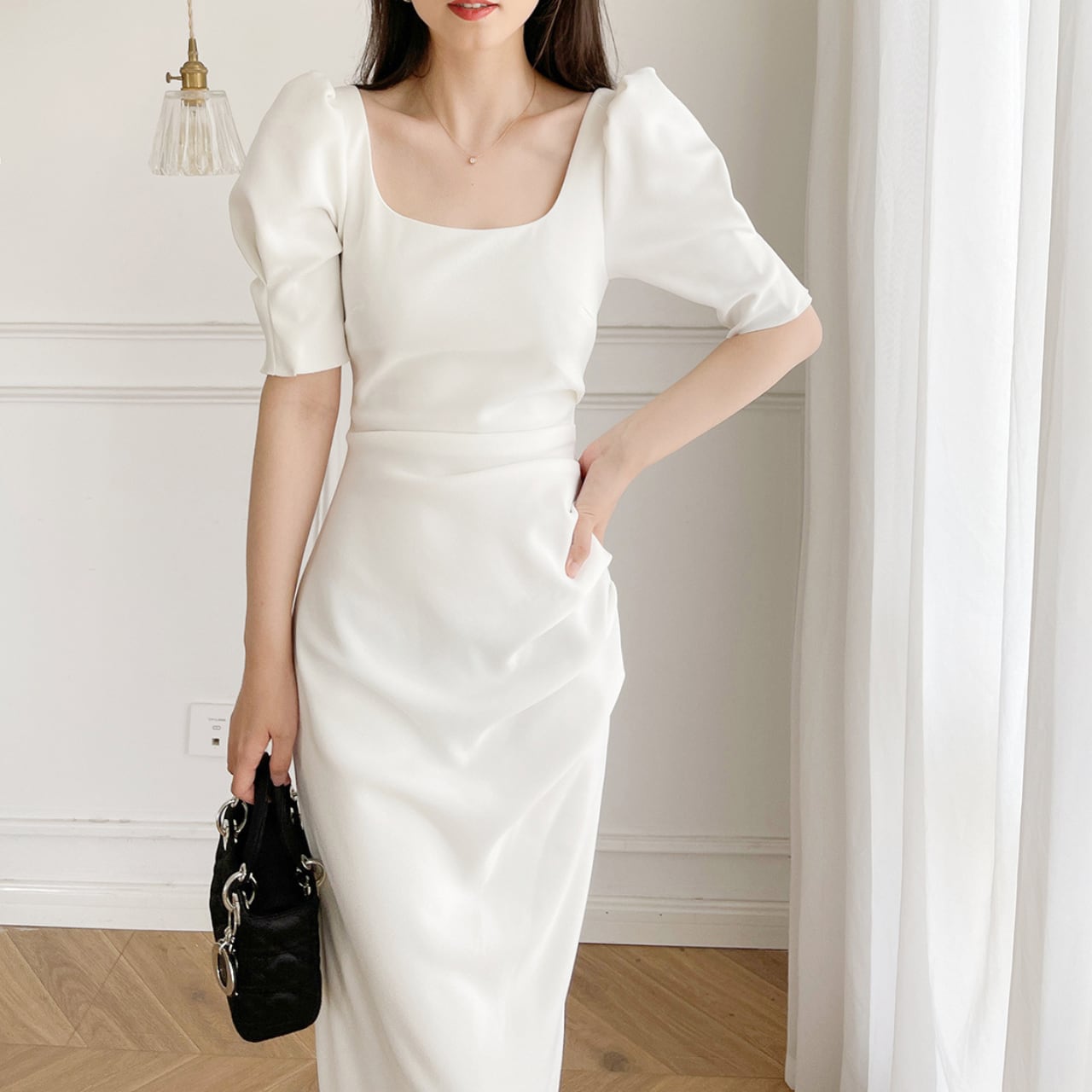 #ssホワイトワンピース #ssワンピース #パフスリーブ #ミモレ丈ワンピース #パーティードレス