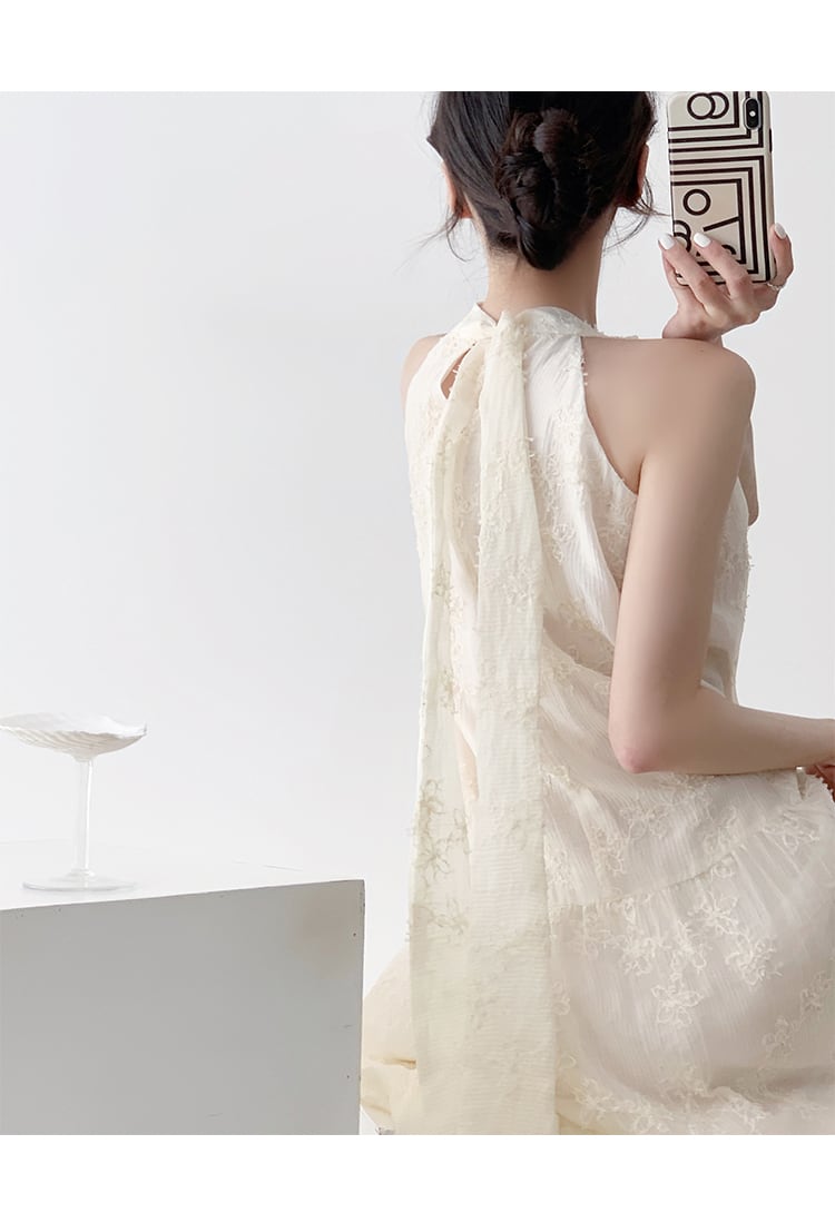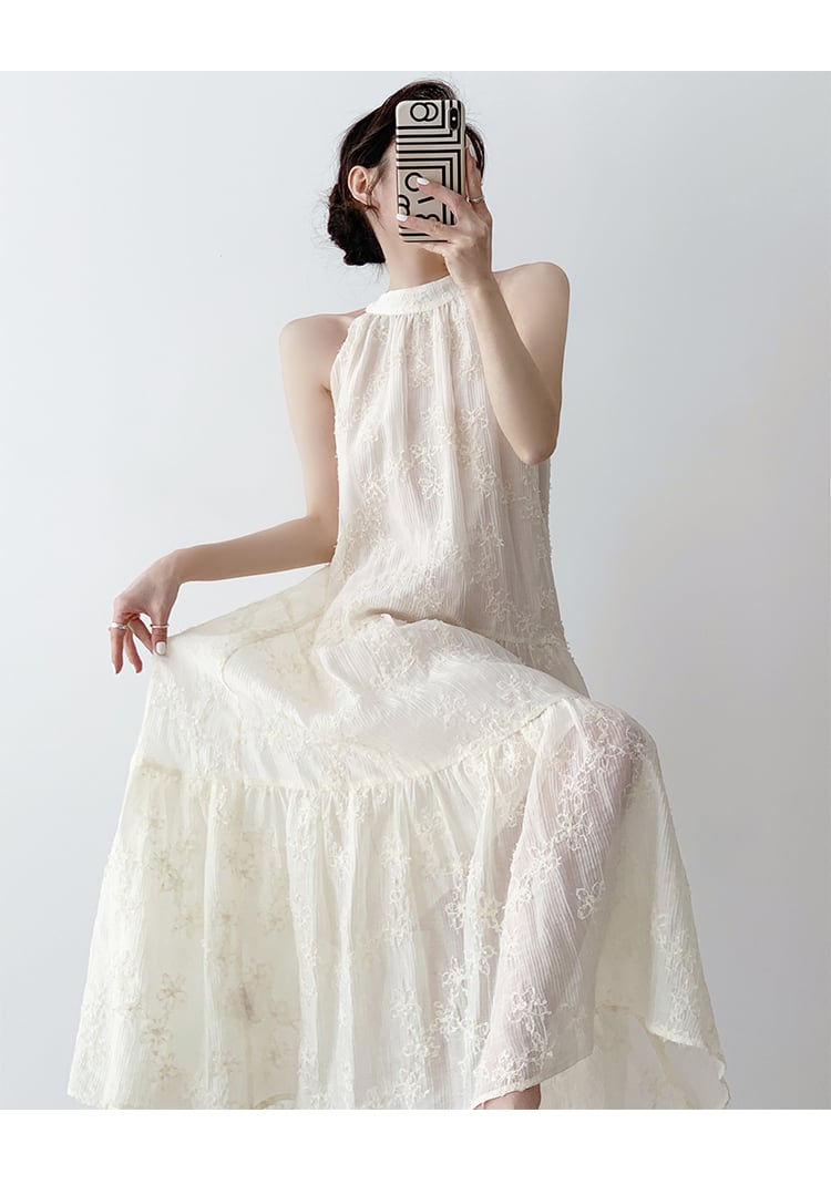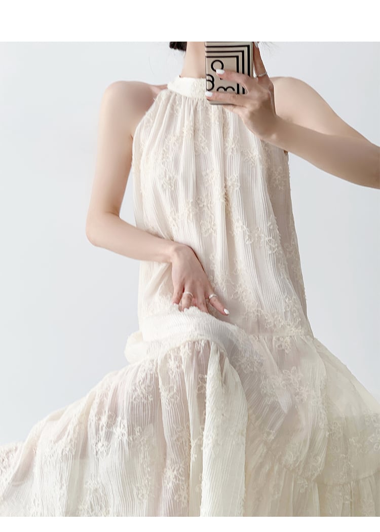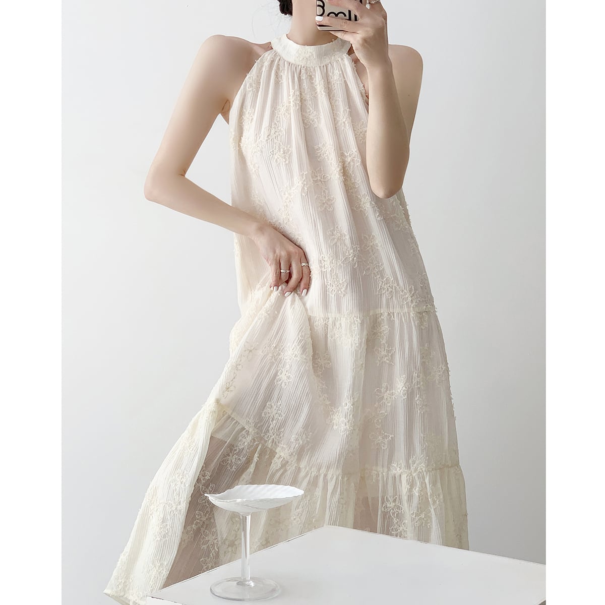 #ロングワンピース #ノースリーブワンピース #花柄 #柄ワンピース #ssホワイトワンピース #ssワンピース #ジャガード #ssリゾートスタイル #淡い系