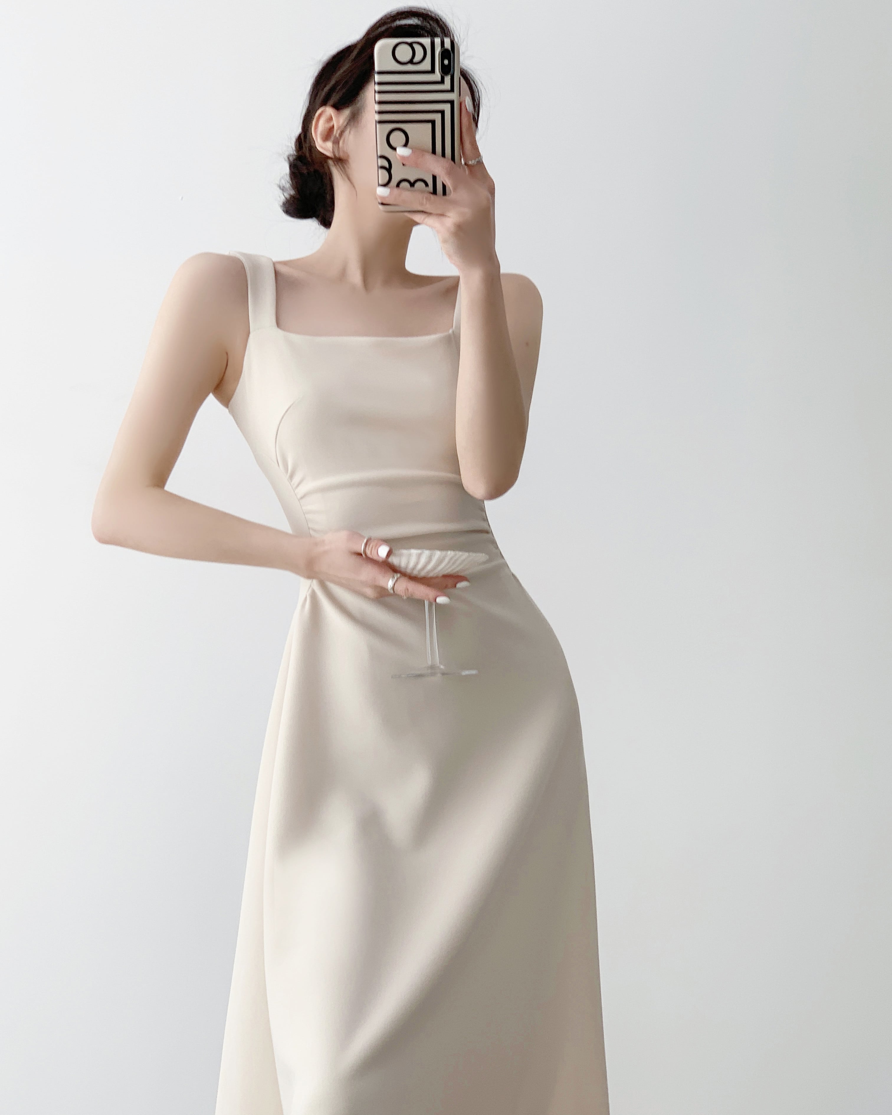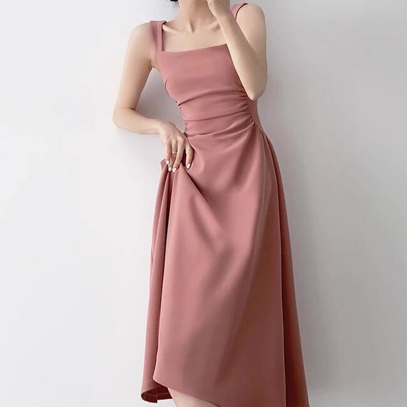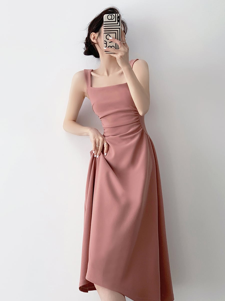 スクエアネックがシンプルかつ上品な印象を与える一着。シルエットを美しく見せてくれるタックデザインが特徴で、ウエストラインを程良くマークしてくれるので、女性らしいスタイルを演出してくれます。