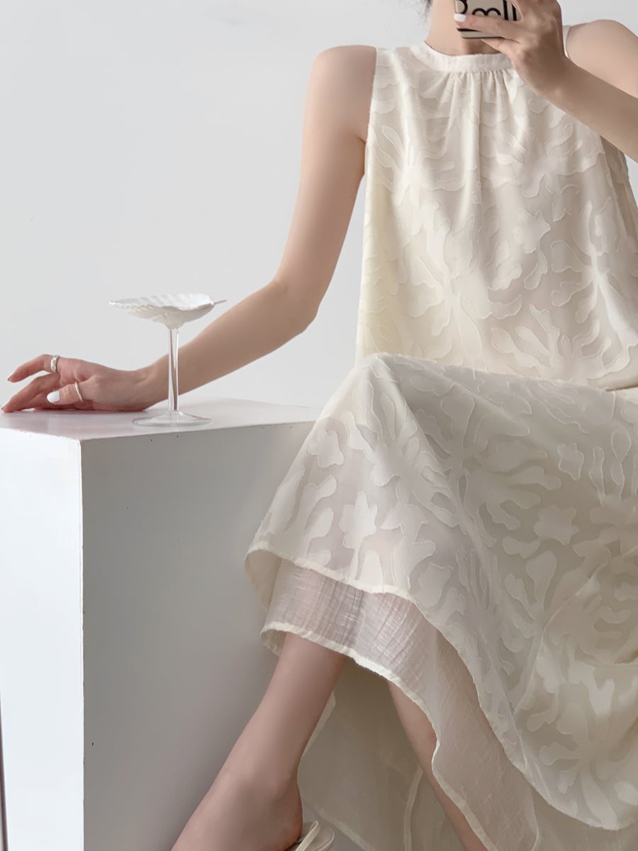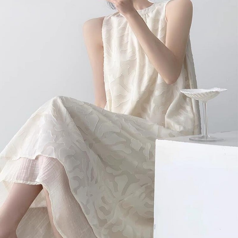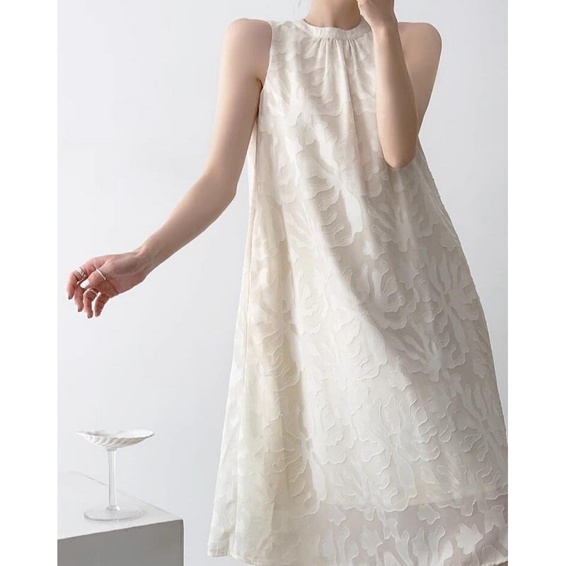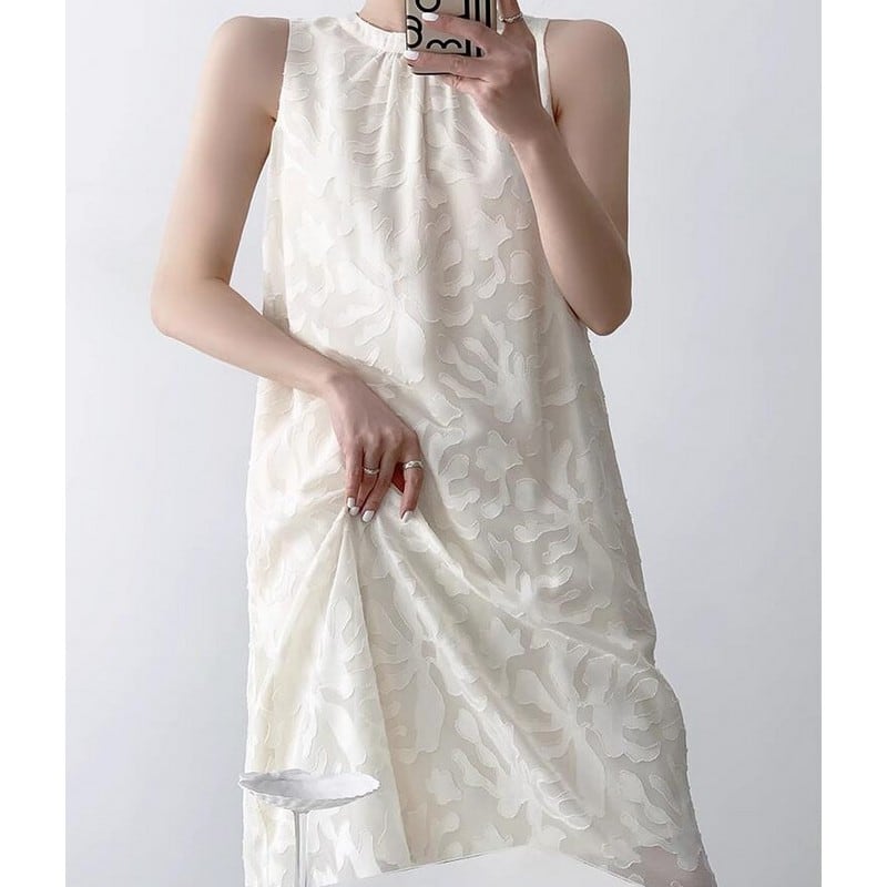 #ミモレ丈ワンピース #ノースリーブワンピース #柄ワンピース #ssホワイトワンピース #ssワンピース #ジャガード