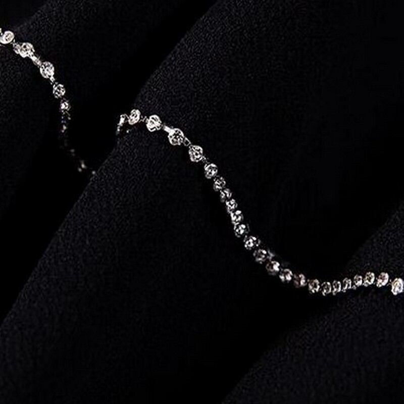 デコルテを美しく見せるボートネックと、ウエストのチェーンラインがアクセントになっています。シンプルなデザインながらも、洗練された大人の女性にぴったりの一枚です。