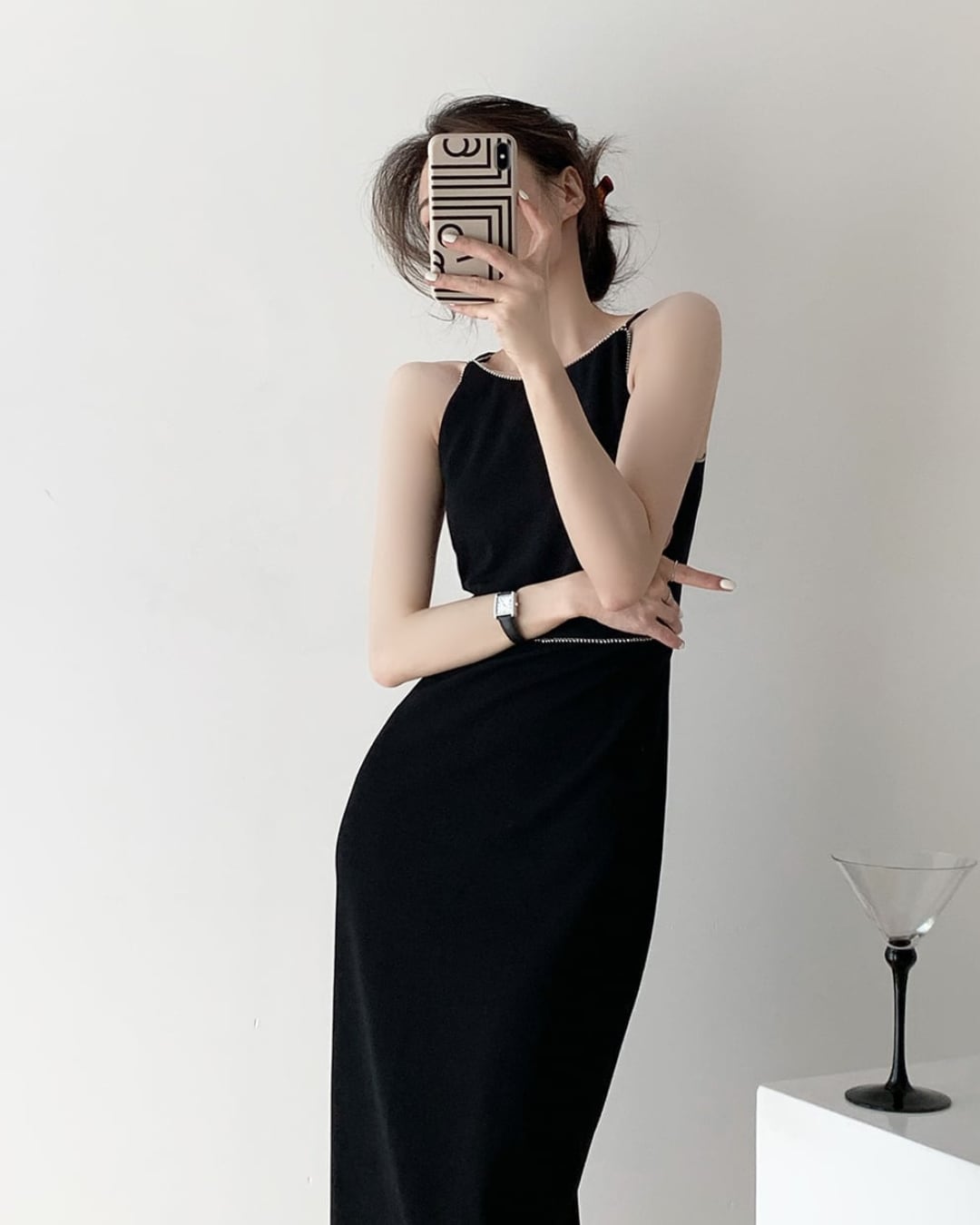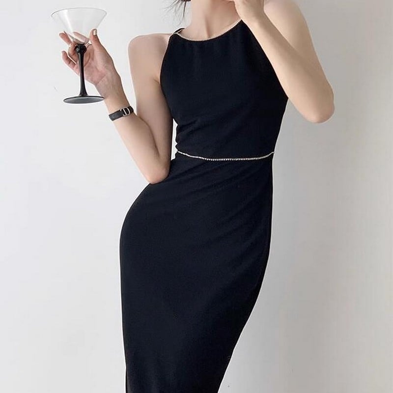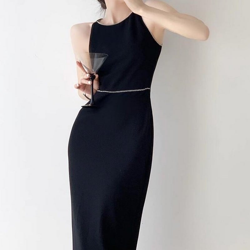 #ロングワンピース #ボートネック #ノースリーブワンピース #ssワンピース #ssブラックワンピース #ミモレ丈ワンピース #パーティードレス