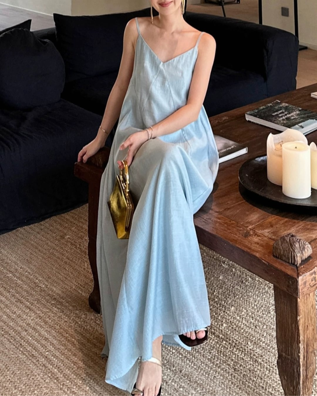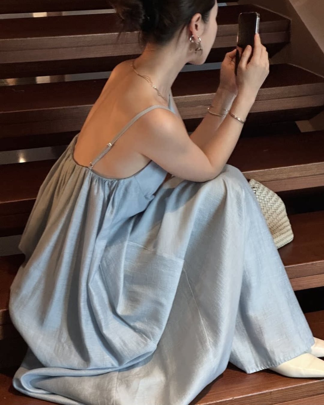 #ロングワンピース #キャミソールワンピース #背中開き #スリットワンピース #レビュー