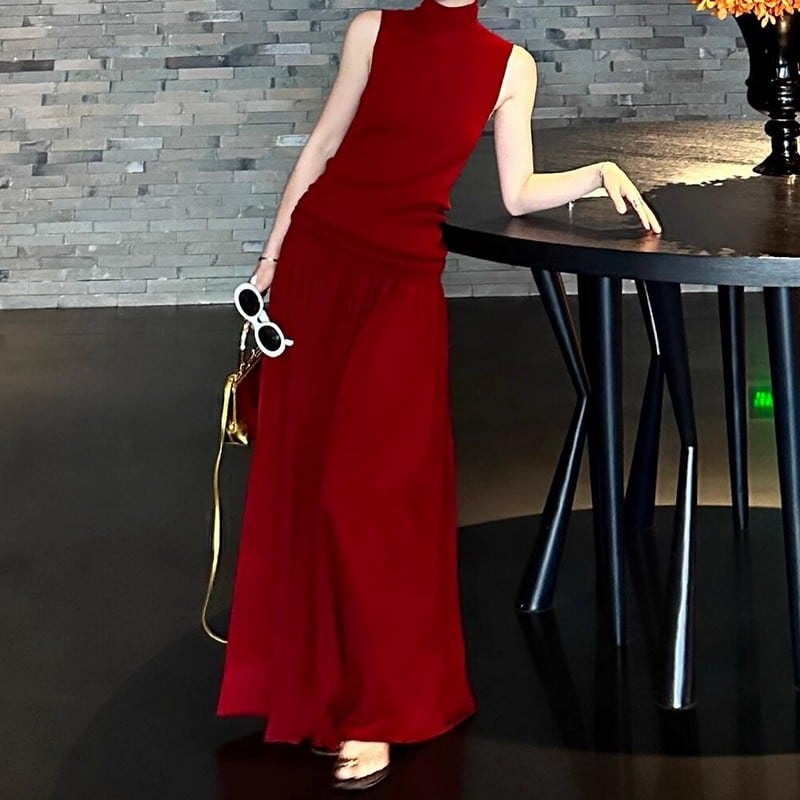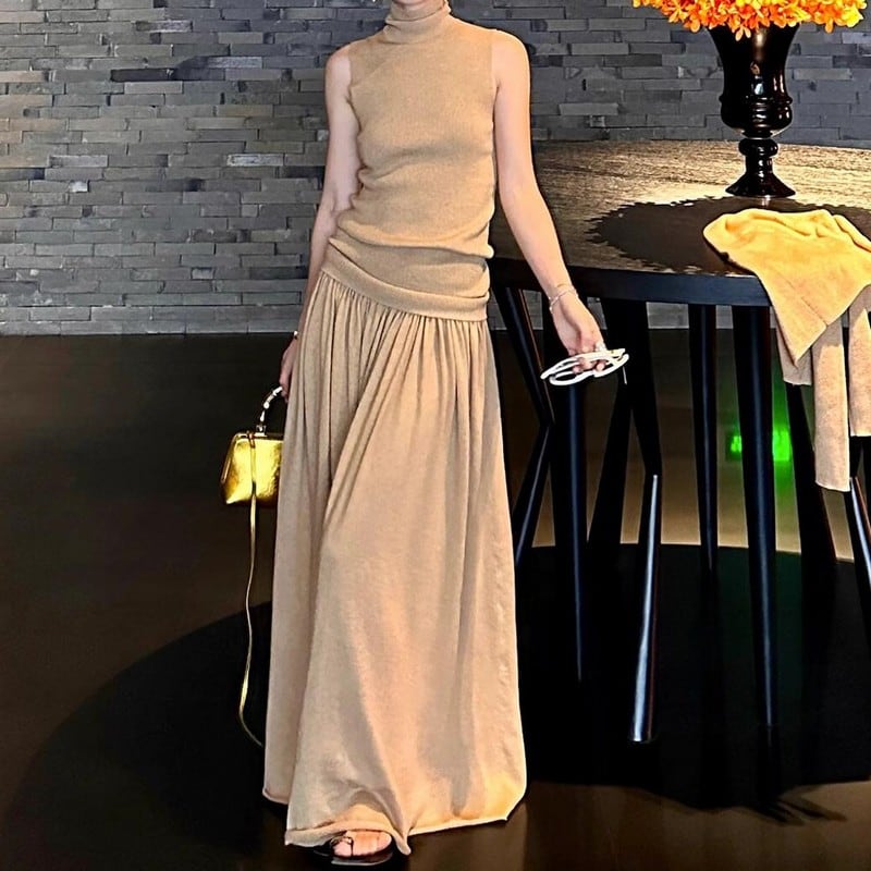 #セットアップ #タートルネック #ニット #ロングスカート #ノースリーブ