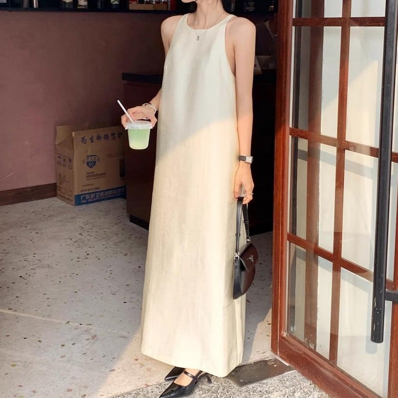 ノースリーブシンプルロングワンピース S24411