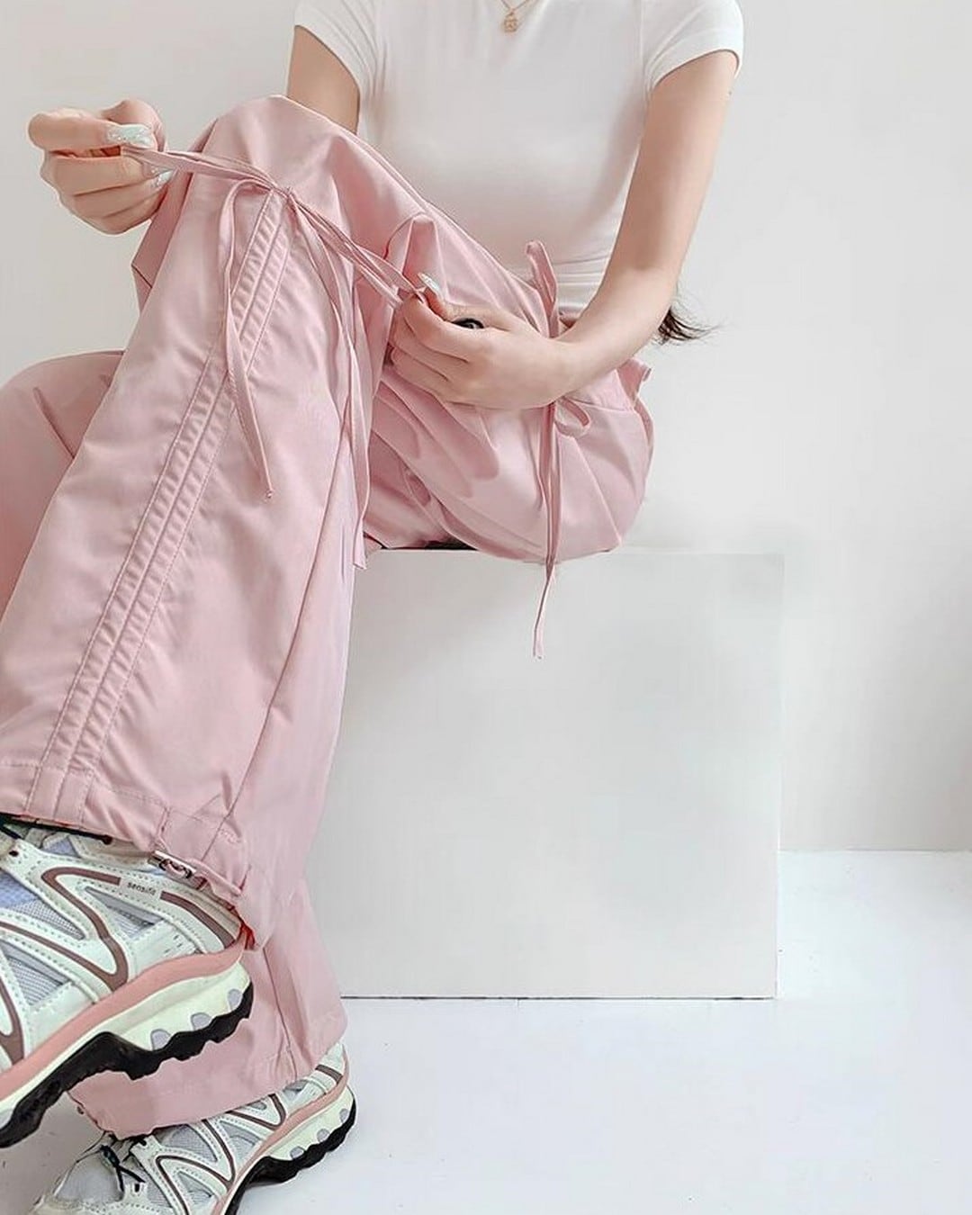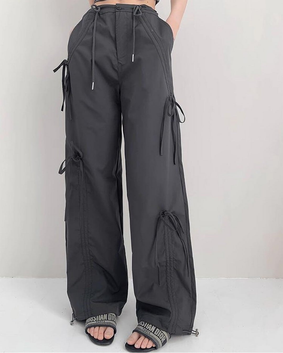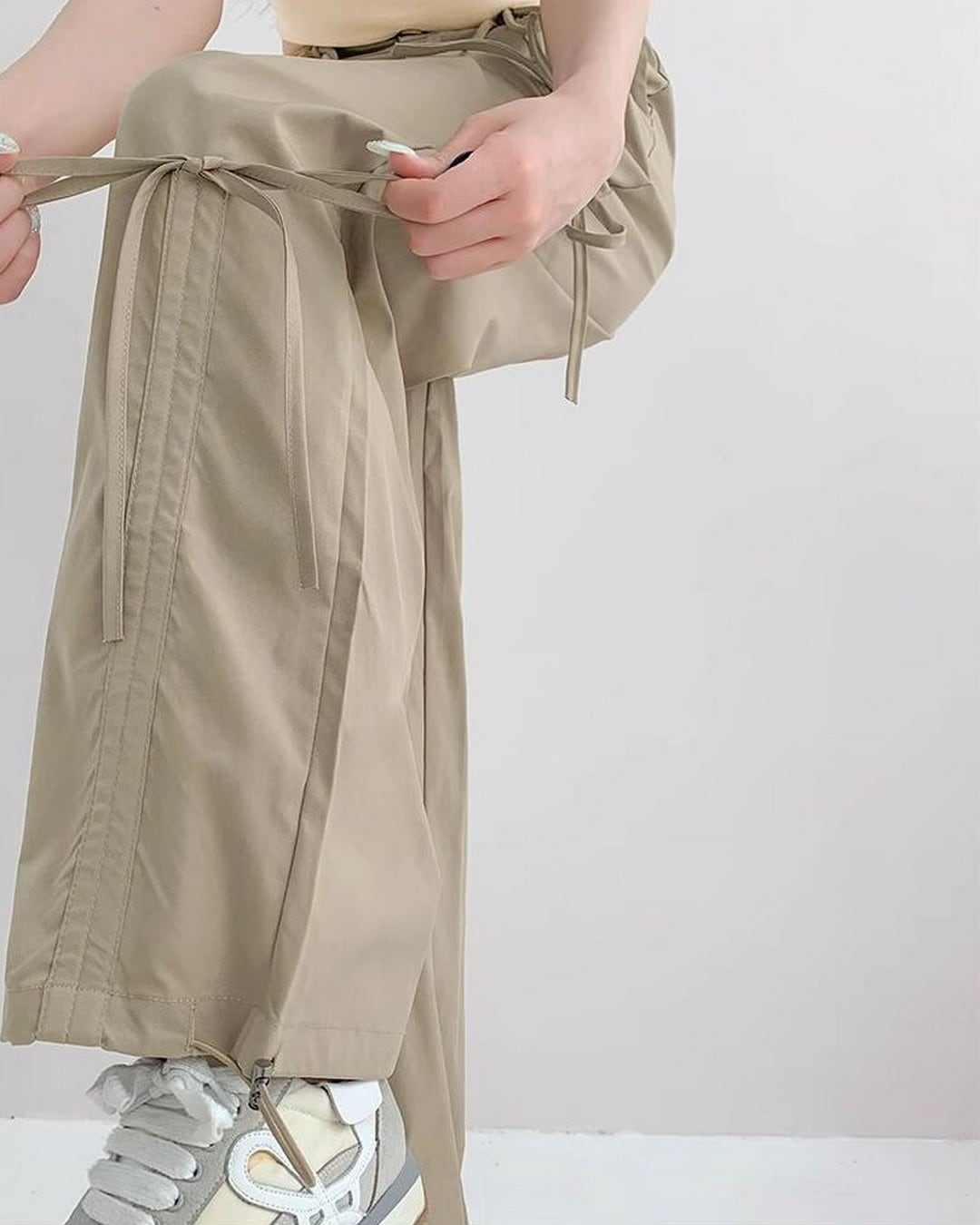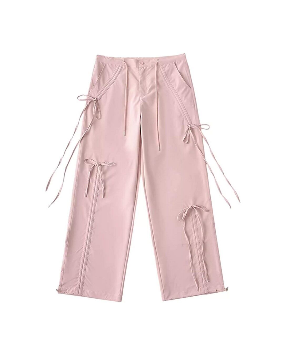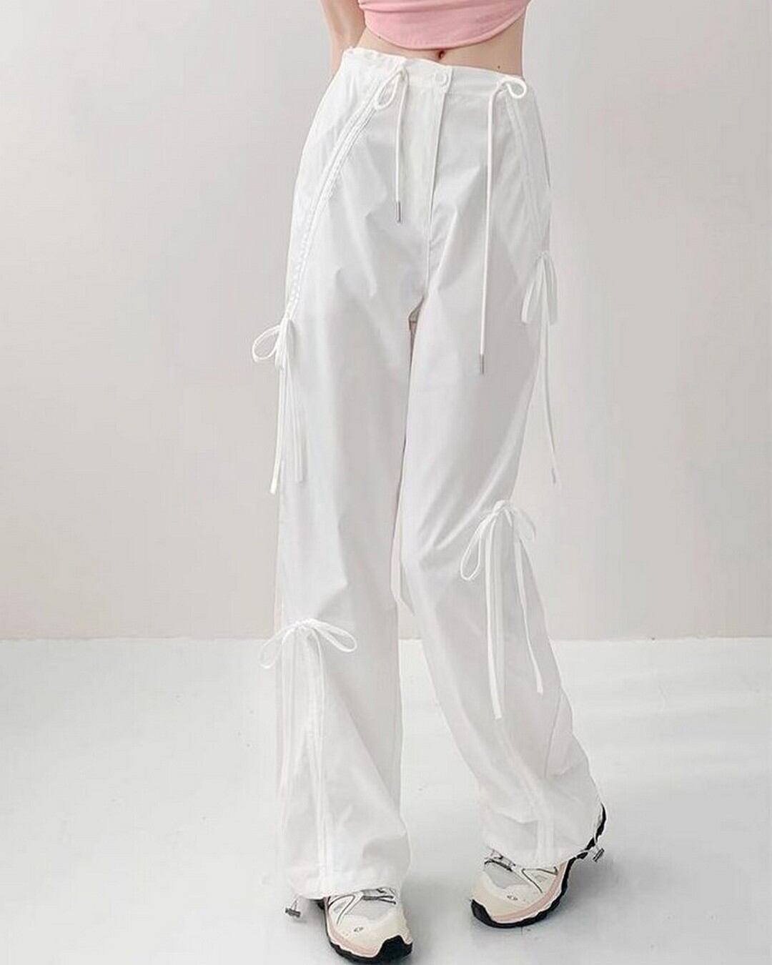 サイドにリボンがついており、可愛らしさをプラス。足元がすっきり見えるワイドレッグデザインで、どんなトップスとも相性抜群です。