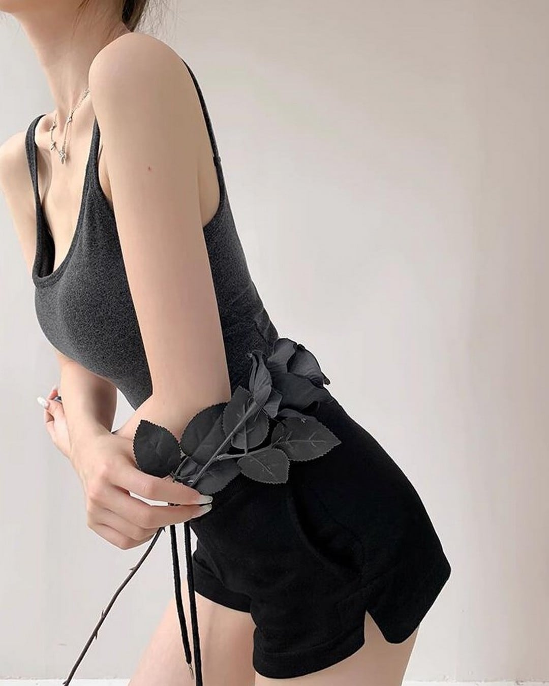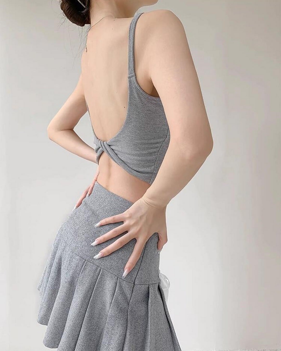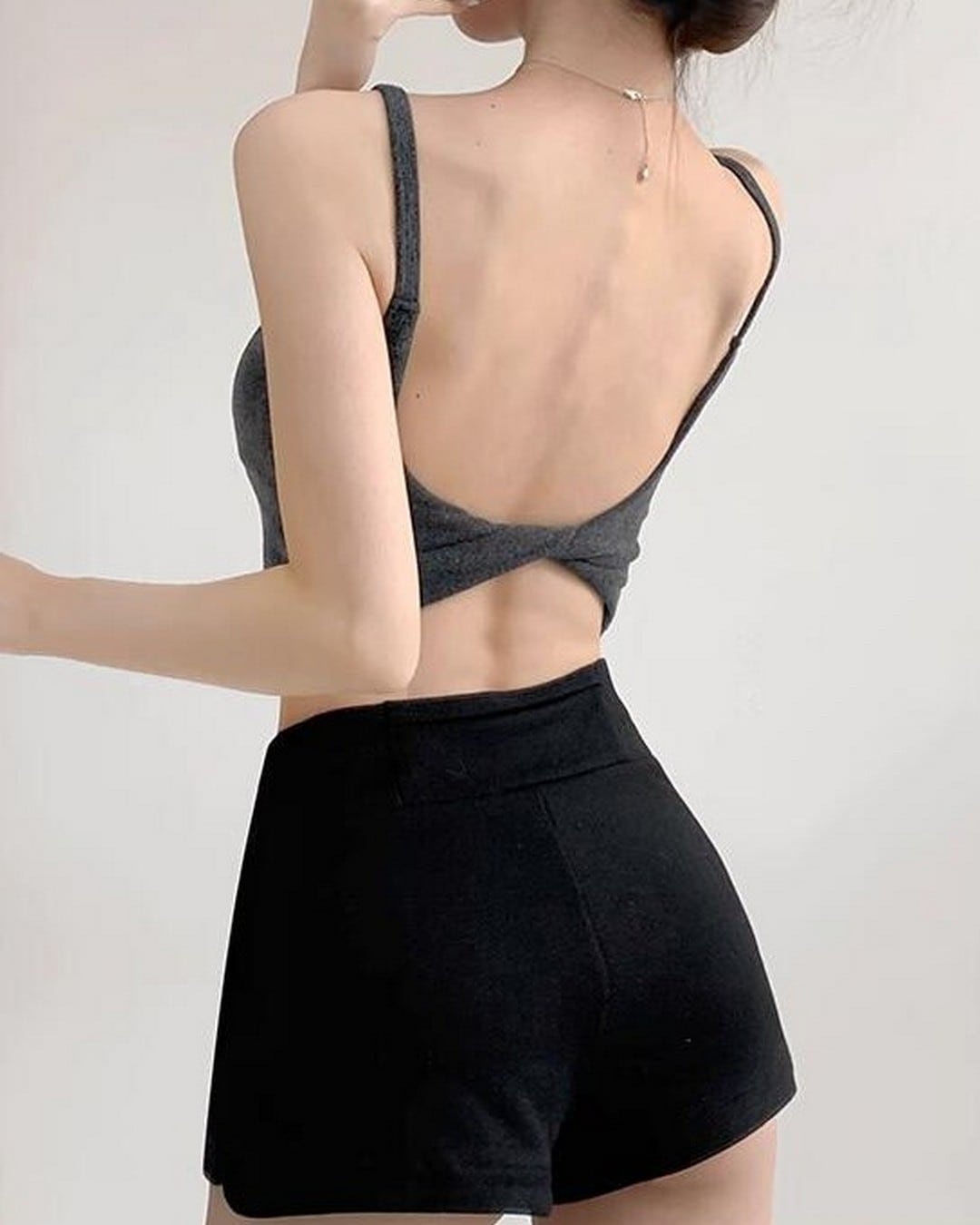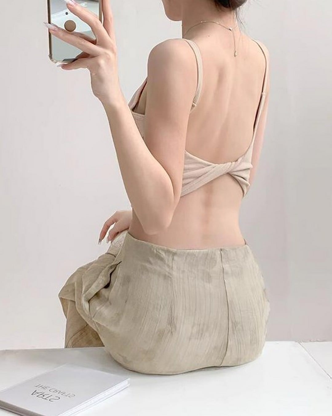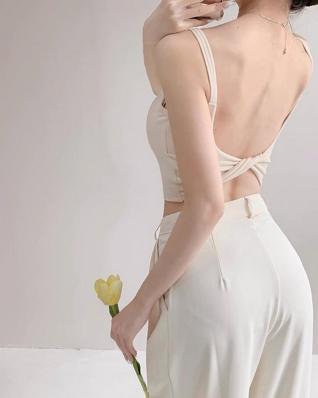 背中のクロスデザインがセクシーなアクセントになる一枚。シンプルなデザインでハイウエストのボトムスと相性抜群の着こなしを楽しめます。