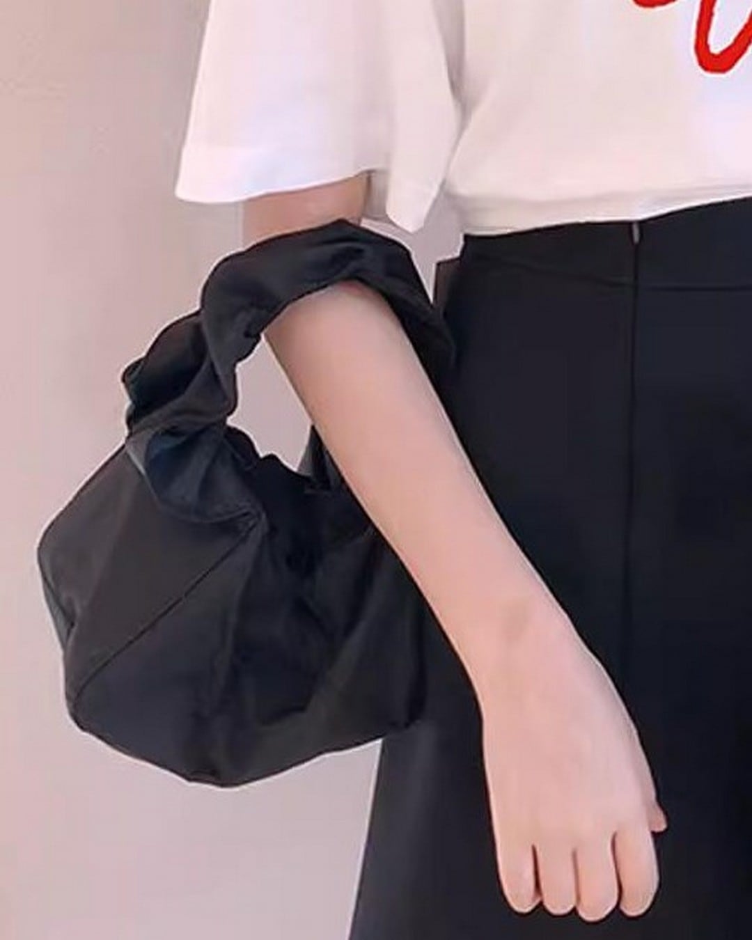 クシュっとしたハンドルが魅力的なバッグ。色々なコーディネートに合わせやすいアイテムです。