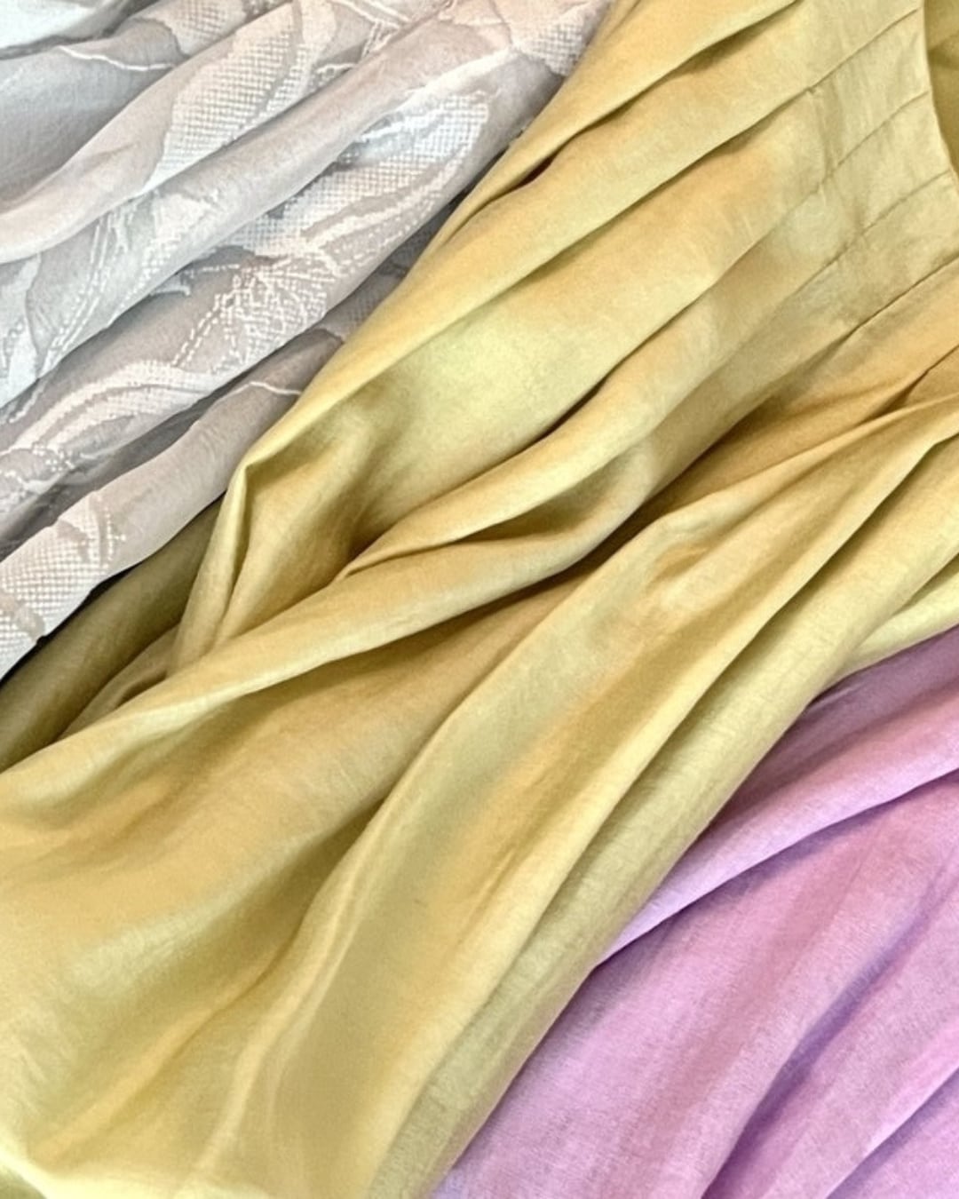 パープル:ラミー55% コットン45% (裏地)ポリエステル89% スパンデックス11%