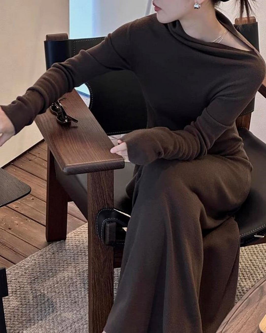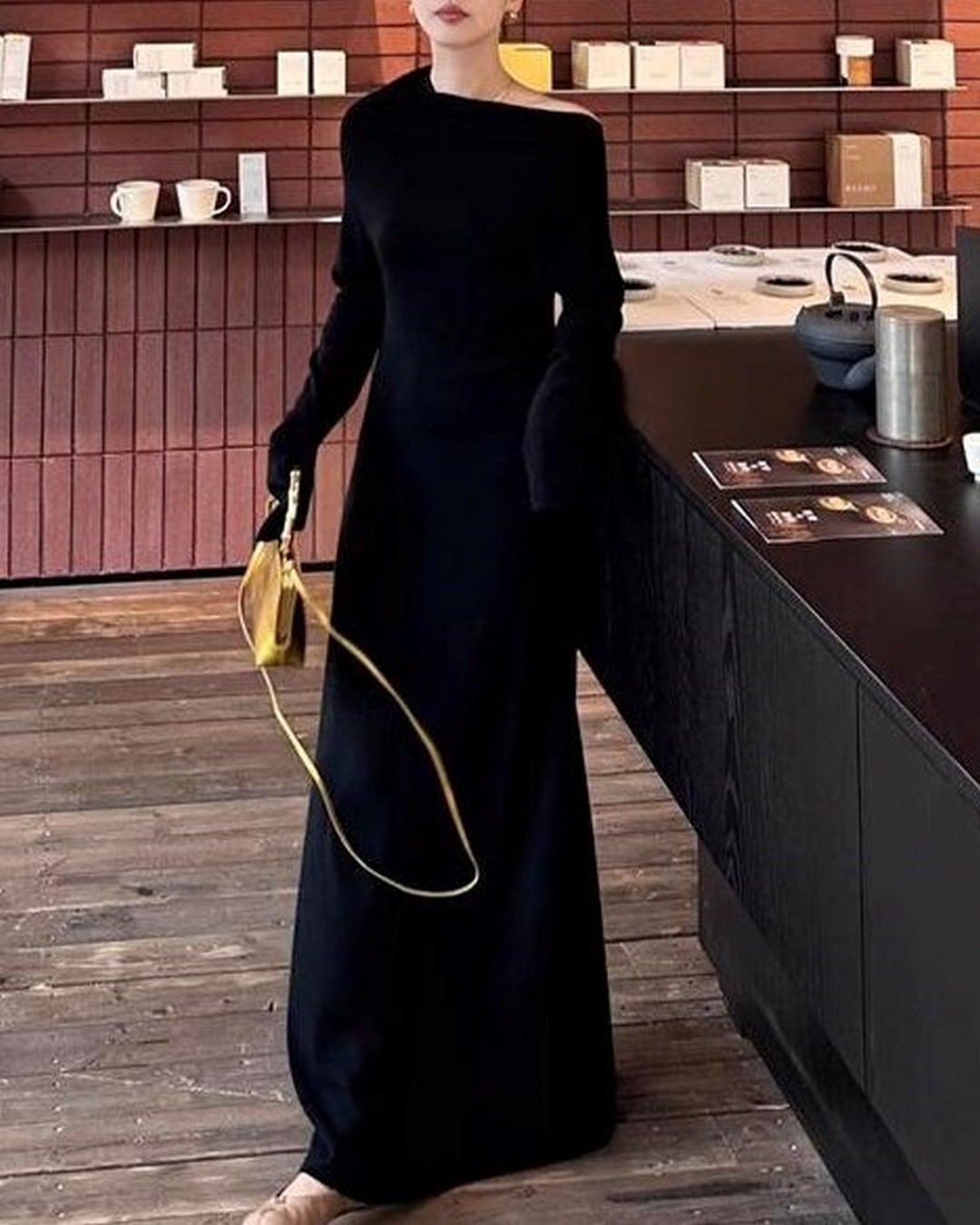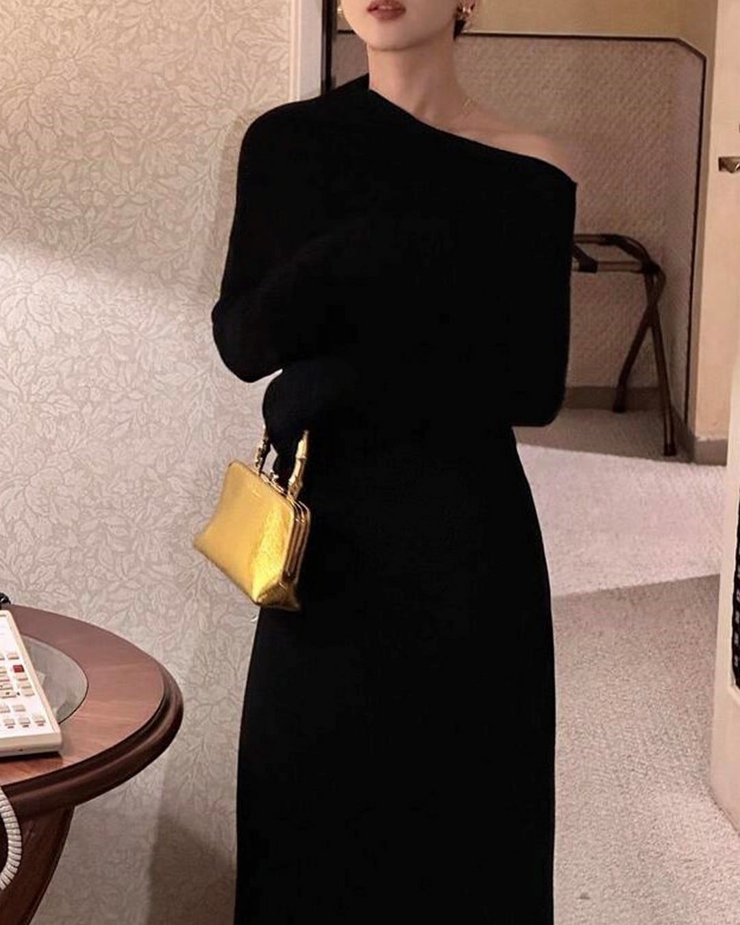 オフショルダーのデザインが大人の色気を引き立て、イレギュラーカラーがオシャレ感を演出します。シンプルながらも洗練されたスタイルを演出できる一枚です。