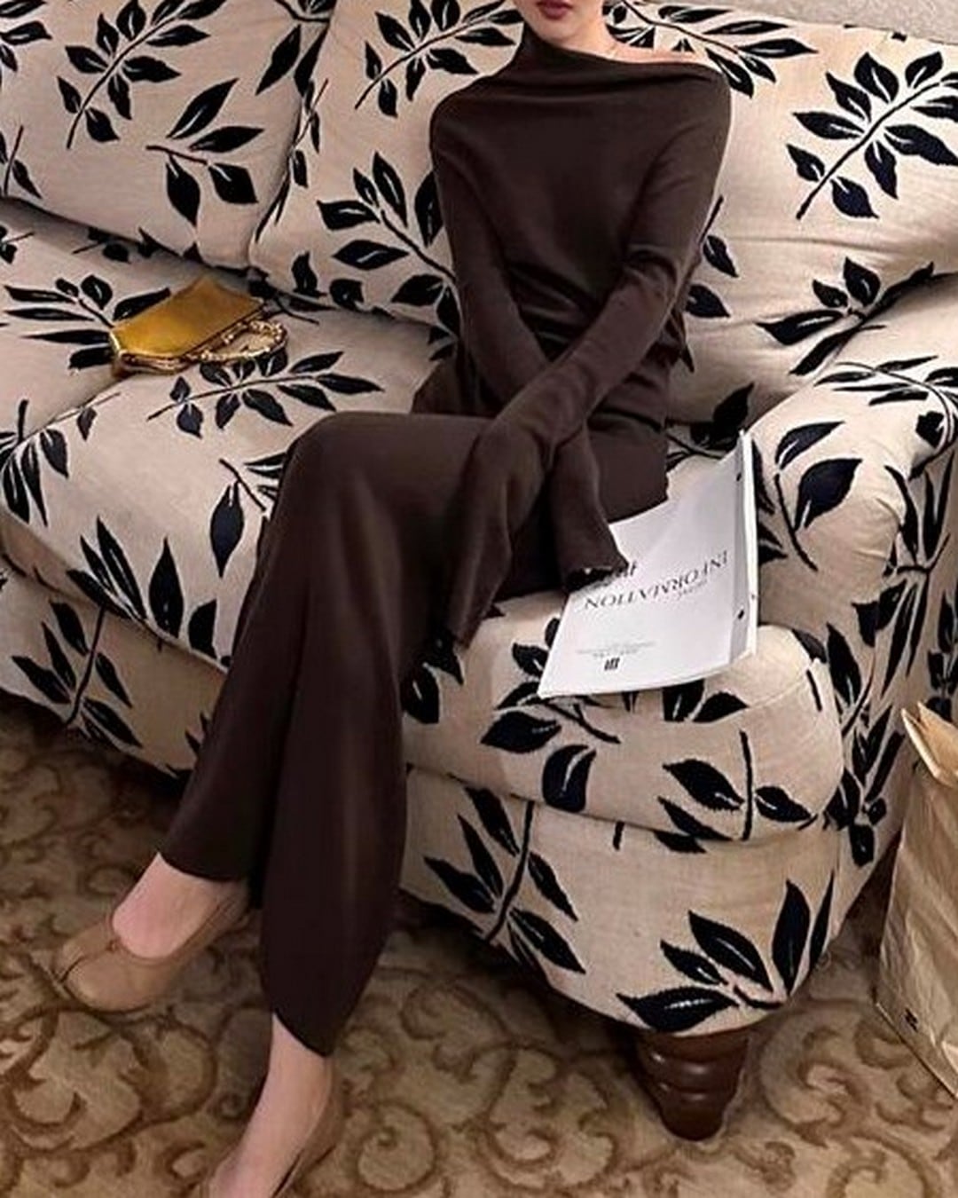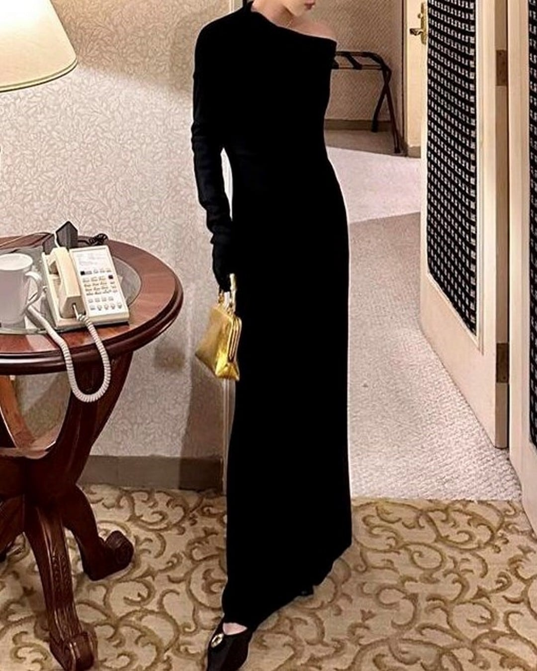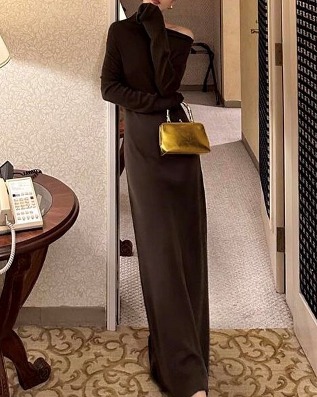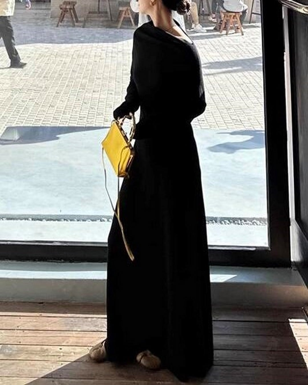 オフショルダーのデザインが大人の色気を引き立て、イレギュラーカラーがオシャレ感を演出します。シンプルながらも洗練されたスタイルを演出できる一枚です。