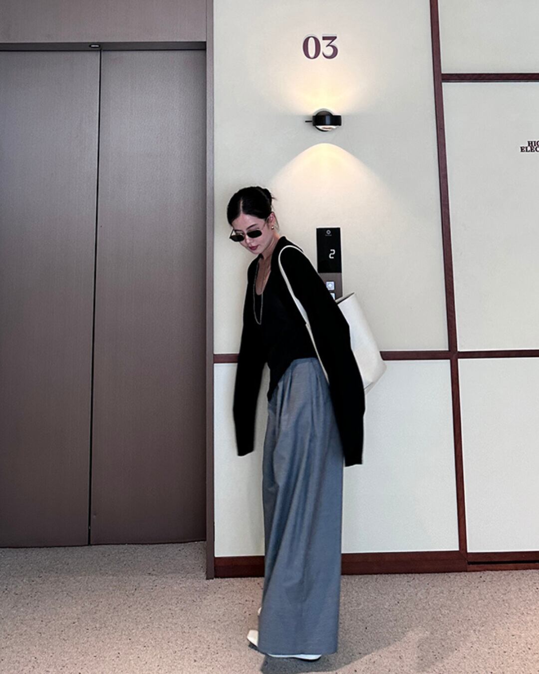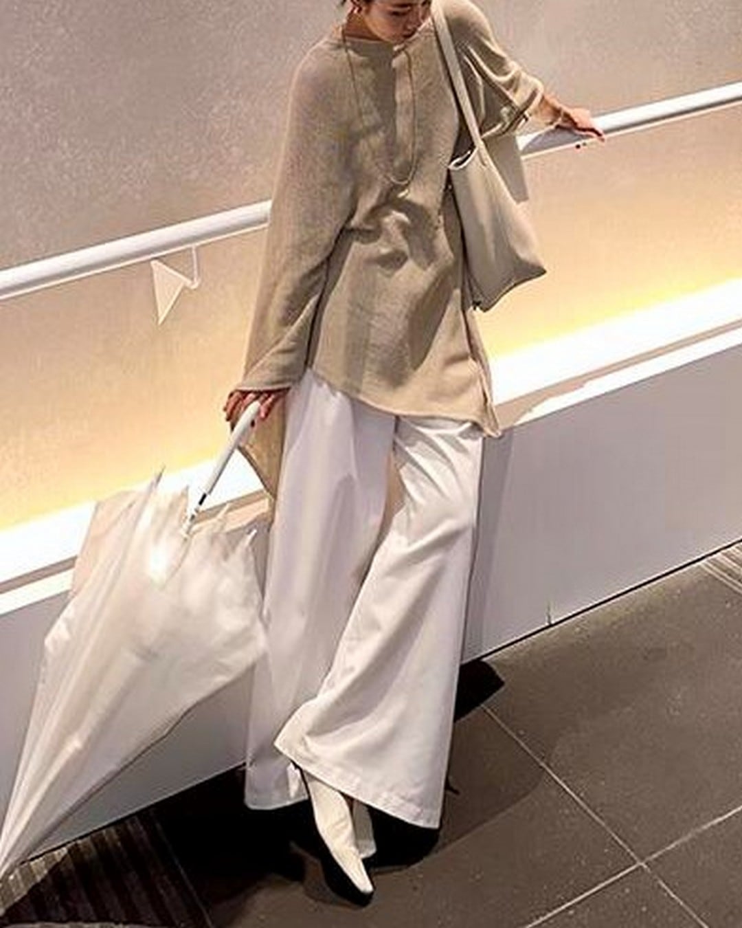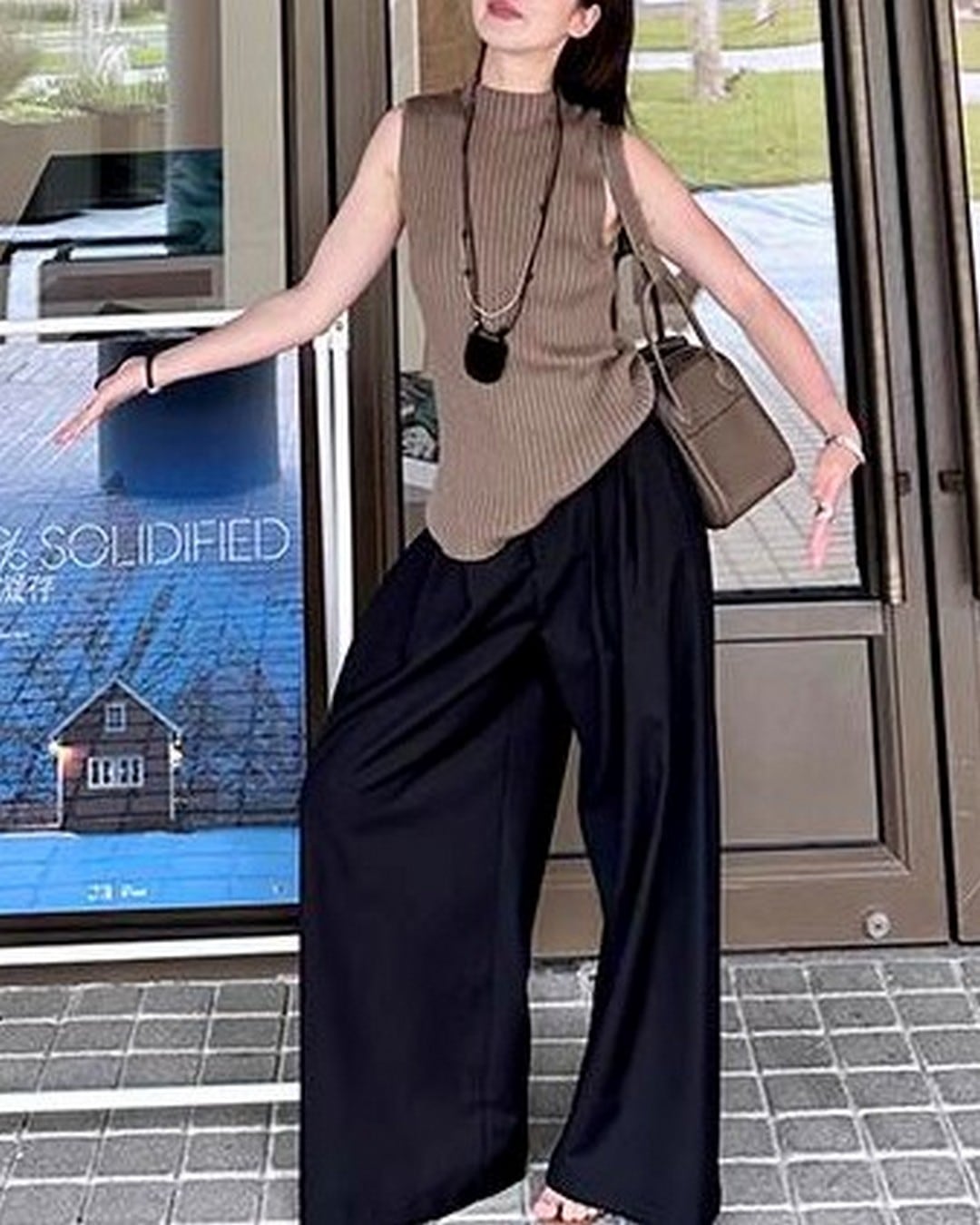 サイドにタックが入ったワイドシルエットが、洗練されたスタイリングを演出し、脚のラインを美しく見せてくれます。シンプルなデザインながら、サイドのタックが特徴的なアクセントとなり、カジュアルでも上品な雰囲気を醸し出します。