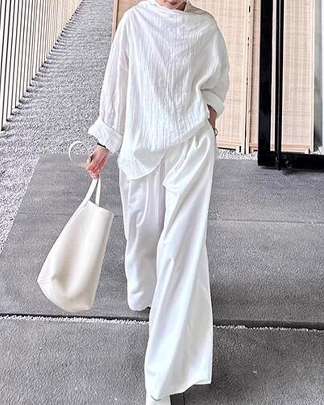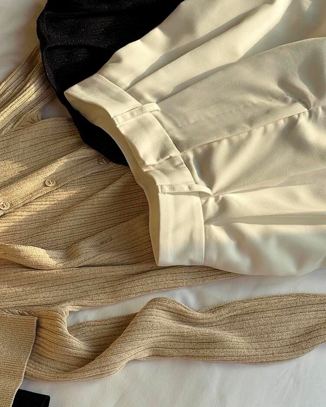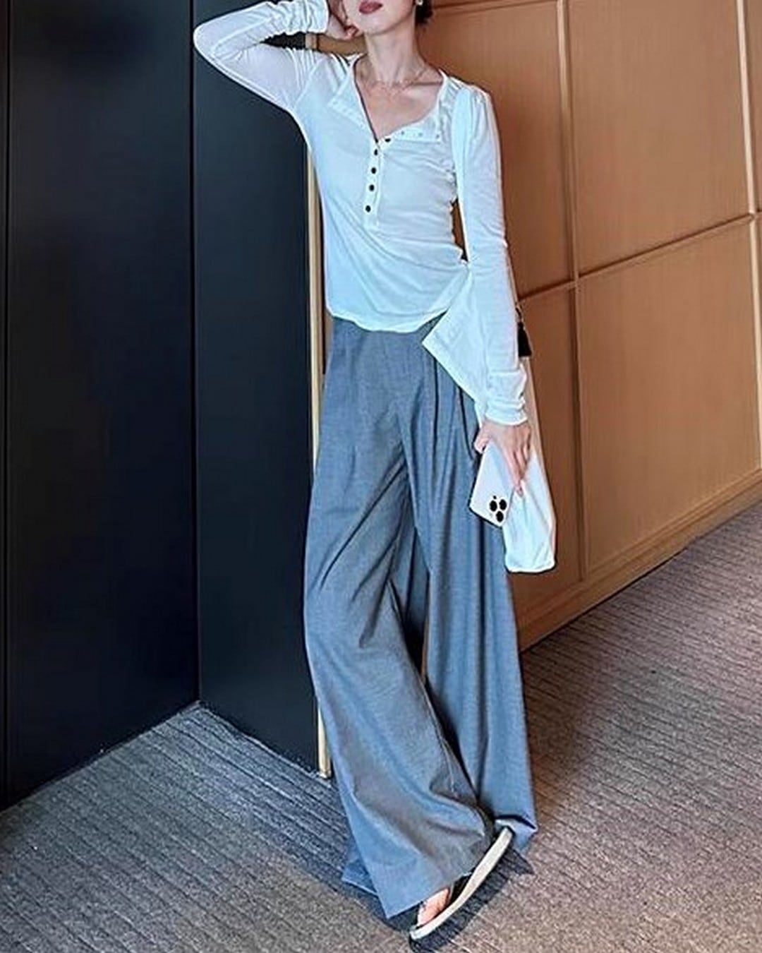 サイドにタックが入ったワイドシルエットが、洗練されたスタイリングを演出し、脚のラインを美しく見せてくれます。シンプルなデザインながら、サイドのタックが特徴的なアクセントとなり、カジュアルでも上品な雰囲気を醸し出します。