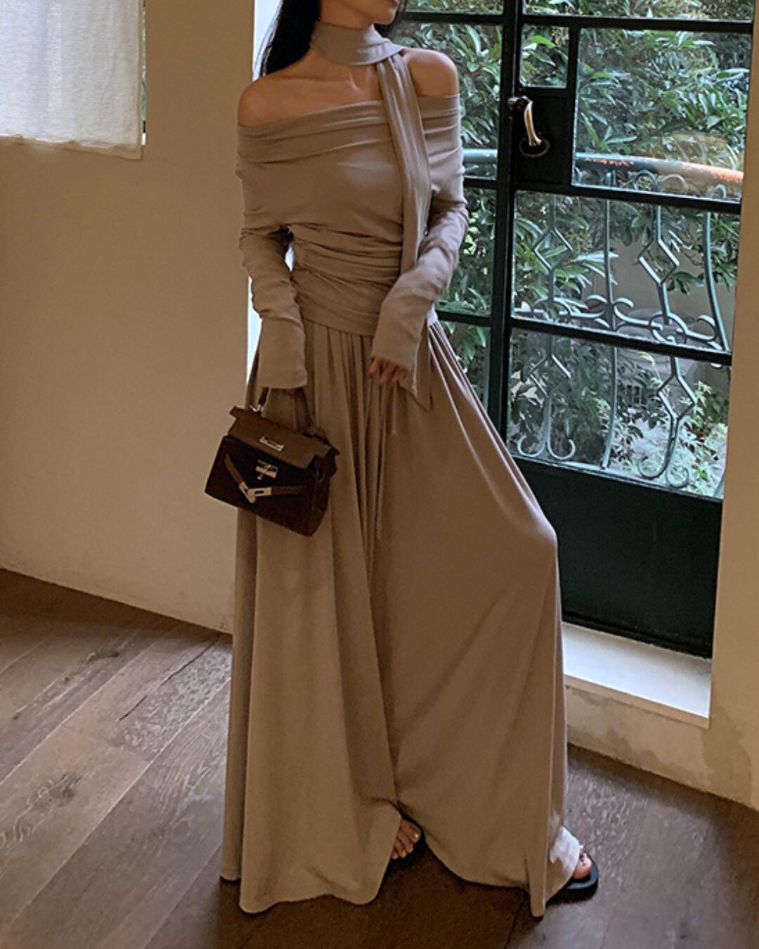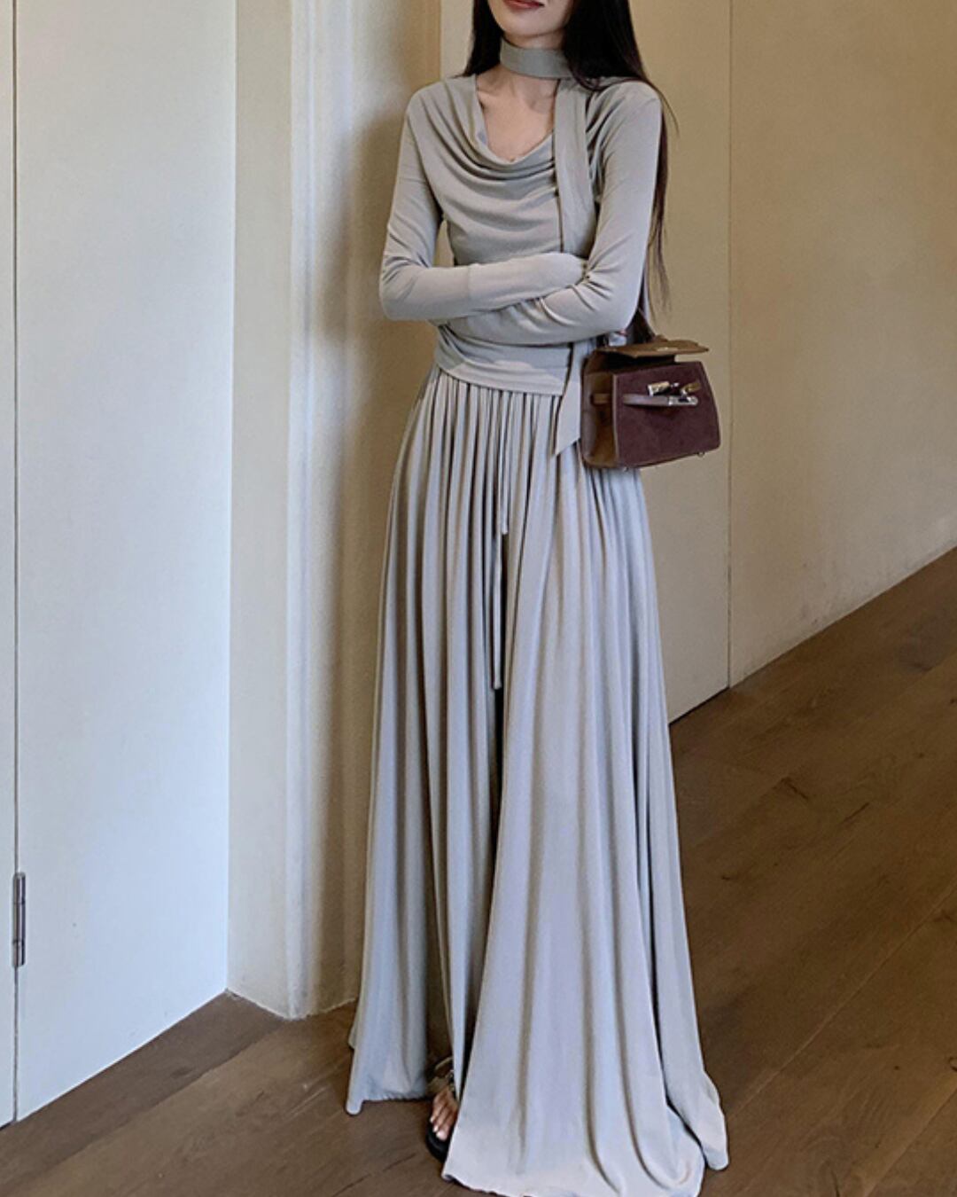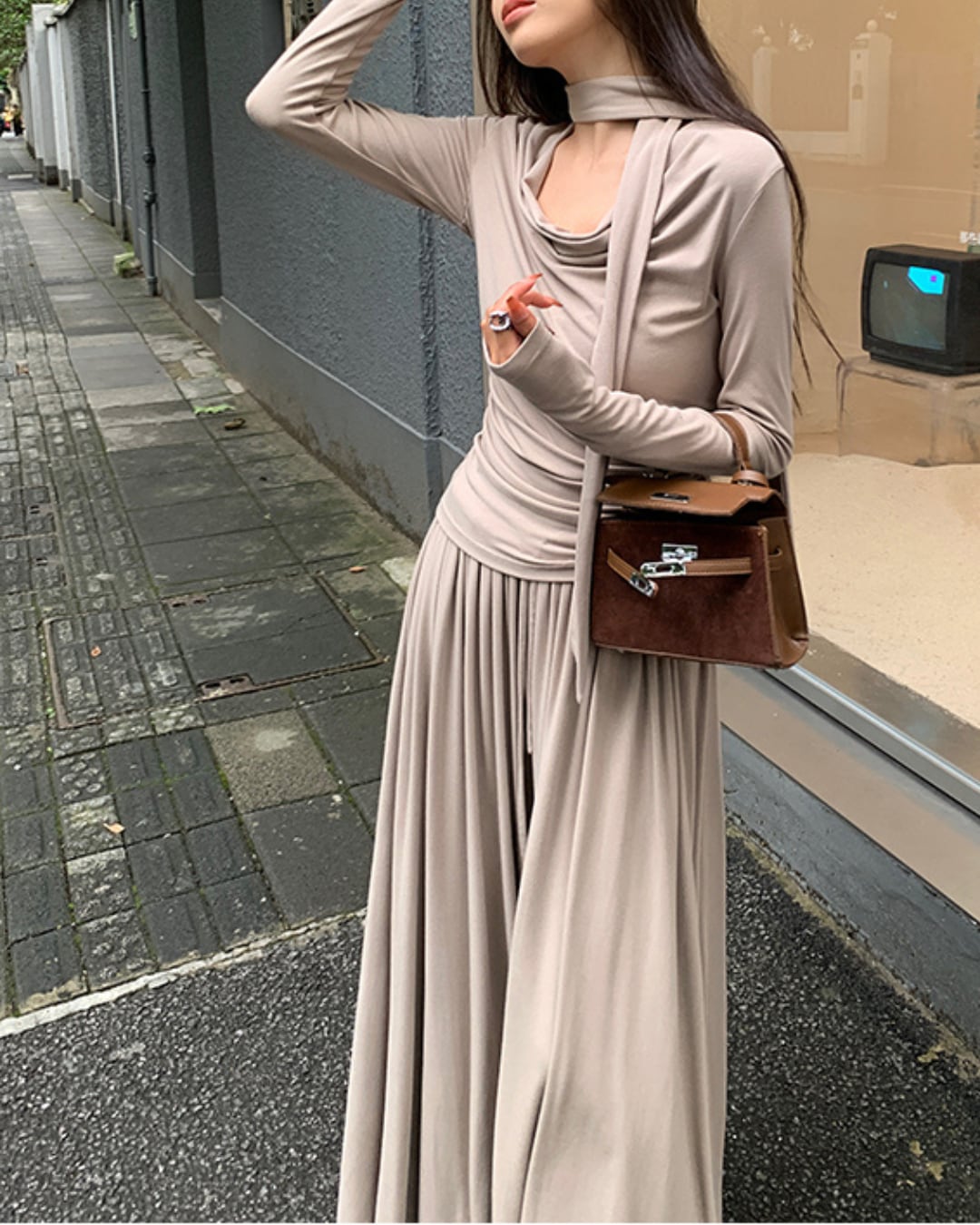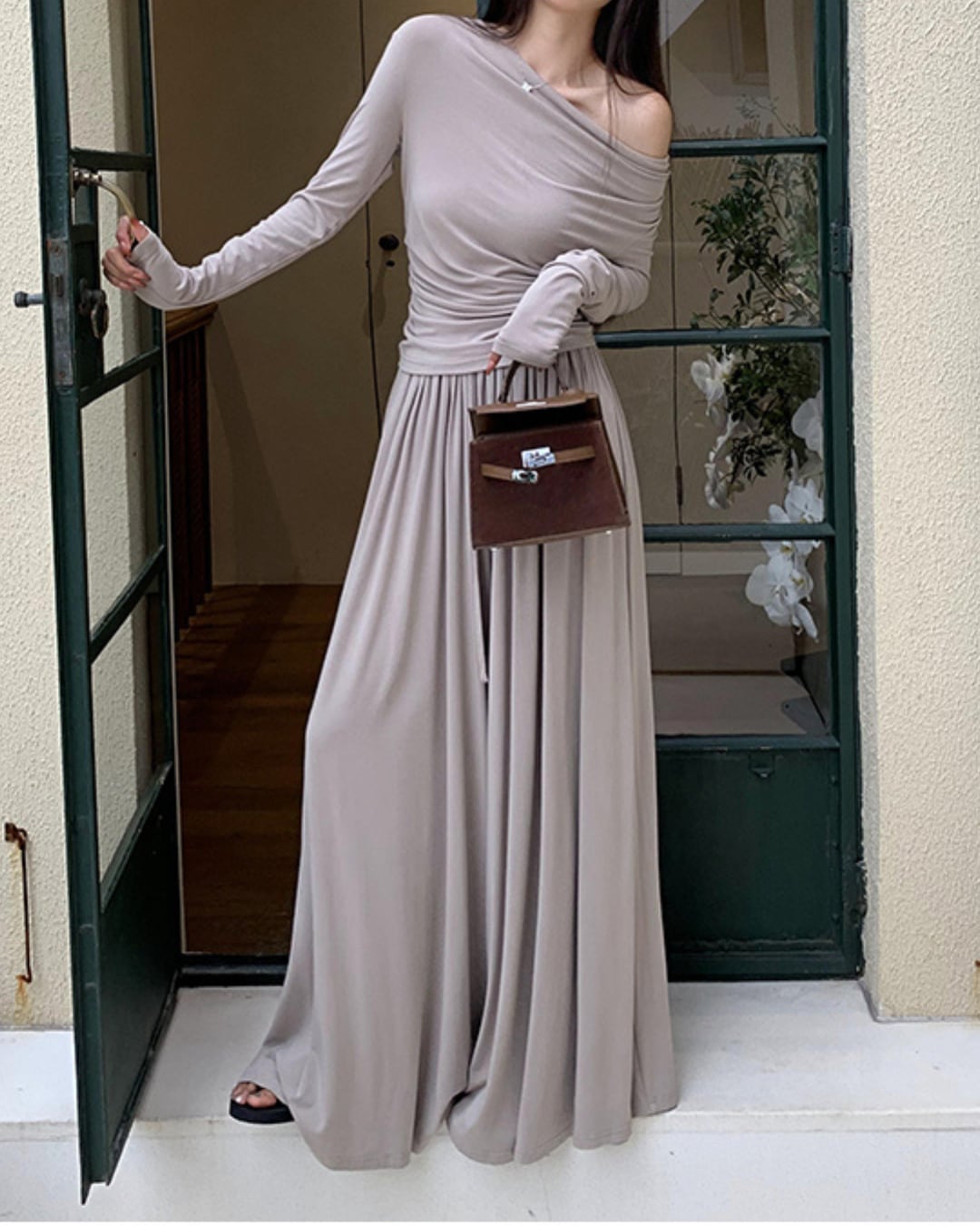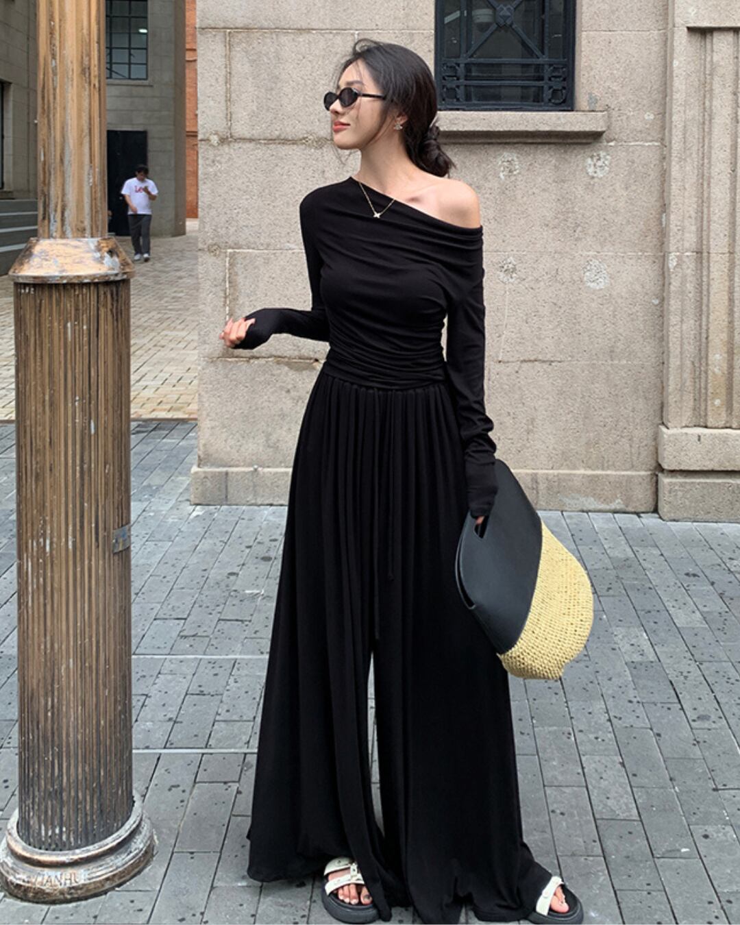 ドレープ感のある素材が流れるようなシルエットを作り出し、脚を美しく見せてくれます。ウエスト部分は程よくゴム仕様で快適な着心地を提供しつつ、ラインを美しく魅せてくれます。トップスを選ばず合わせやすいので、コーディネートの幅が広がります。