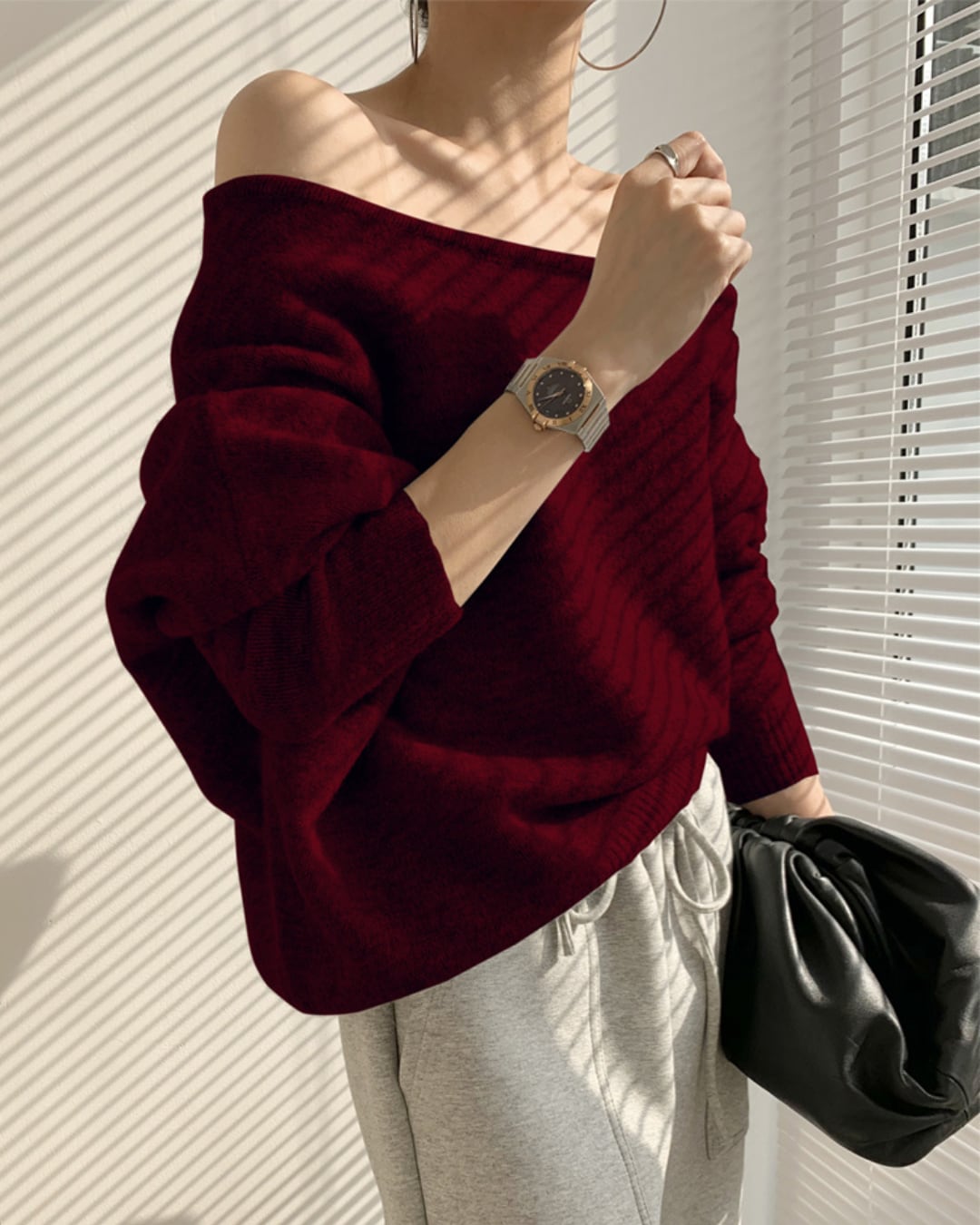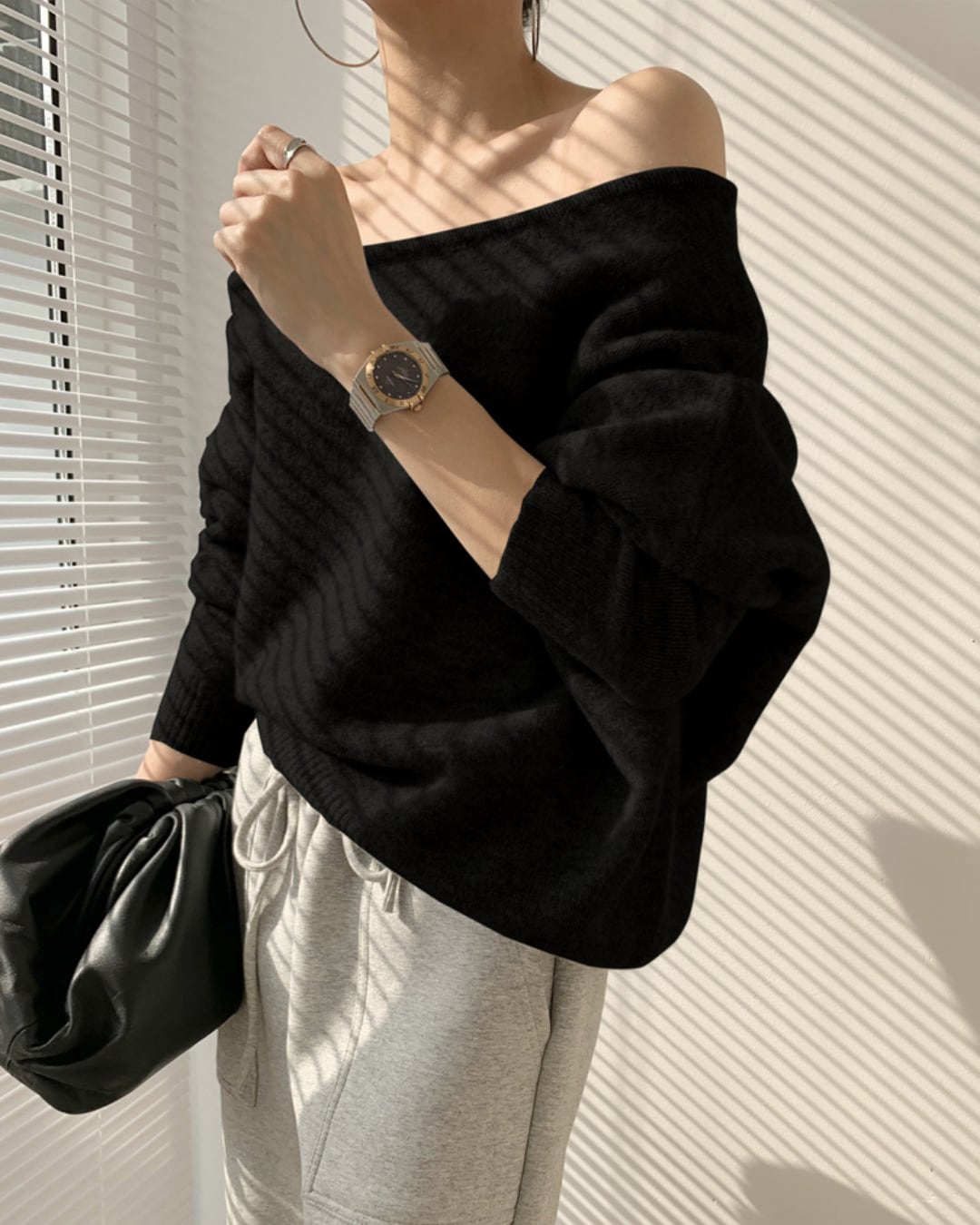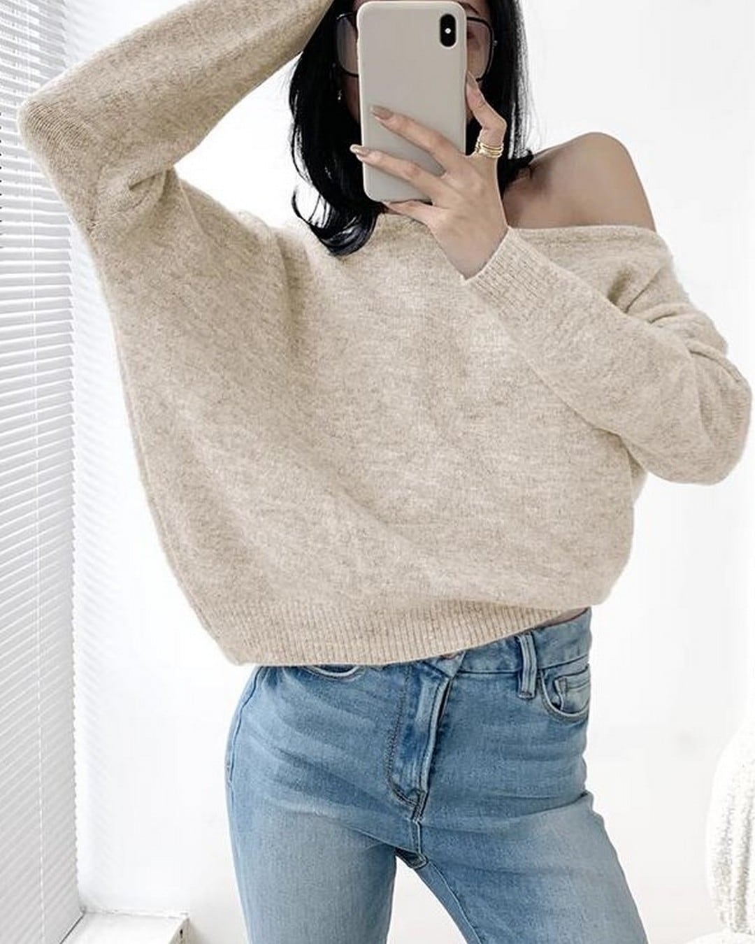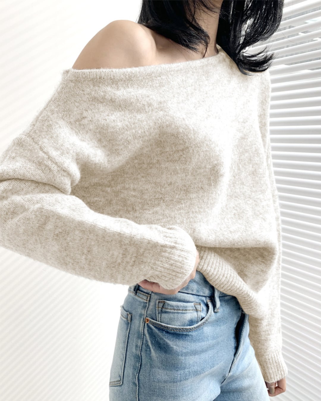 オフショルダーのデザインが、肩を美しく見せ、デコルテを引き立てます。パンツやデニムと相性抜群で合わせるだけで大人カジュアルスタイルが完成します。