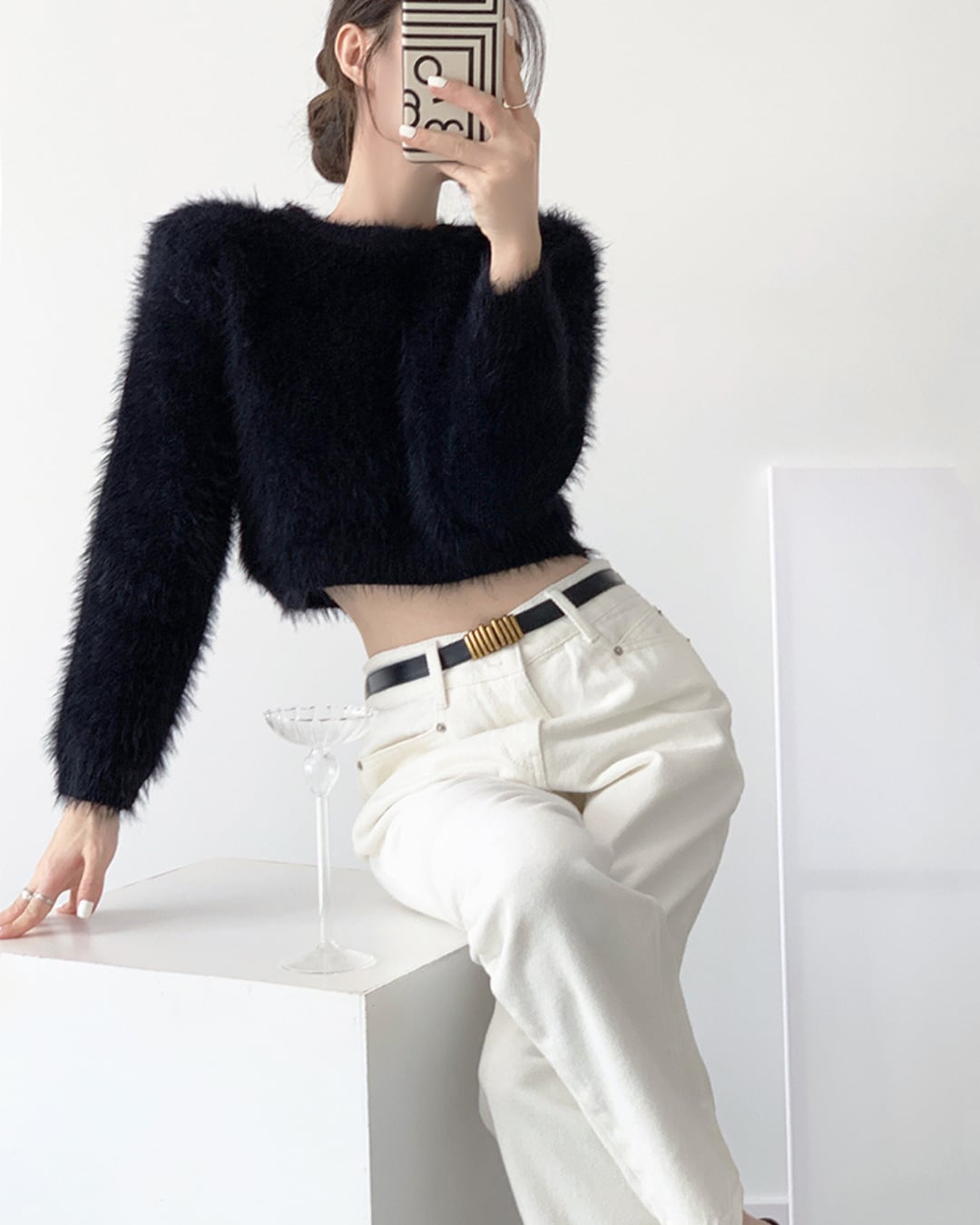 ふわふわとした素材感が特徴的なカジュアルなショートトップス。柔らかな質感が心地良く、着心地の良さを追求したアイテムとなっています。ふわふわとしたデザインは、可愛らしさとリラックス感を兼ね備えており、カジュアルなスタイルにぴったりです。