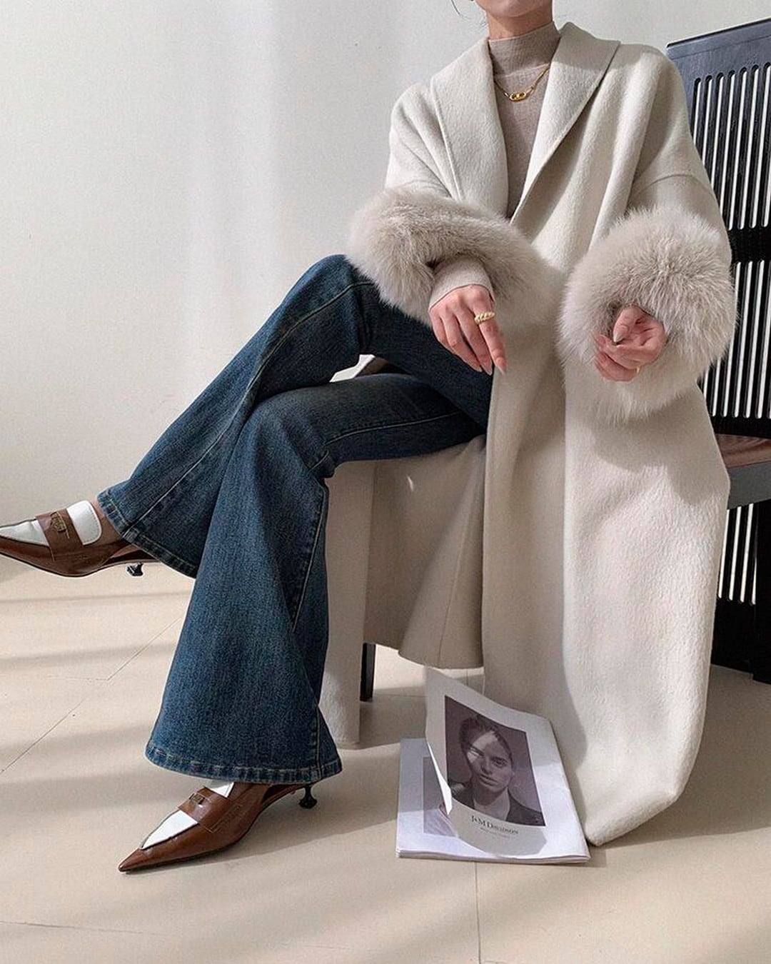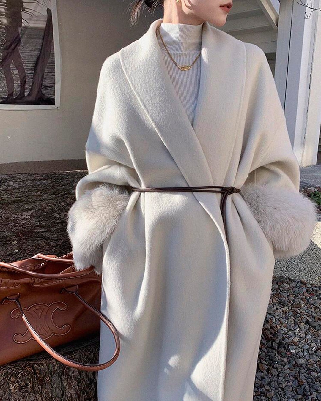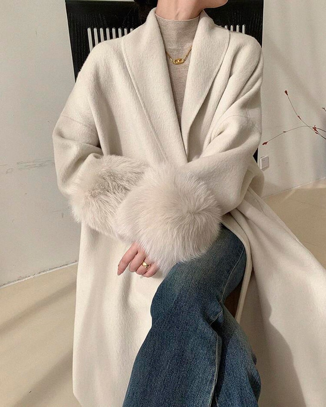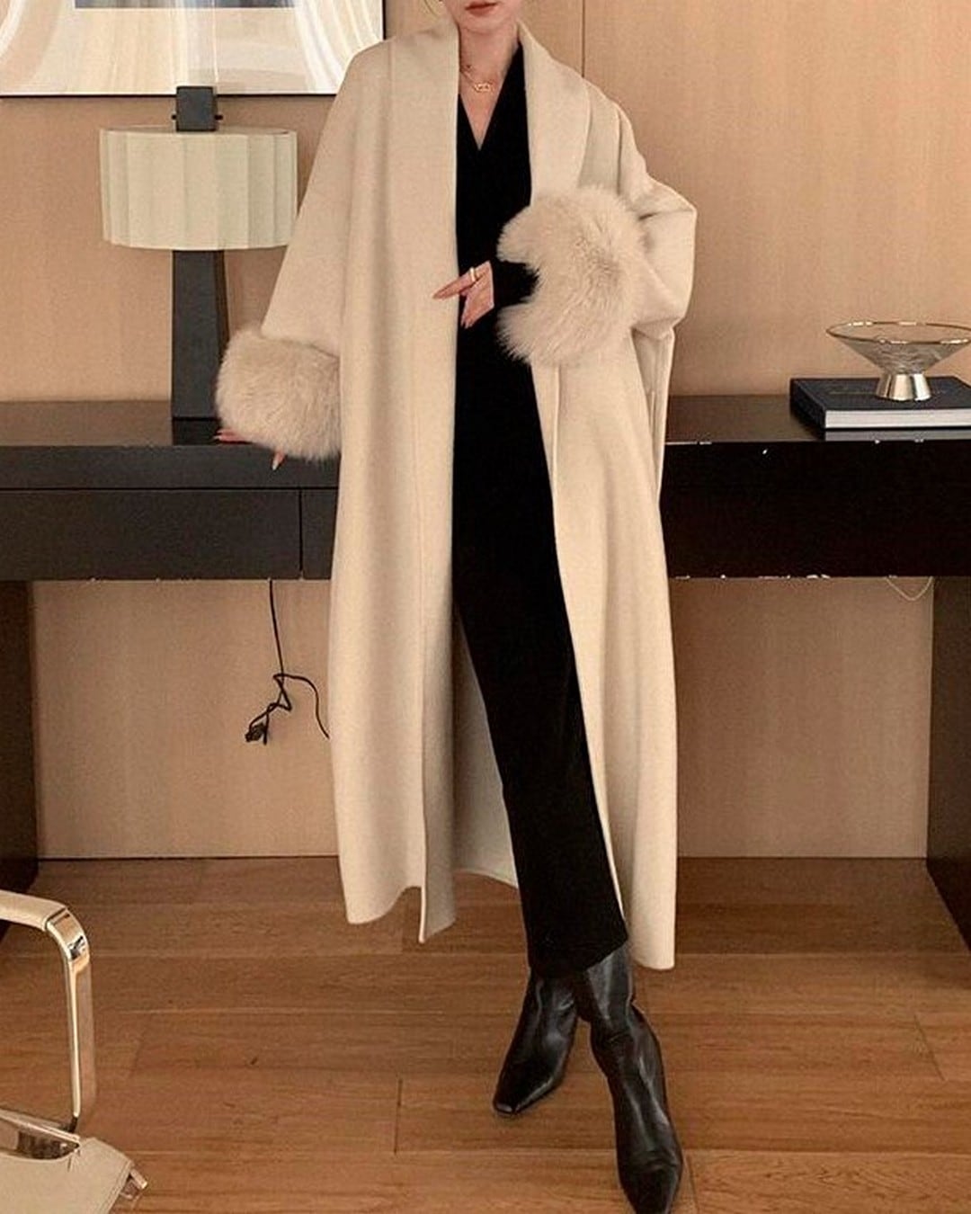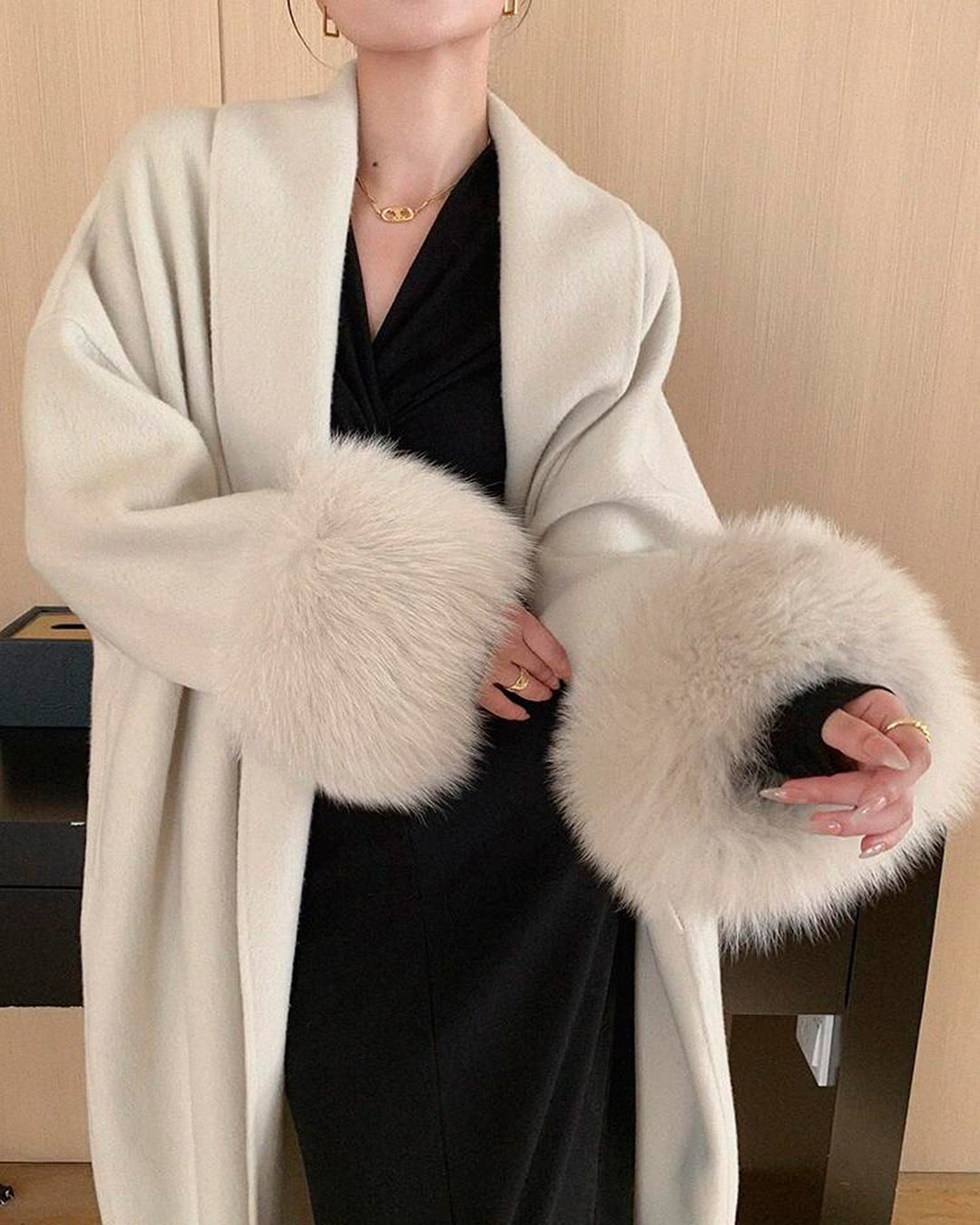 柔らかでボリュームのあるファーが使用された、気品と快適さを兼ね備えた一着。ゆったりとしたシルエットは、重ね着にも楽に対応し、袖口のファーラインが手元を華やかに演出。大人の女性の魅力を引き立てるシンプルなカラーで、冬のおしゃれを格上げします。