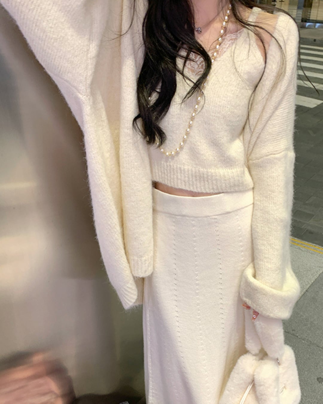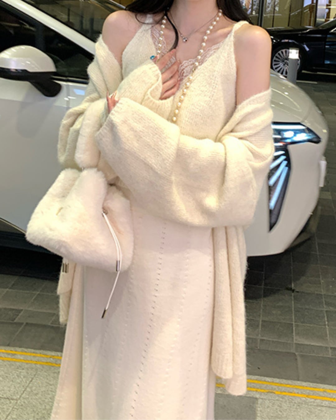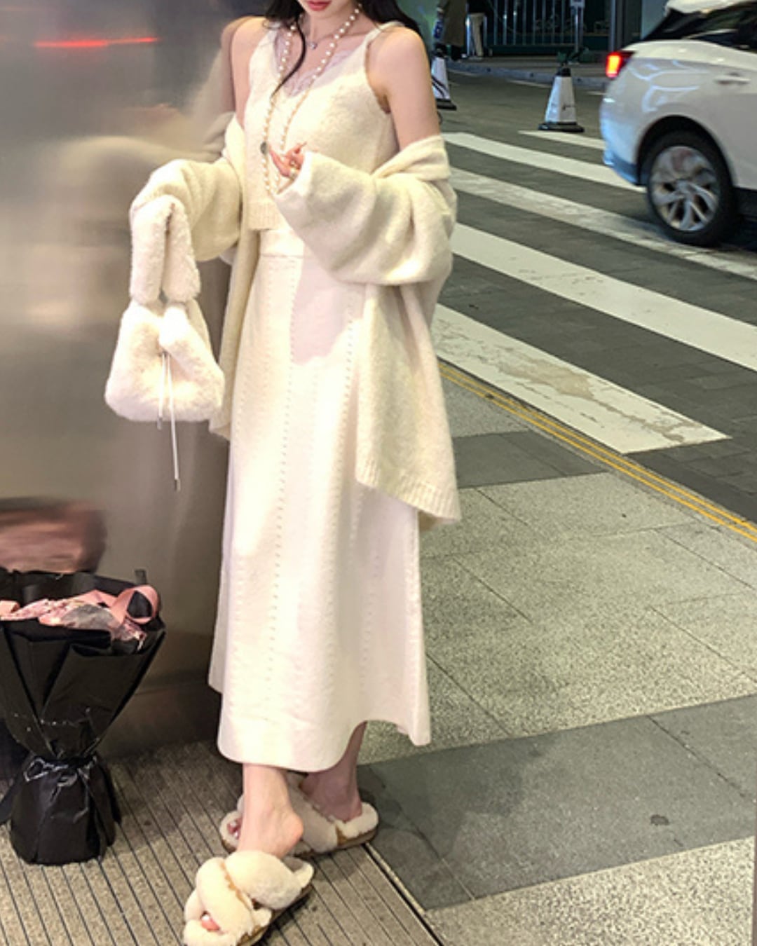 キャミソールニットとカーディガンがセットになった、リラックス感溢れるアイテムA。キャミソールはフィット感のあるデザインで、上品な印象を与えながらも、カーディガンでさっと羽織れば、さらなるお洒落感をプラスします。デイリースタイルからちょっとしたお出かけまで、幅広く活躍すること間違いなしです。柔らかなニット素材で、心地よい着用感を実感できます。