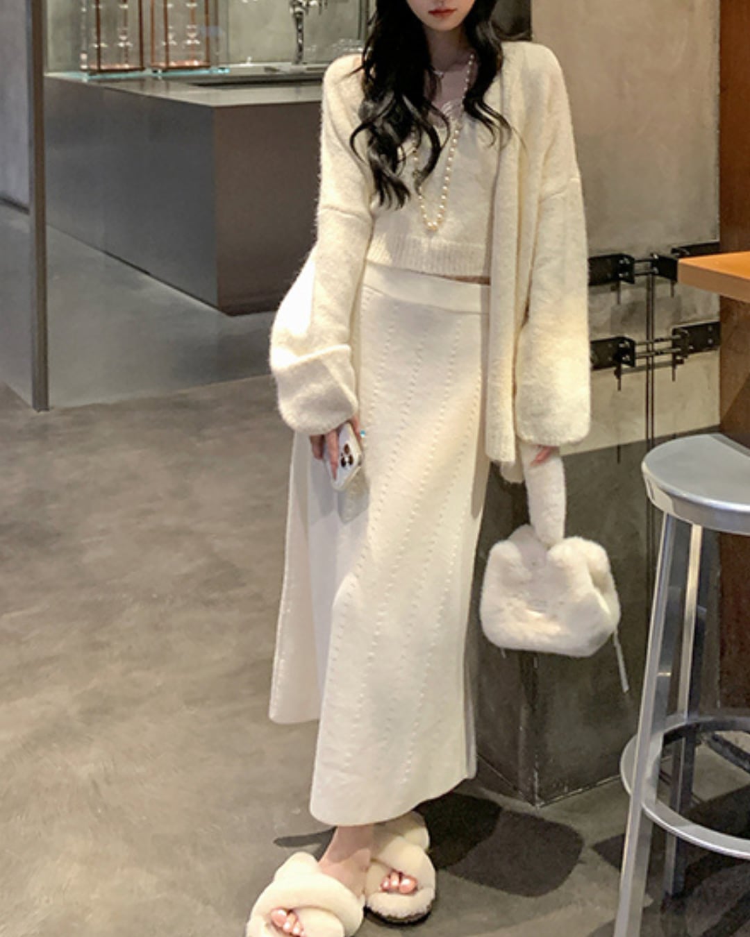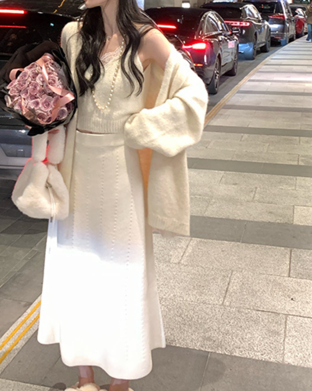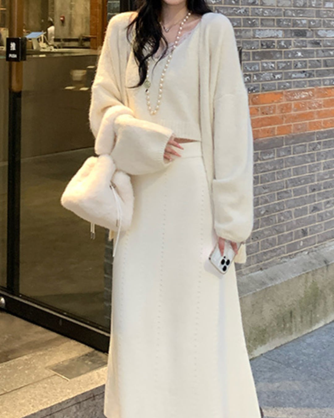 キャミソールニットとカーディガンがセットになった、リラックス感溢れるアイテムA。キャミソールはフィット感のあるデザインで、上品な印象を与えながらも、カーディガンでさっと羽織れば、さらなるお洒落感をプラスします。デイリースタイルからちょっとしたお出かけまで、幅広く活躍すること間違いなしです。柔らかなニット素材で、心地よい着用感を実感できます。