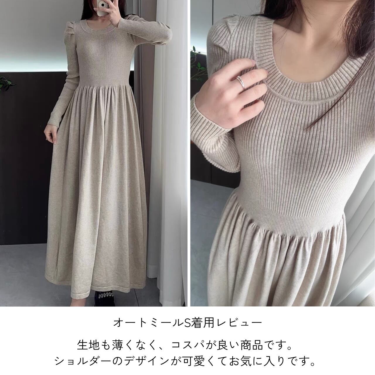 パフショルダーギャザーニットワンピース A24291