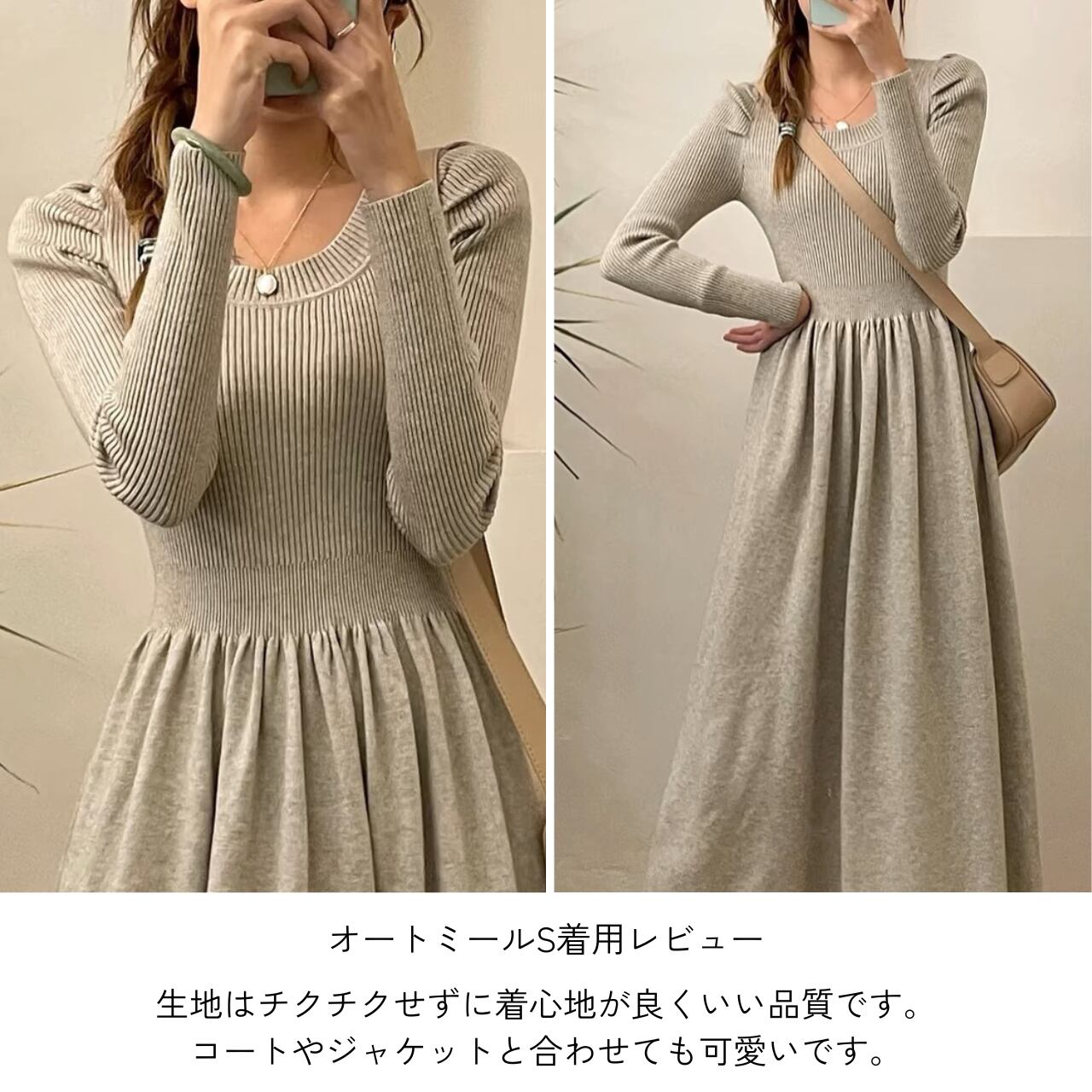 シルエットが美しく、女性らしさを思う存分引き立てるパフショルダーギャザーニットワンピース。このワンピースは、デイリーユースから特別なお出かけまで、さまざまなシーンで大活躍します。パフショルダーのデザインが華やかさを添え、ギャザーが作る柔らかなラインが魅力的です。