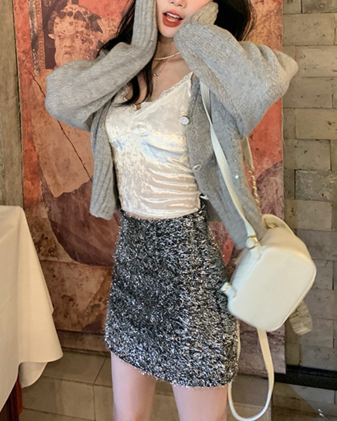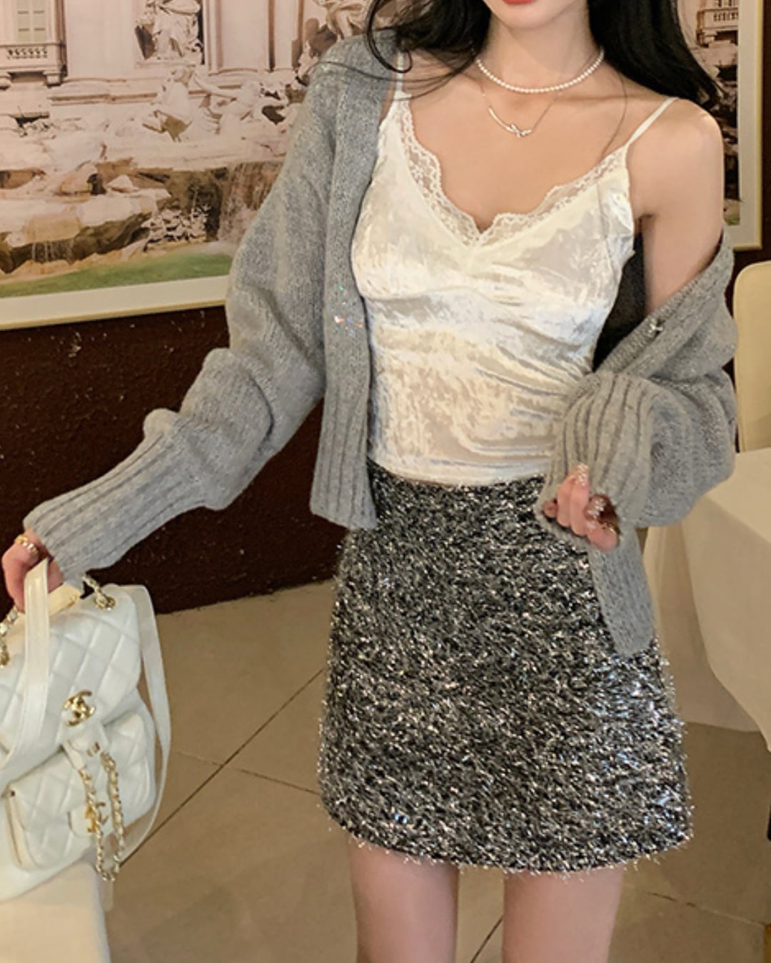 シンプルでありながら輝きを放つスパンコールデザインカーディガン。スパンコールの施されたデザインは、どんなコーディネートにも華やかさを添えてくれます。デイリーユースからちょっとしたお出かけまで幅広く活躍する、このカーディガンはあなたのスタイルを格上げすること間違いなしのアイテムです。
