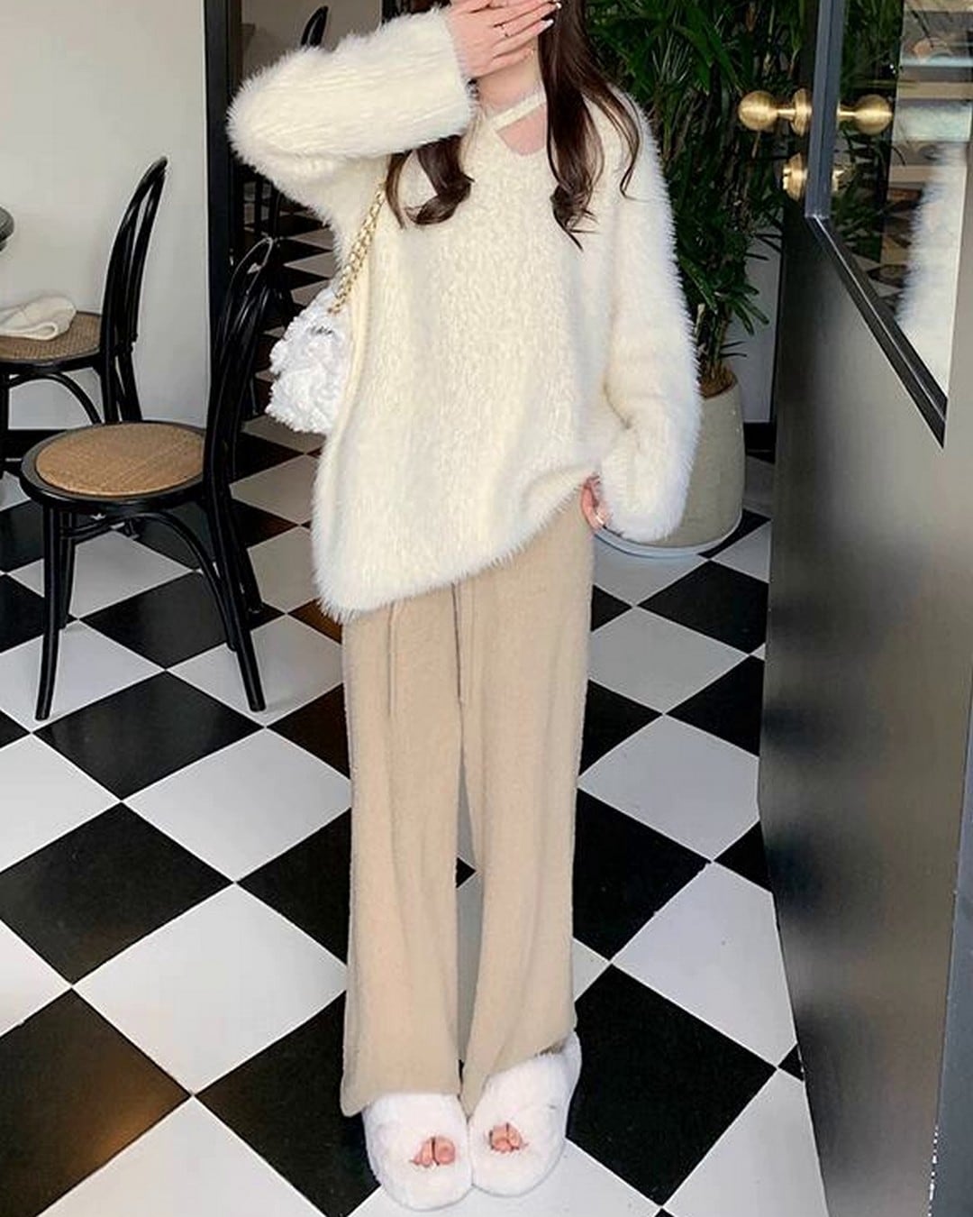 ゆったりとしたシルエットで、リラックスした雰囲気を演出できる一着。 Vネックデザインは首元をすっきり見せてくれ、普段使いからお出かけまで、幅広く活躍すること間違いなしのニットです。