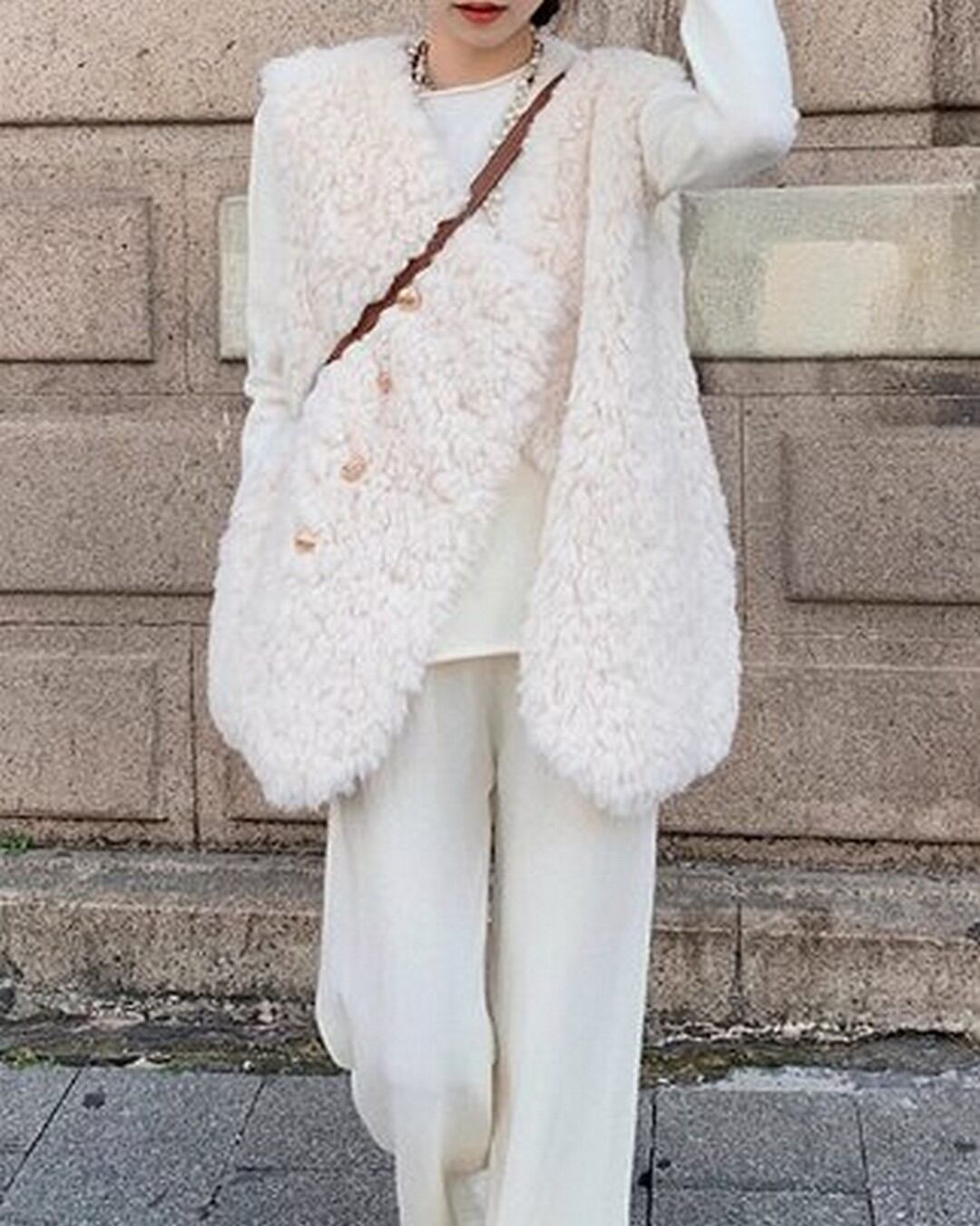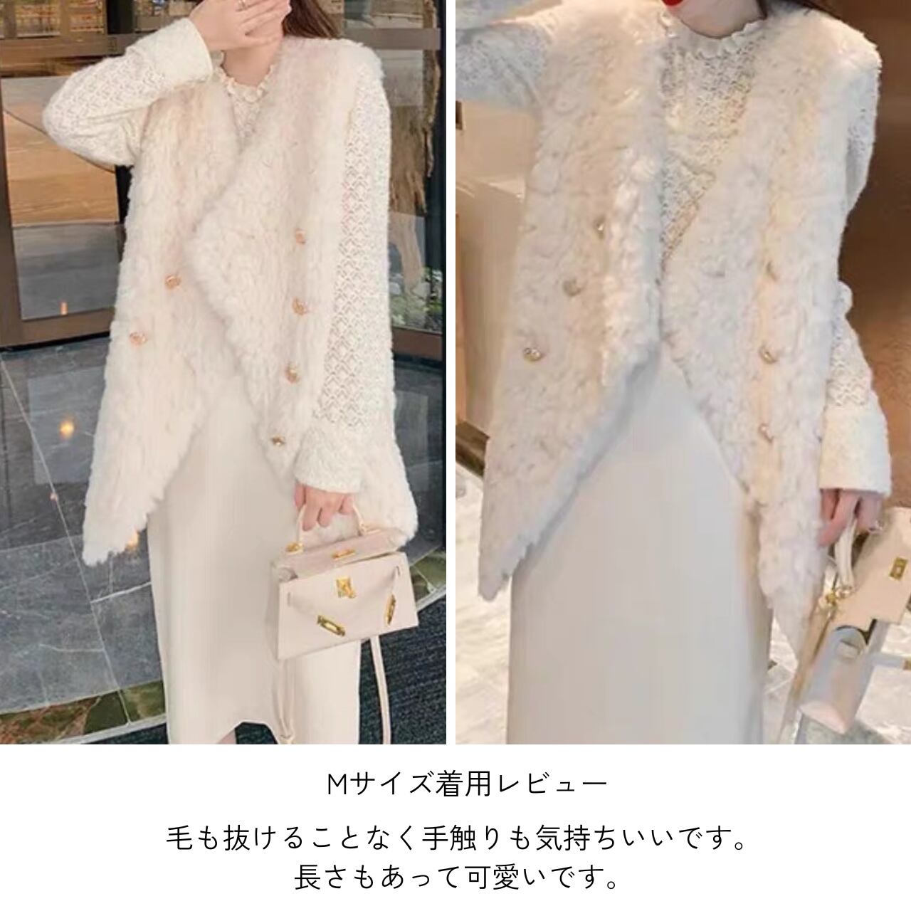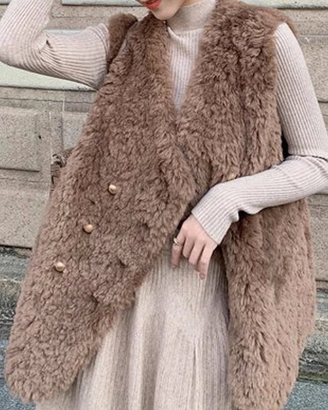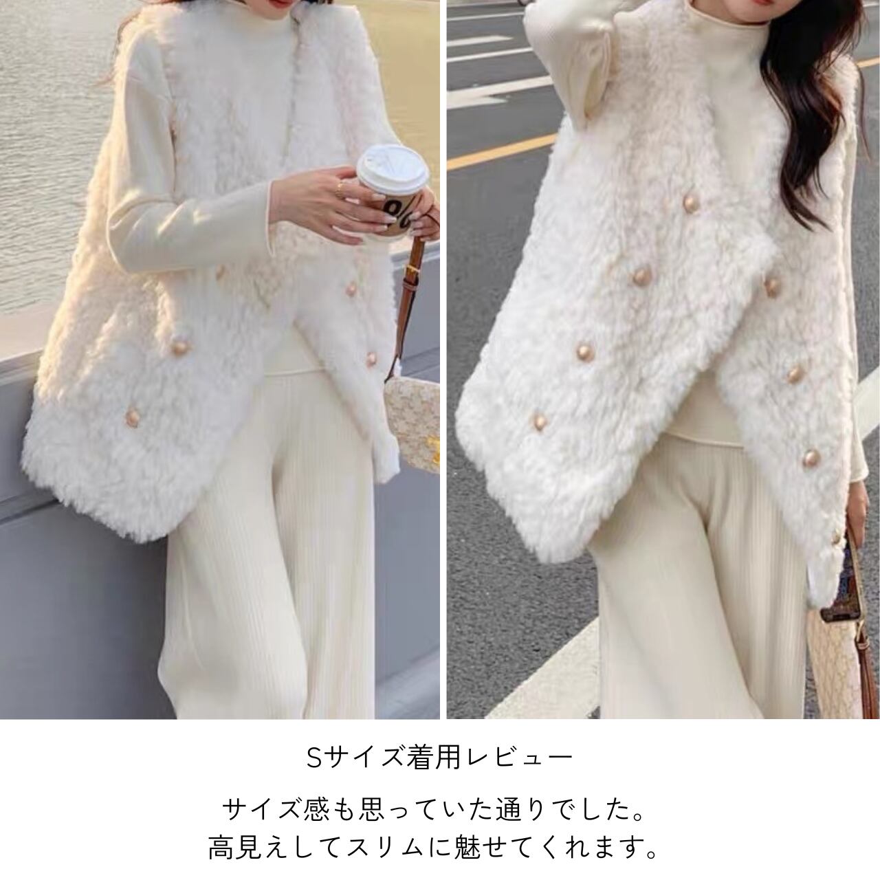 暖かさとスタイルを兼ね備えたボアベストジャケット。柔らかいボア素材が体を優しく包み込み、寒い季節に最適です。カジュアルなコーディネートにアクセントを加えてくれる一着です。