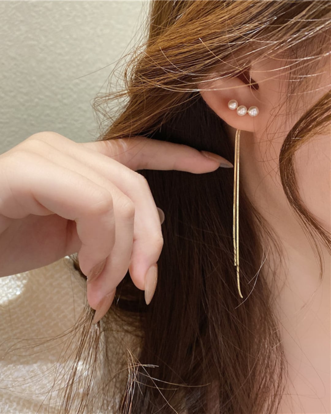 輝くパールが耳元を美しく演出し、シンプルながらも洗練された印象を与えます。ドロップデザインは動くたびに揺れ、華やかなアクセントに。カジュアルなスタイルからフォーマルなシーンまで幅広く活躍する、必見のアクセサリーです。