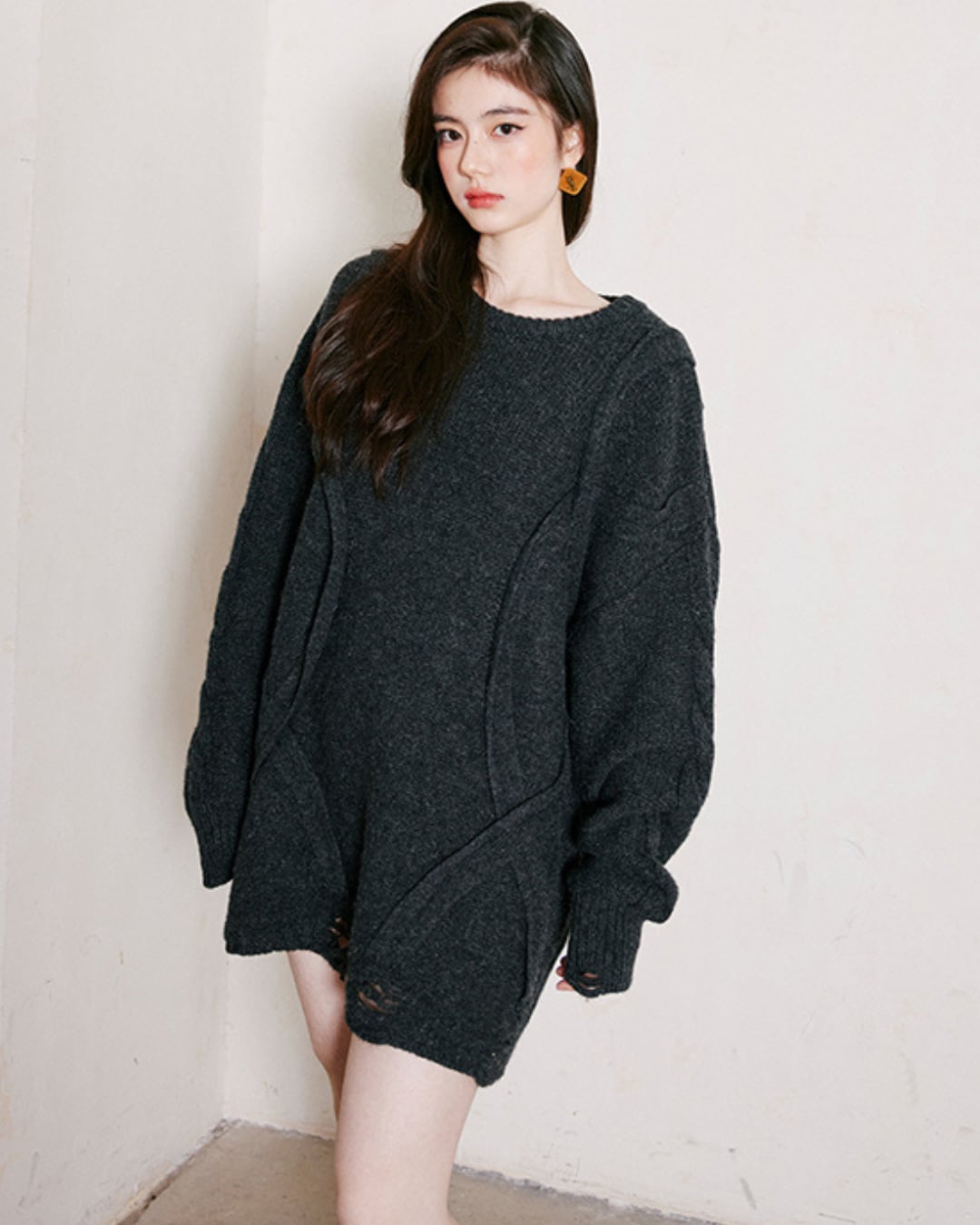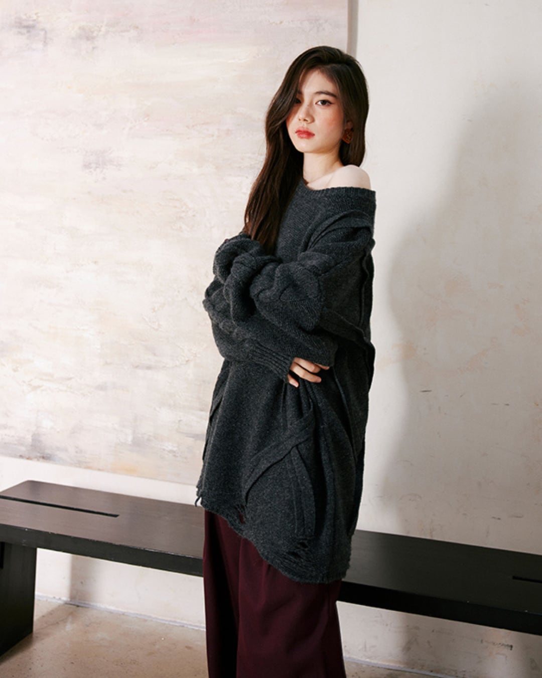 クラッシュヘムデザインが魅力のニットは、スタイリッシュな印象を与えるアイテムです。ニットのデザインや、リラックスしたシルエットが特徴的で、カジュアルな日常使いや、友達とのお出かけ時にも重宝することでしょう。
