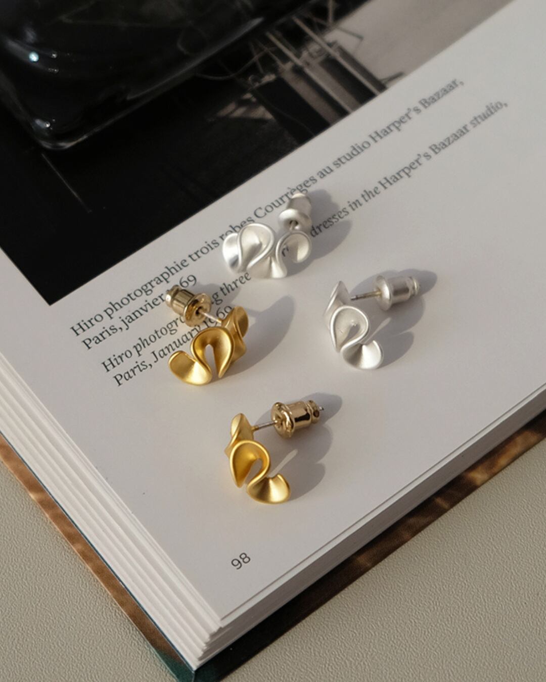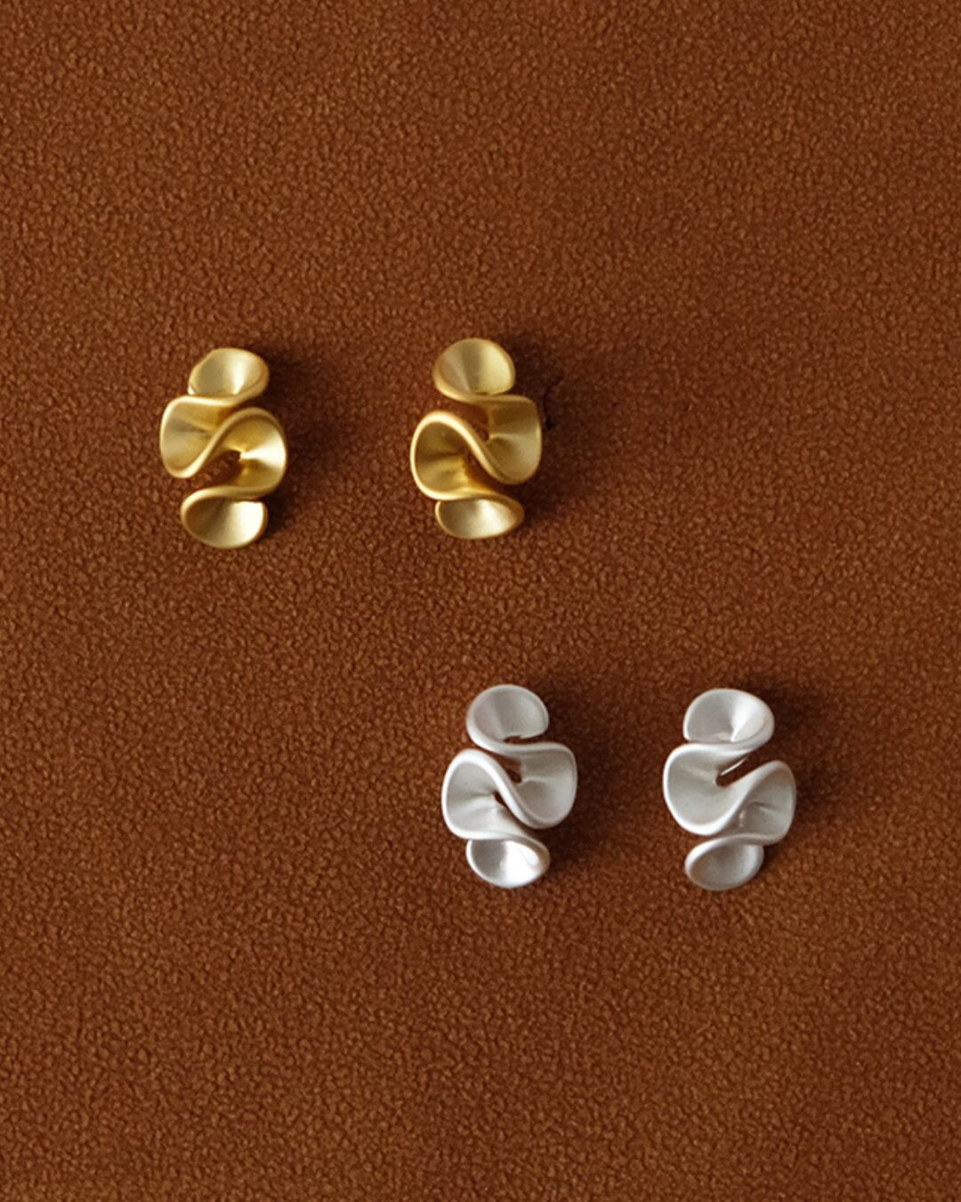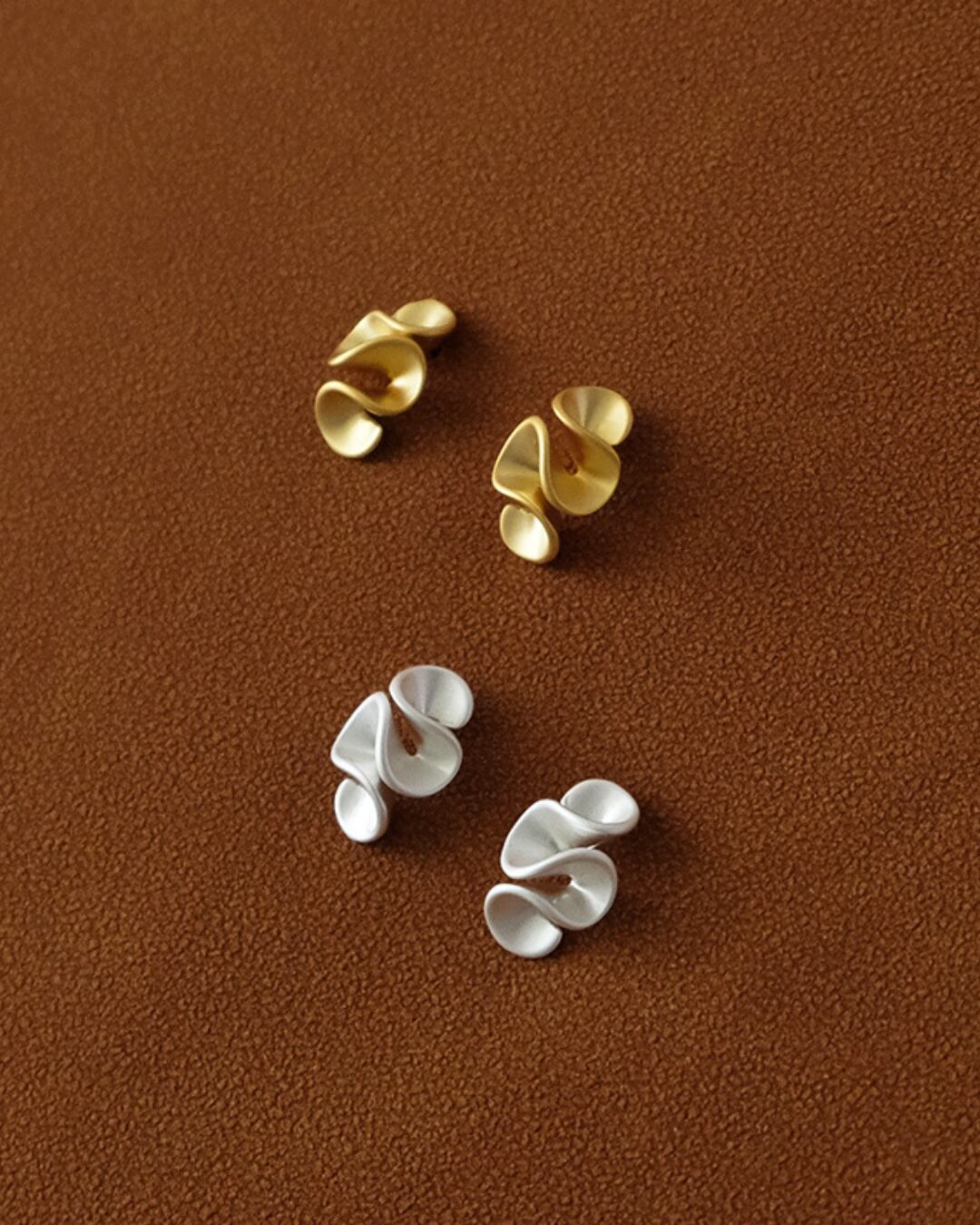 流れるようなウェーブデザインが特徴的なアイテムで、耳元を優雅に演出します。光を受けてきらめくこのピアスは、カジュアルなスタイルはもちろん、ちょっとした特別なシーンにもぴったりです。