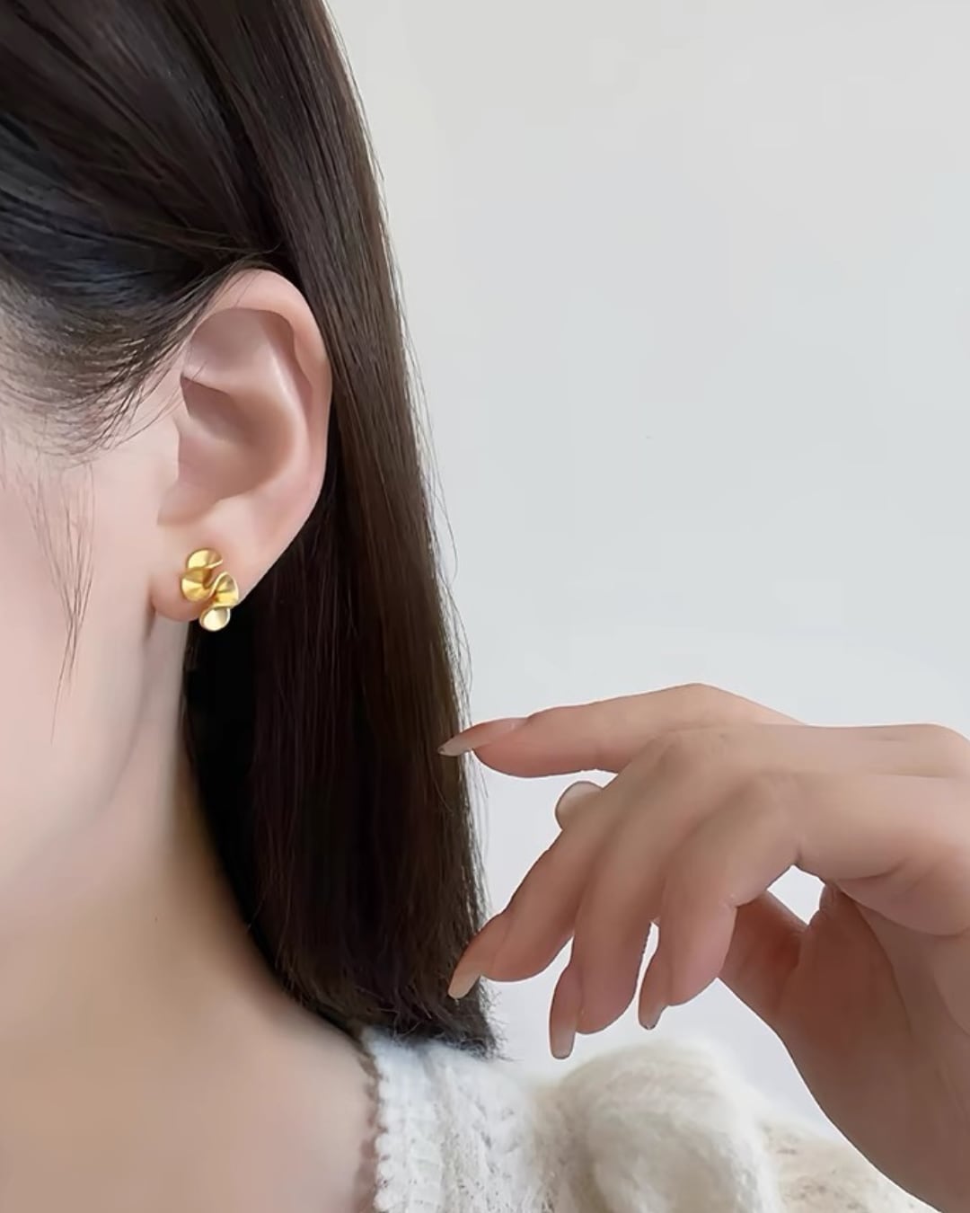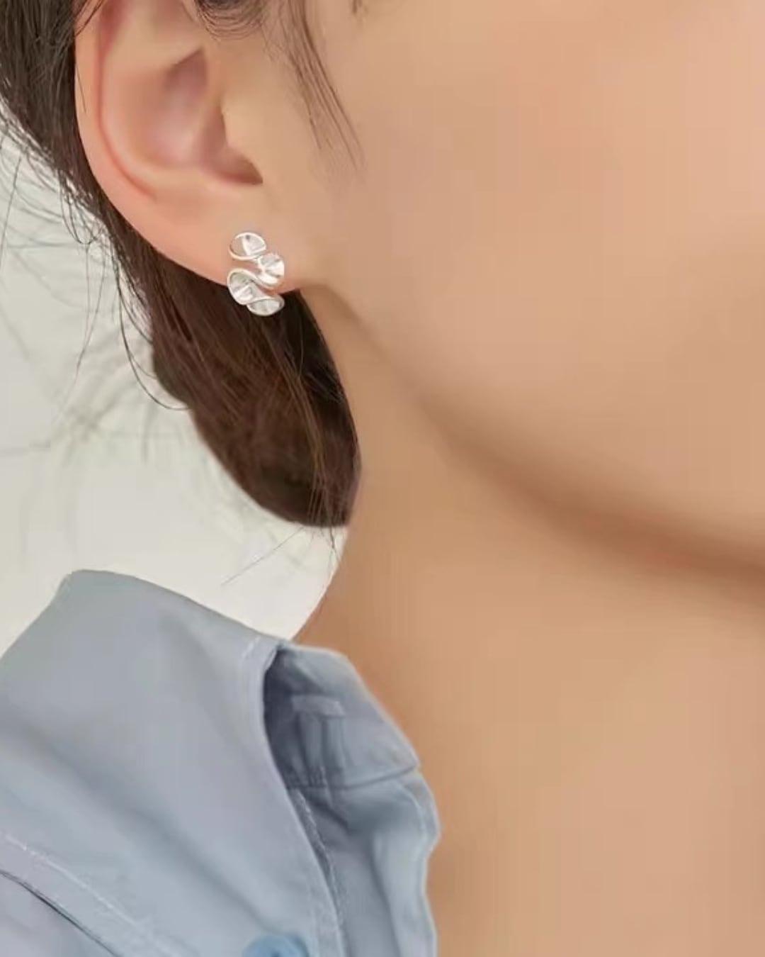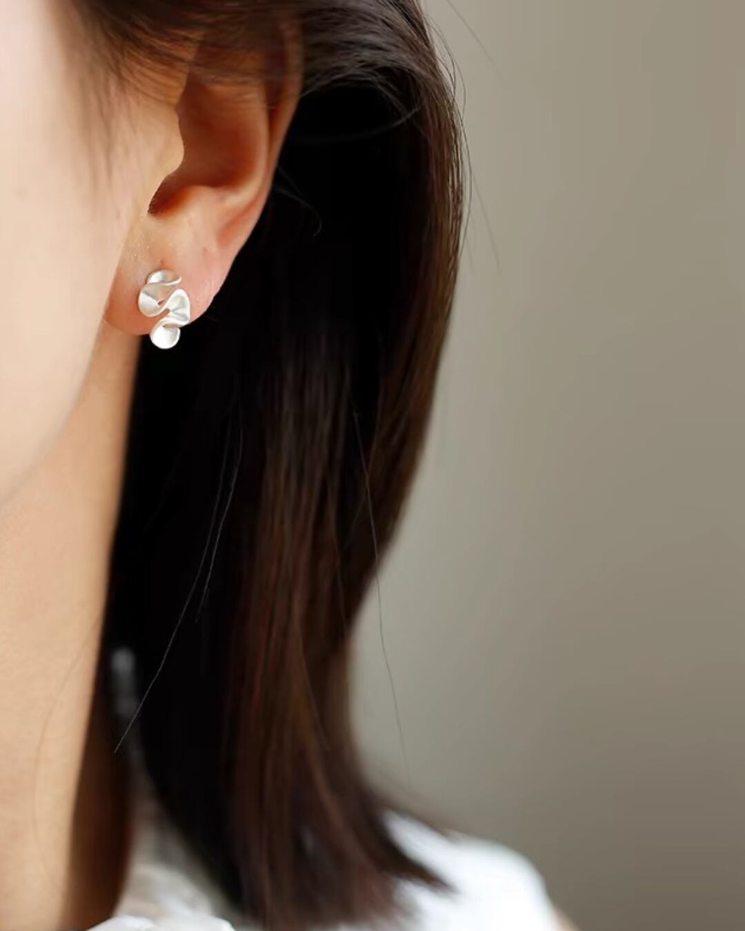 流れるようなウェーブデザインが特徴的なアイテムで、耳元を優雅に演出します。光を受けてきらめくこのピアスは、カジュアルなスタイルはもちろん、ちょっとした特別なシーンにもぴったりです。