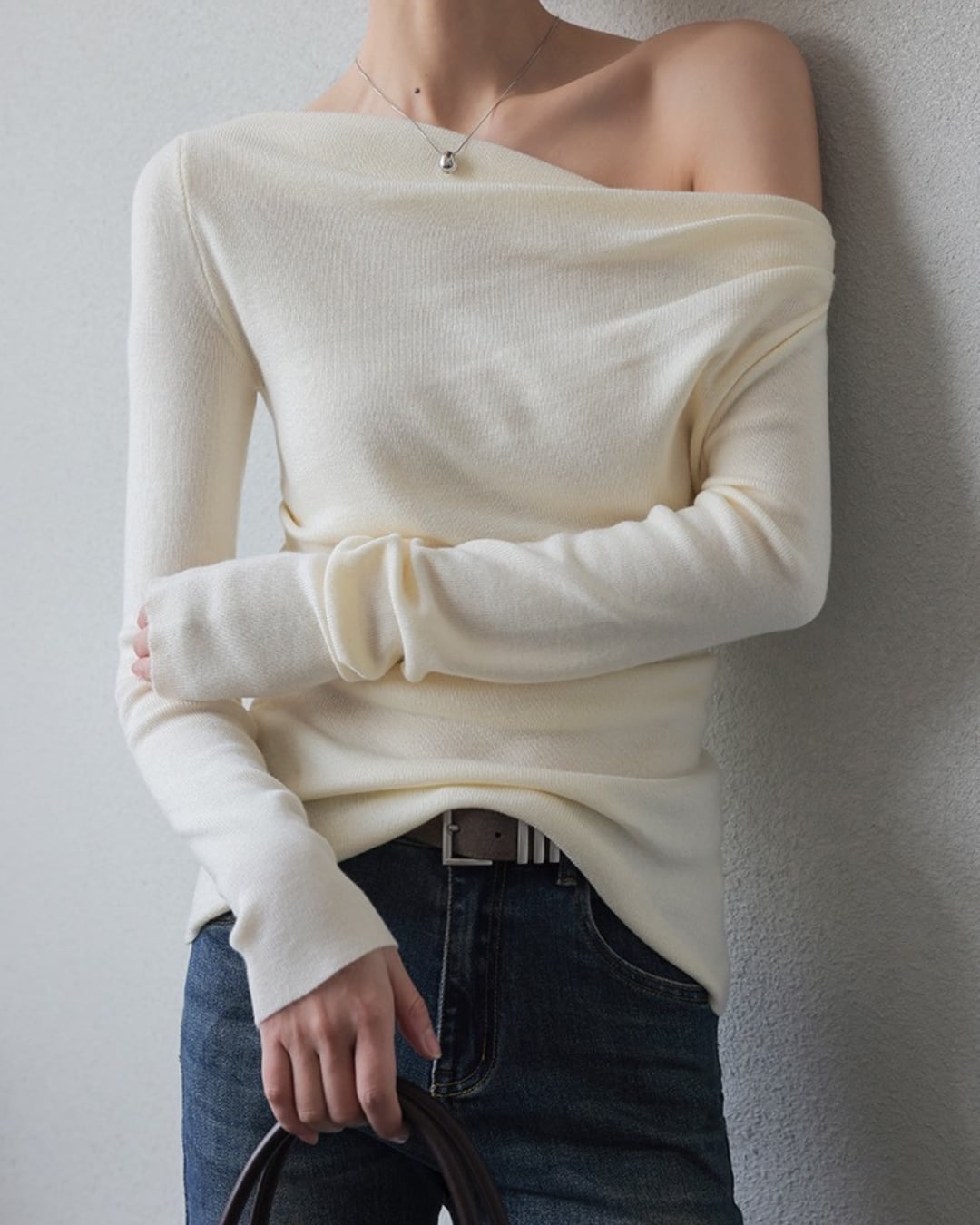 ワンショルダールーズニットトップス A24384