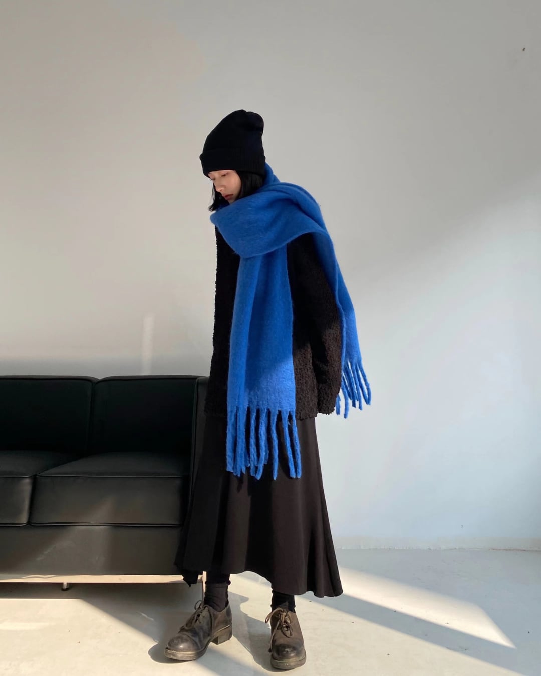 存在感抜群のデザインが特徴のアイテムです。たっぷりとした素材感が暖かさを実現し、心地よいフィット感で首周りを包み込んでくれます。シンプルなコーディネートに華やかさをプラスし、日常から特別なシーンまで幅広く活躍すること間違いなしの一品です。