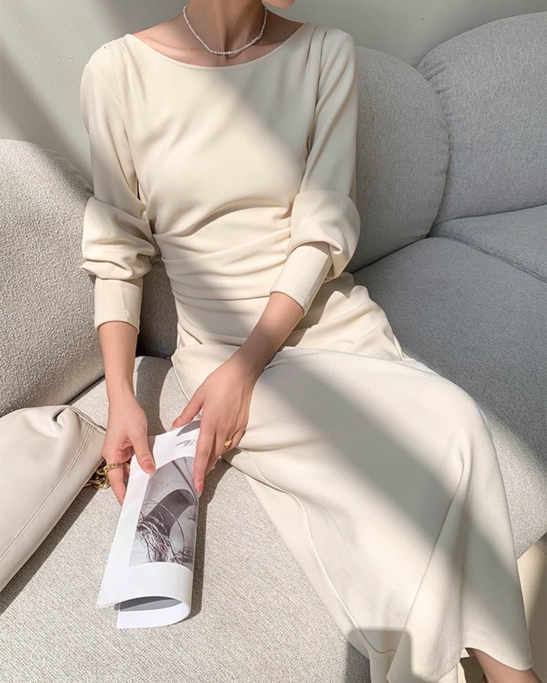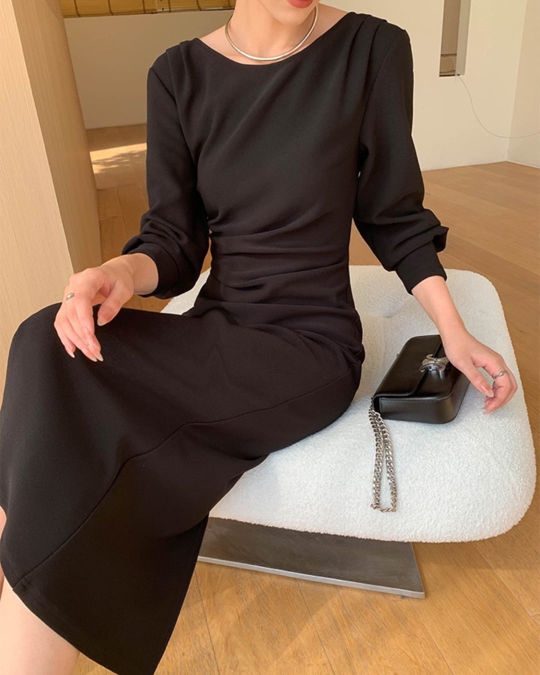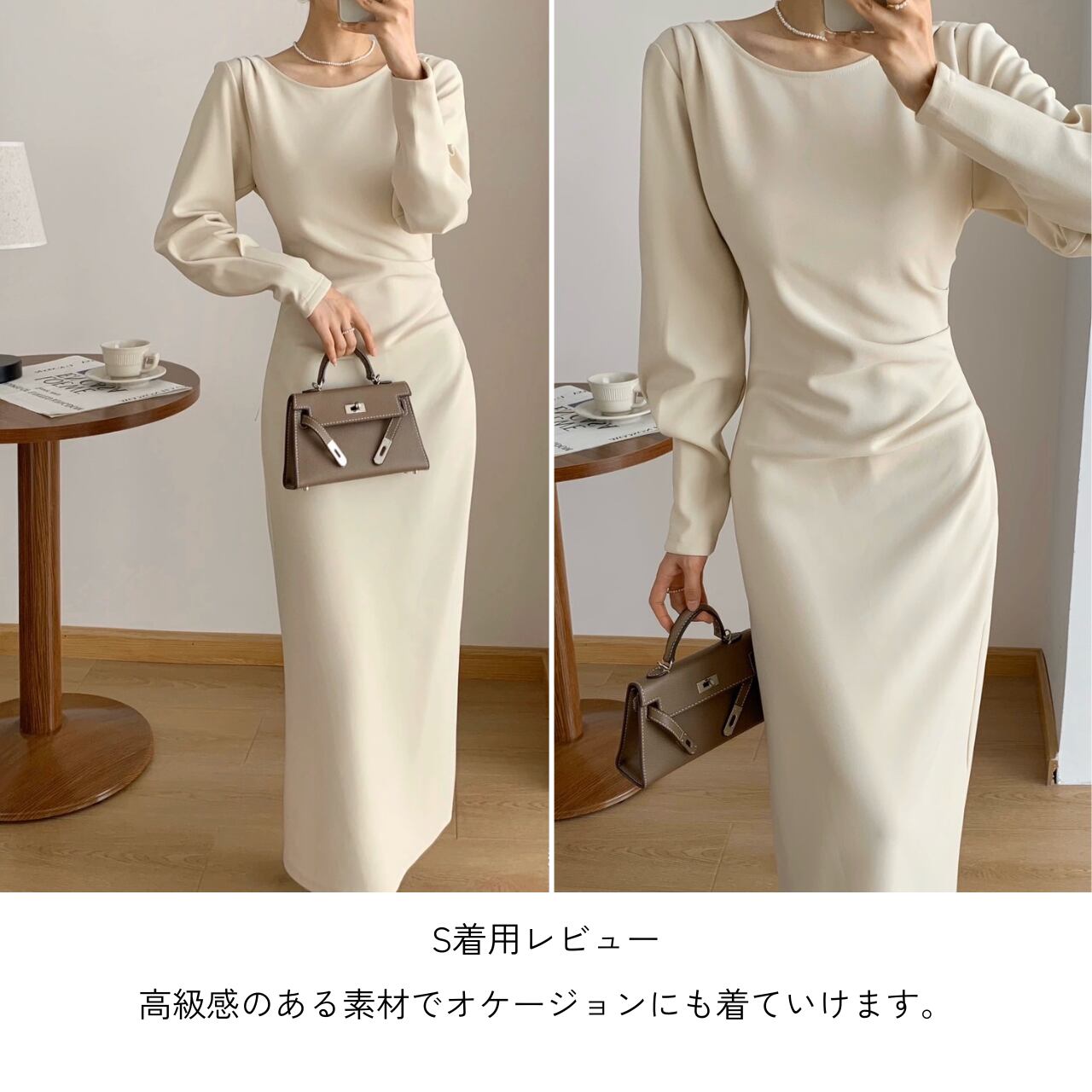 美しいタックデザインがウエストを強調し、シルエットが引き立つ魅力的な一着です。特別なイベントやカジュアルなお出かけまで、幅広いシーンでお使いいただけることが期待できるアイテムです。シンプルなデザインが、着る人の個性をさらに引き立てます。