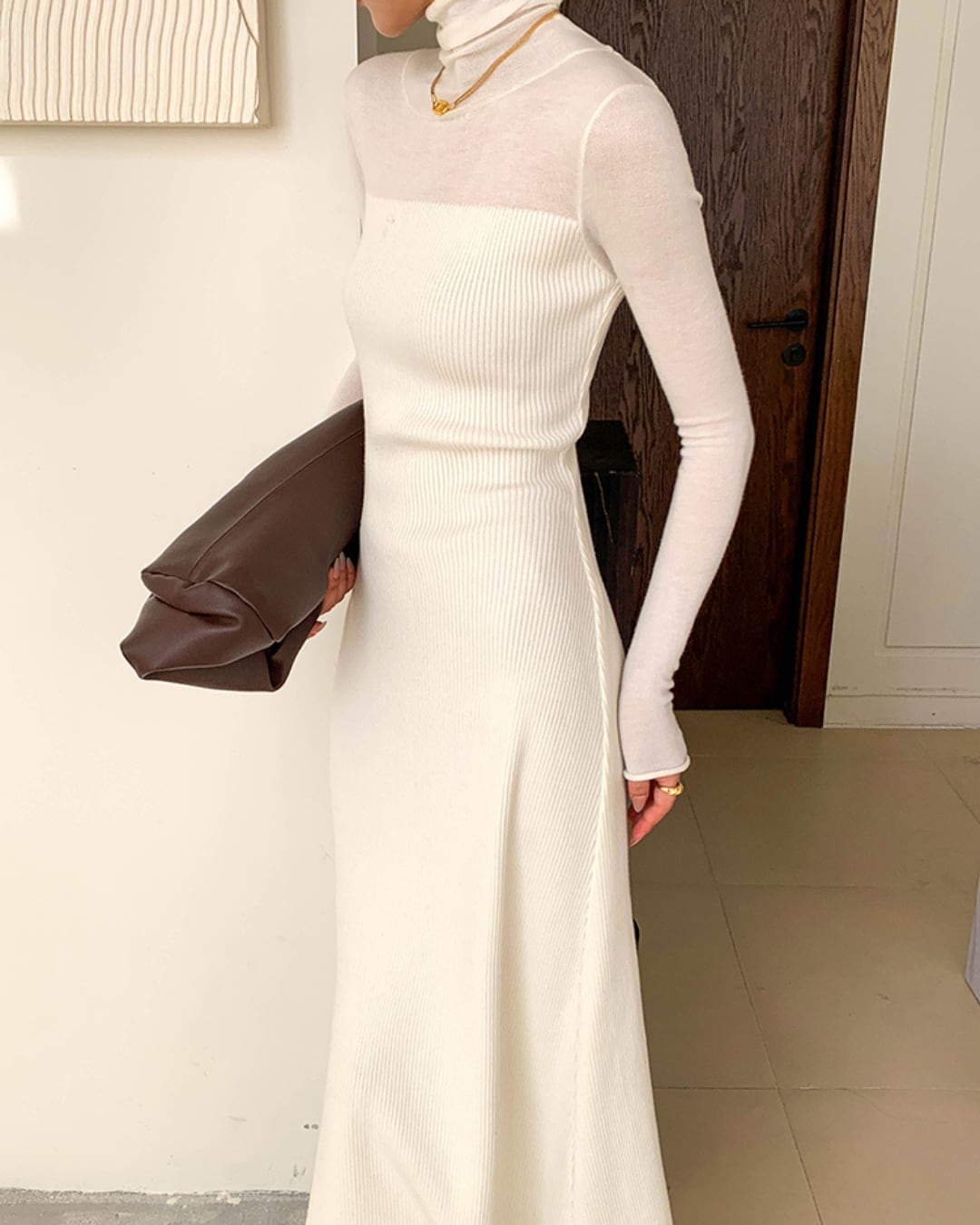 上品なタートルネックデザインが顔周りをすっきりと見せ、シースルーの魅力が際立つ特別な一着です。エレガントさと色気を兼ね備えたこのワンピースは、特別な日からカジュアルなお出かけまで多彩なシーンでご活用いただけることが期待できるアイテムです。軽やかな素材感が動くたびに美しいシルエットを描き出し、着る人の個性を引き立てます。