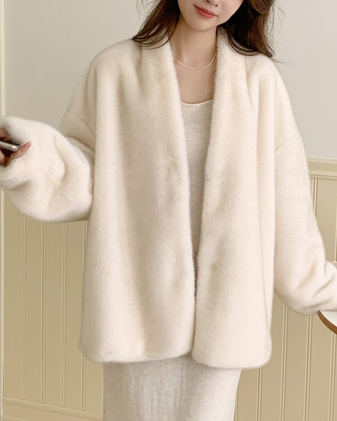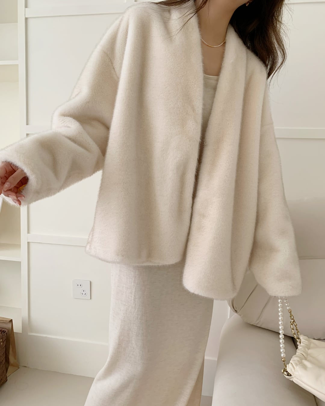 上品なノーカラーデザインが特徴的なコートです。柔らかなフェイクファー素材が心地よく、カジュアルな日常使いから特別なシーンまで幅広く活躍することが期待できます。そのエレガントなシルエットは、あなたの魅力を引き立て、様々なスタイルにマッチする一着です。