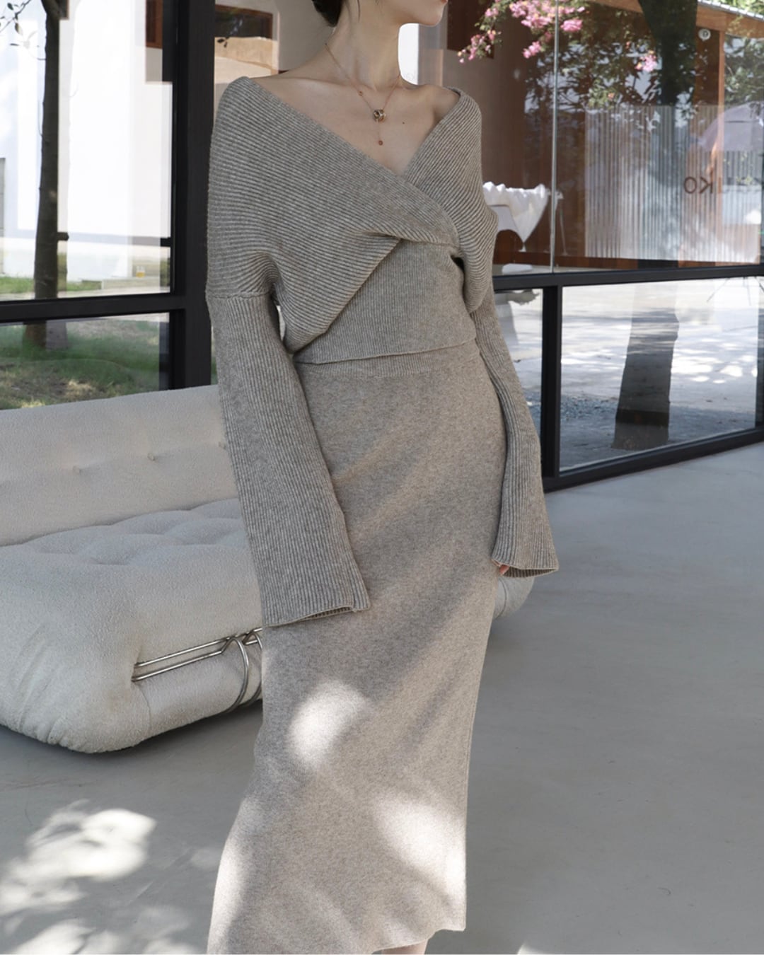 カシュクールVネックニット A24442