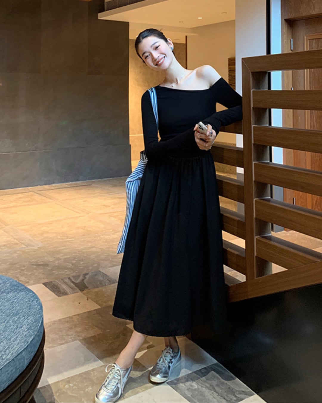 ワンショルダーが魅力的なロングスリーブワンピース。特別な日のお出かけから、日常のカジュアルスタイルまで幅広く活躍するシンプルながら洗練されたデザインです。着るだけでエレガントさが引き立ち、自信を持って様々なシーンで楽しんでいただけます。