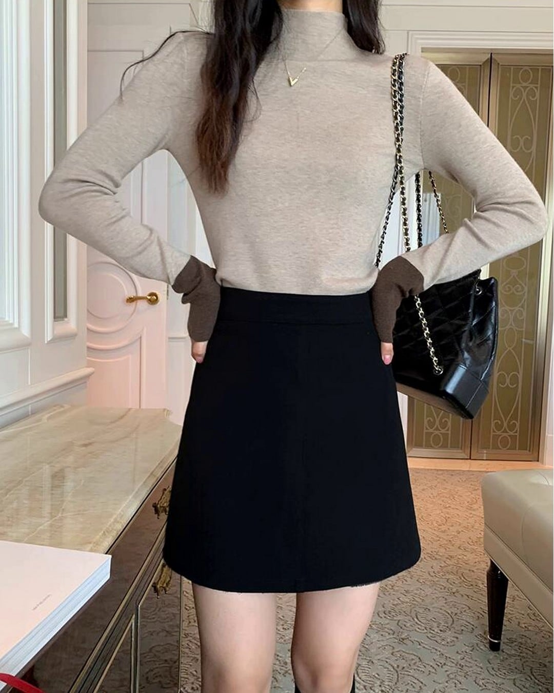 【color】ハイネックブラック、ハイネックオートミール、ラウンドネックブラック、ラウンドネックオートミール